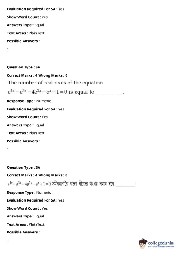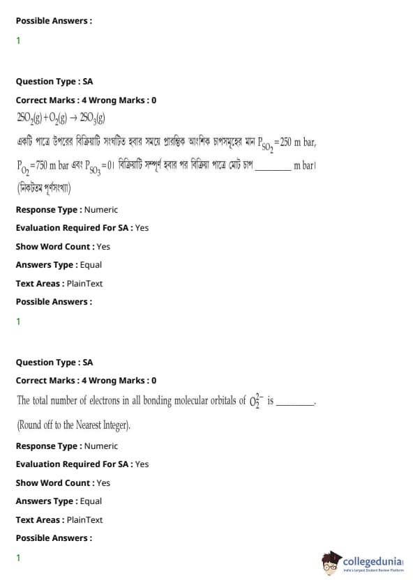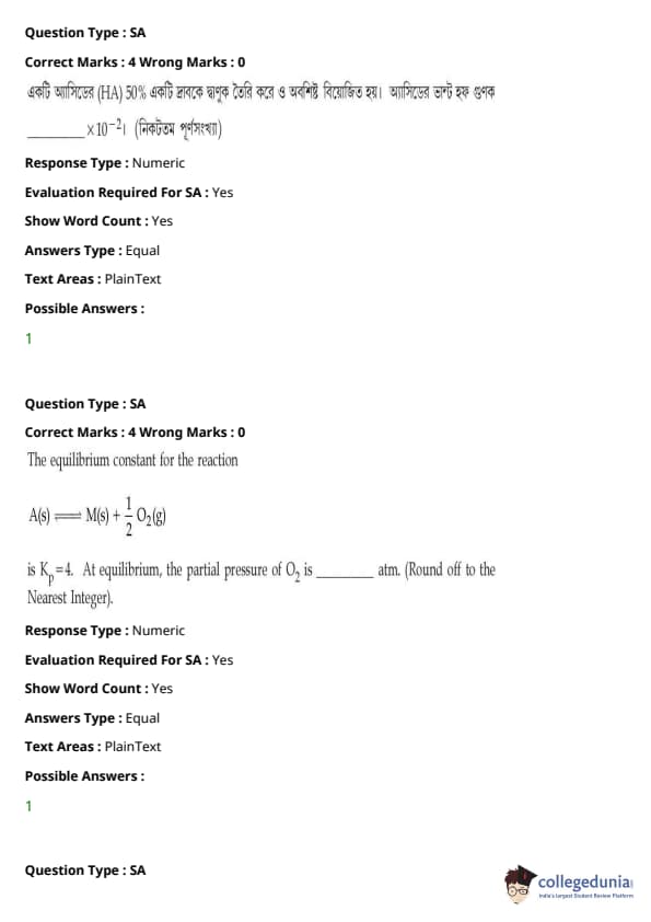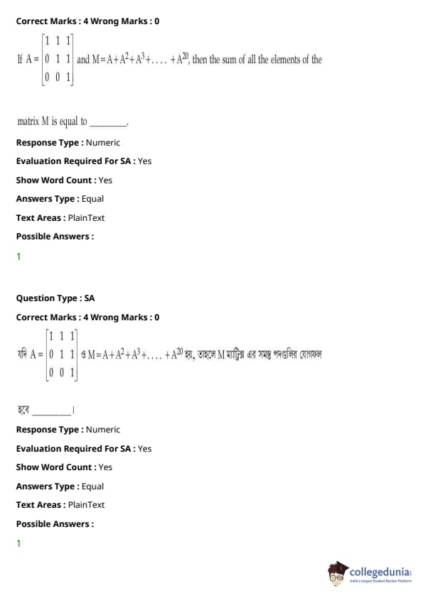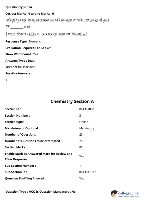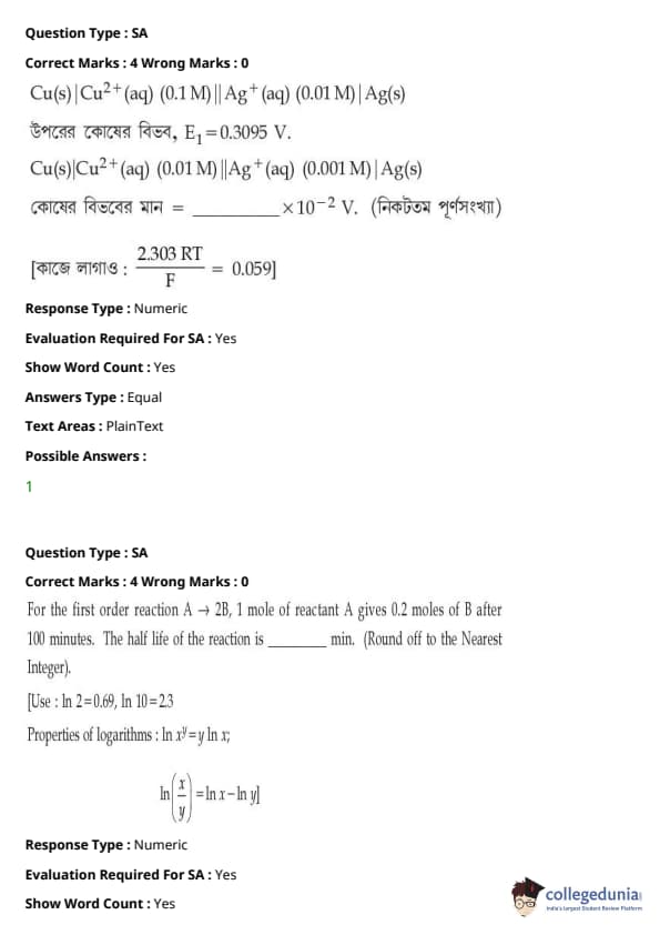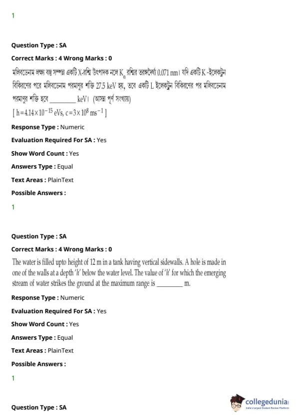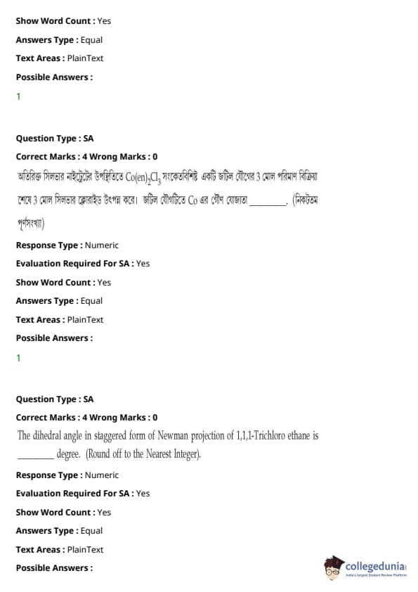 বিস্তারিত প্রশ্নপত্র বিশ্লেষণের জন্য, দেখুন-JEE Main প্রশ্নপত্র বিশ্লেষণ