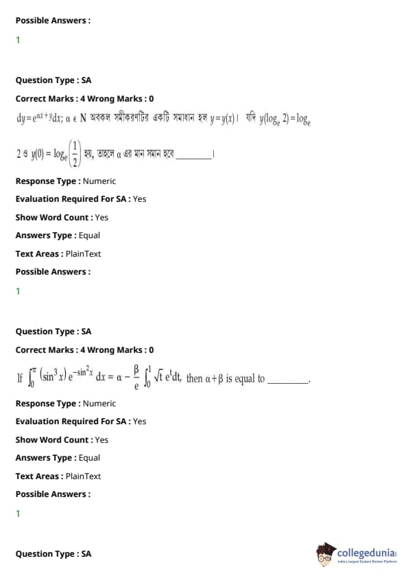প্রার্থীদের যতটা সম্ভব আগের বছরের প্রশ্নপত্রের চেষ্টা এবং অনুশীলন করা উচিত।কলেজদুনিয়া JEE Main BE/ B. Tech প্রশ্নপত্রের জন্য নীচের উত্তর কী পিডিএফ সহ লিঙ্কগুলি সরবরাহ করেছে: