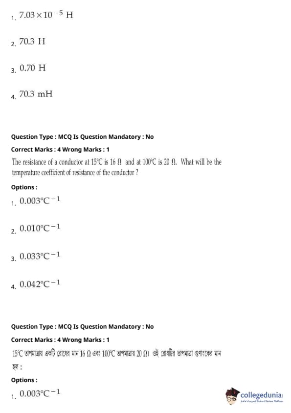 | JEE Main পদার্থবিদ্যার প্রশ্নপত্র | JEE Main গণিত প্রশ্নপত্র | JEE Main রসায়ন প্রশ্নপত্র |