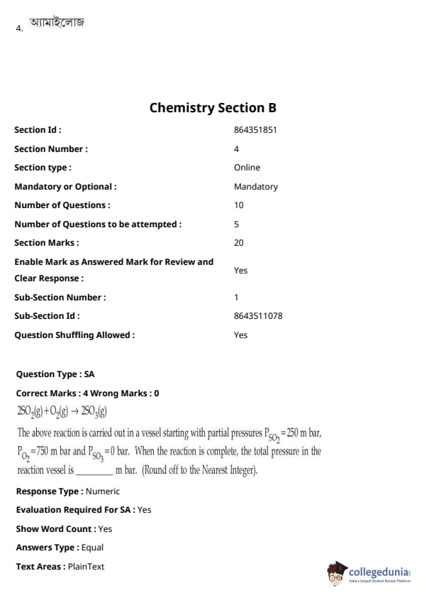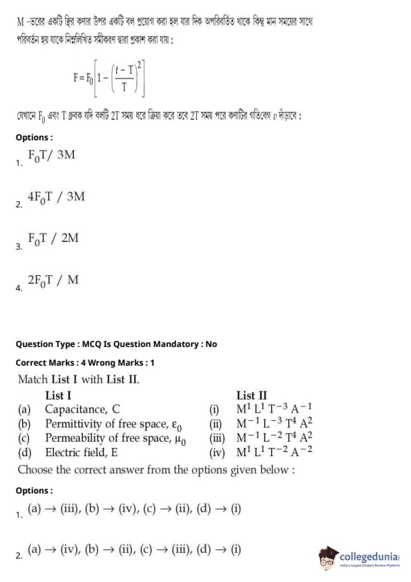 JEEMain B.E./ B.Tech প্রশ্নপত্র- 20 জুলাই, 2021 বিকেল