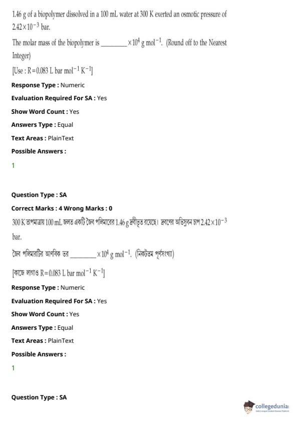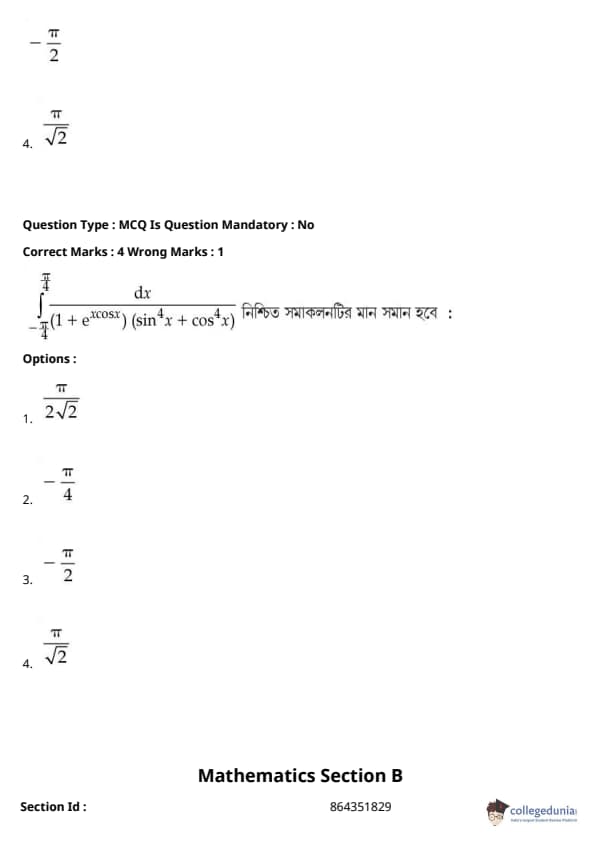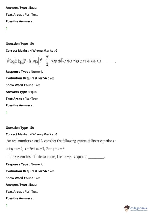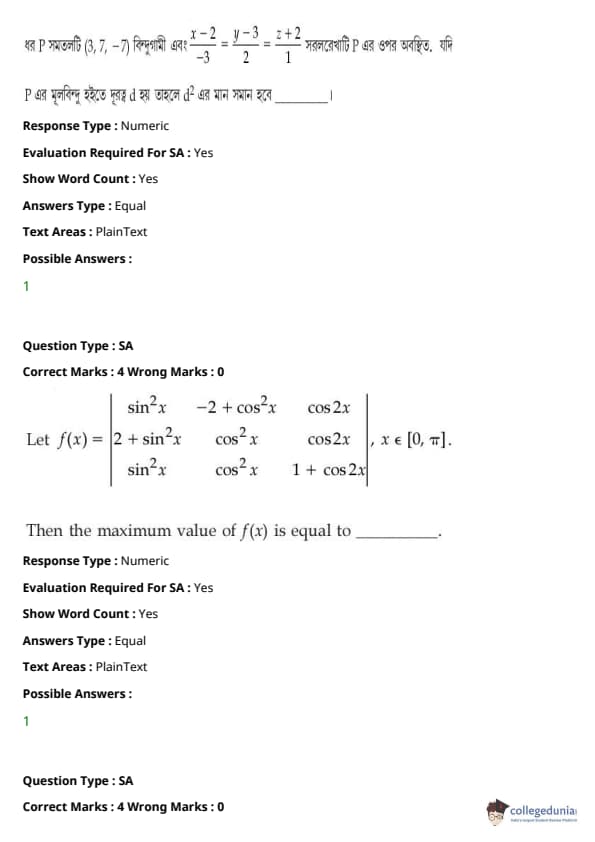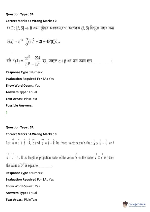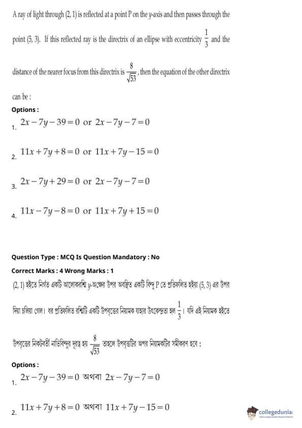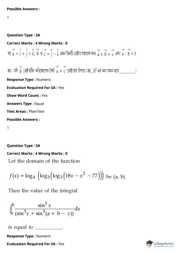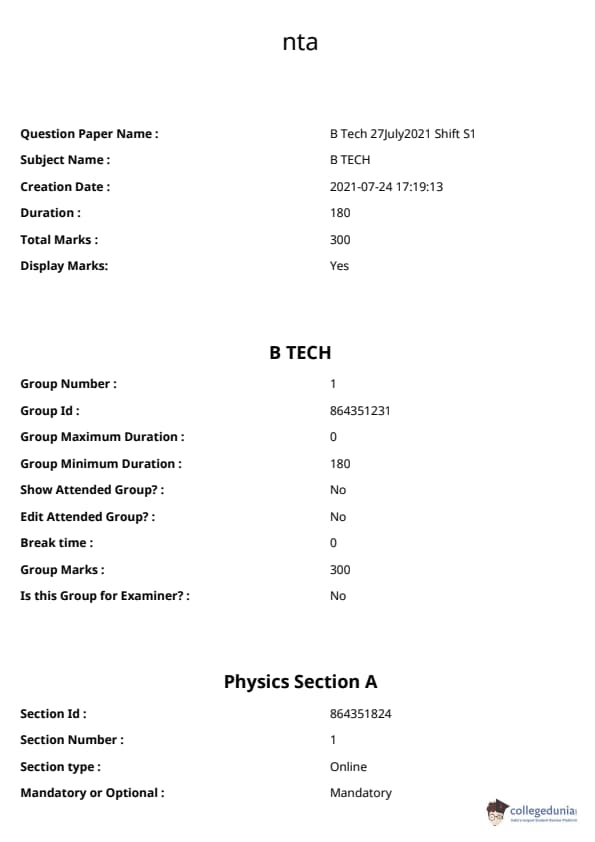 JEE Main BE / B.Tech প্রশ্নাবলী - 27 জুলাই, 2021 সকাল