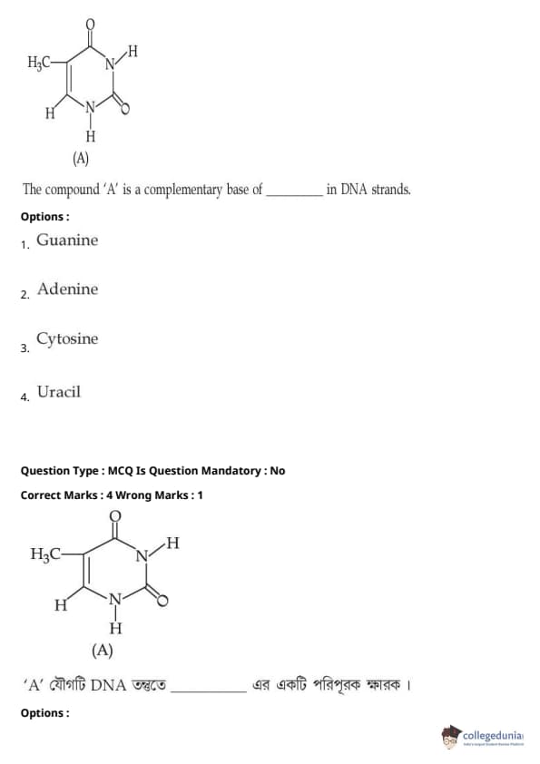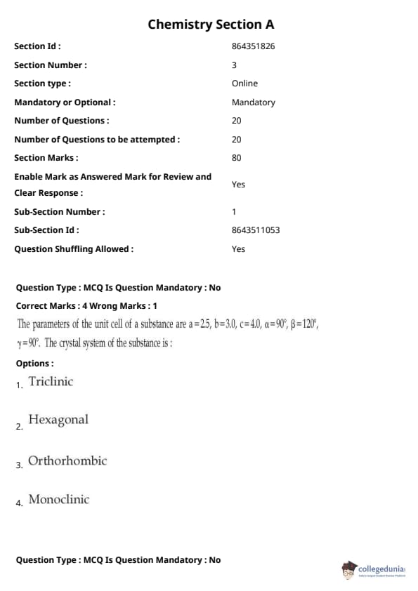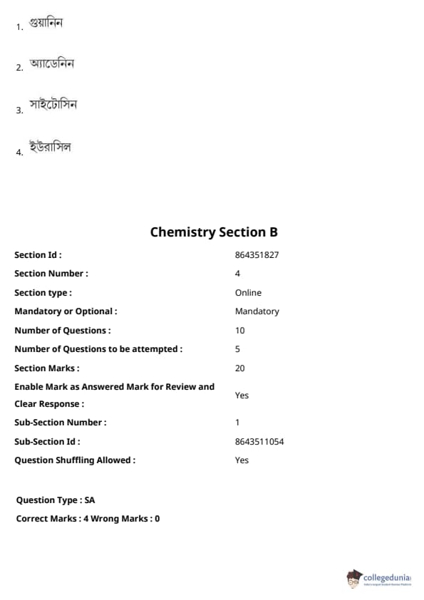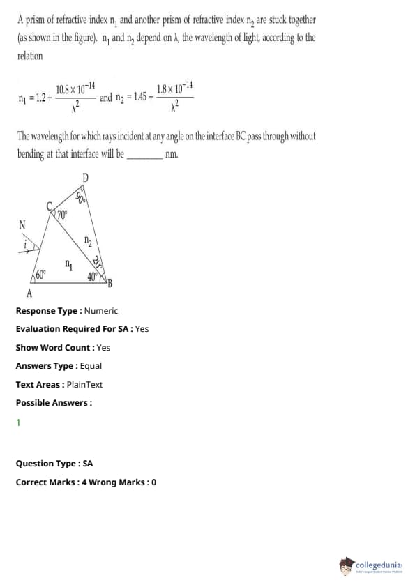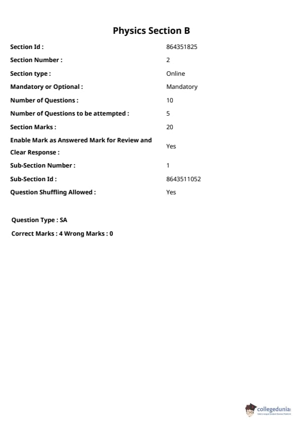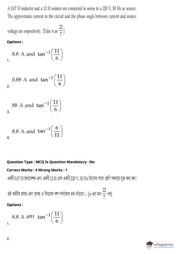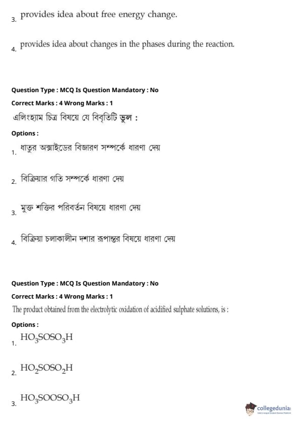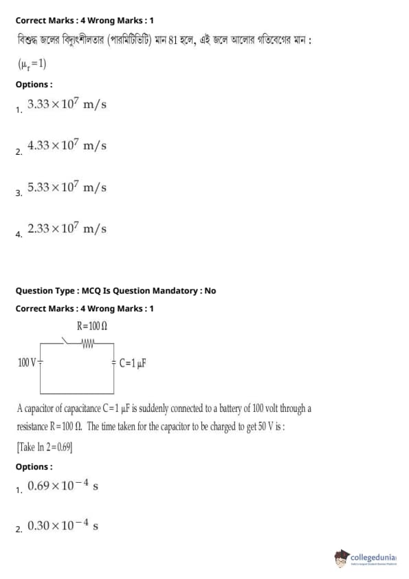 JEE Main BE / B.Tech প্রশ্নাবলী - 27 জুলাই, 2021 সকাল