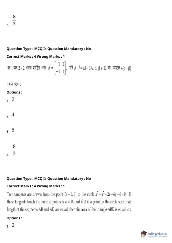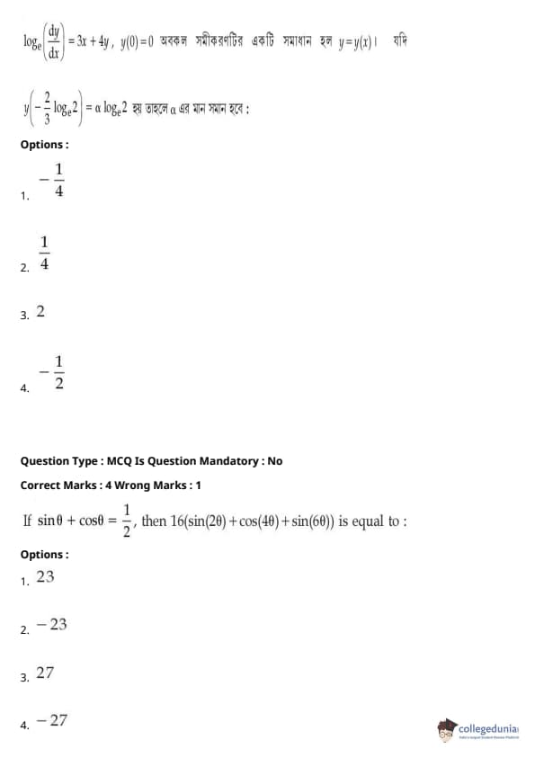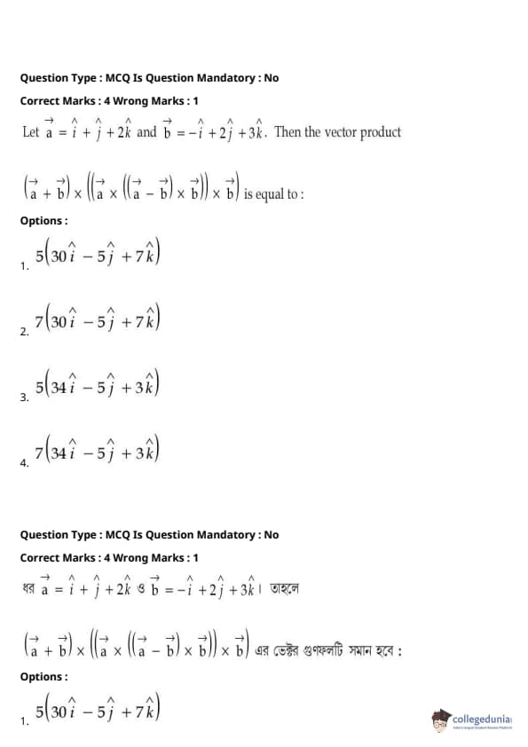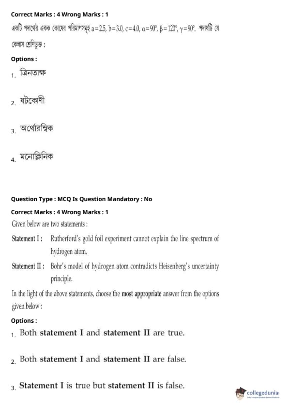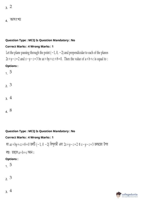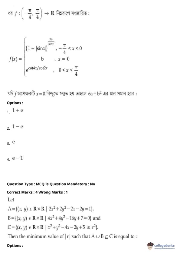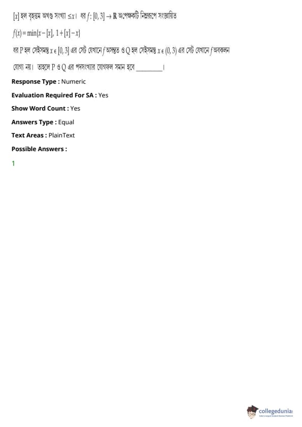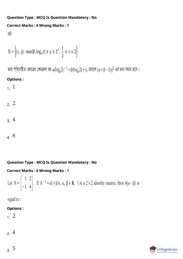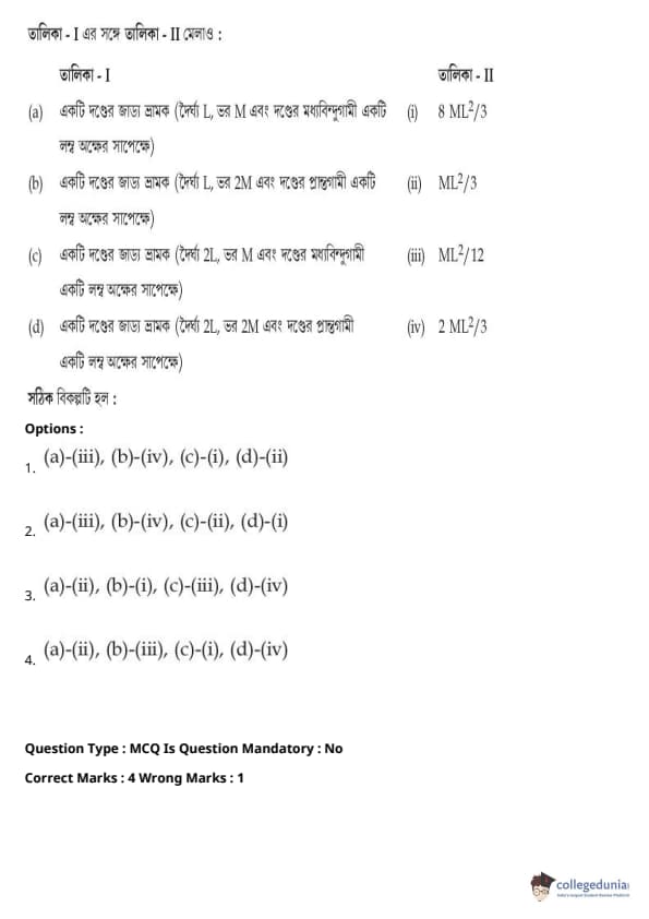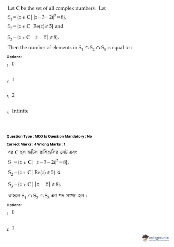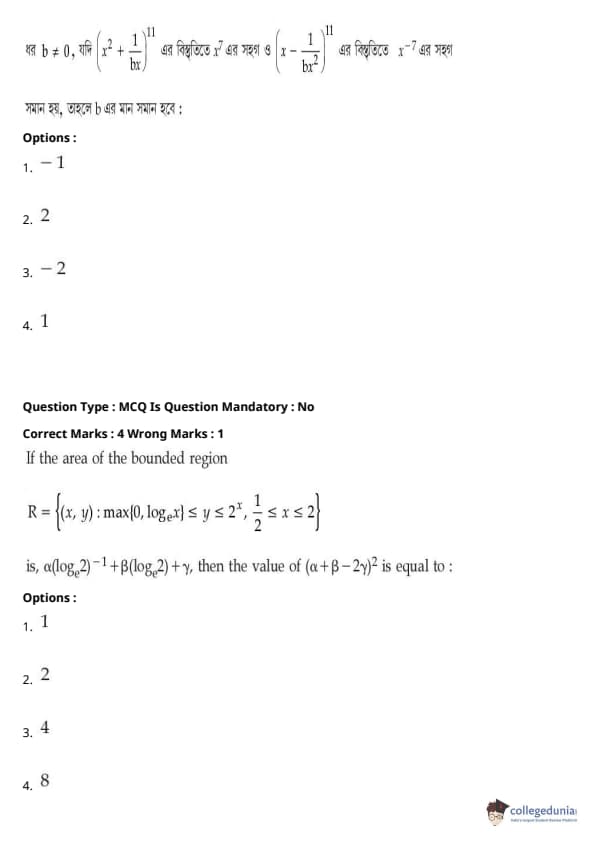 | JEE Main পদার্থবিদ্যা প্রশ্নাবলী | JEE Main গণিত প্রশ্নাবলী | JEE Main রসায়ন প্রশ্নাবলী |