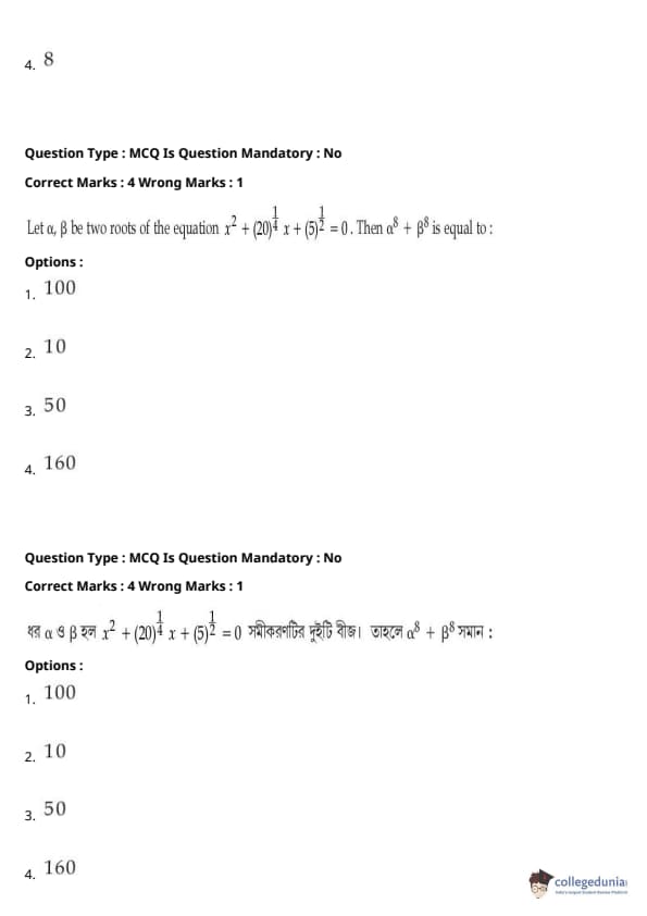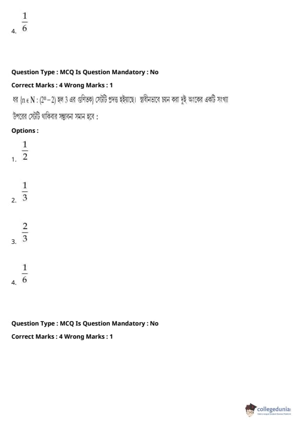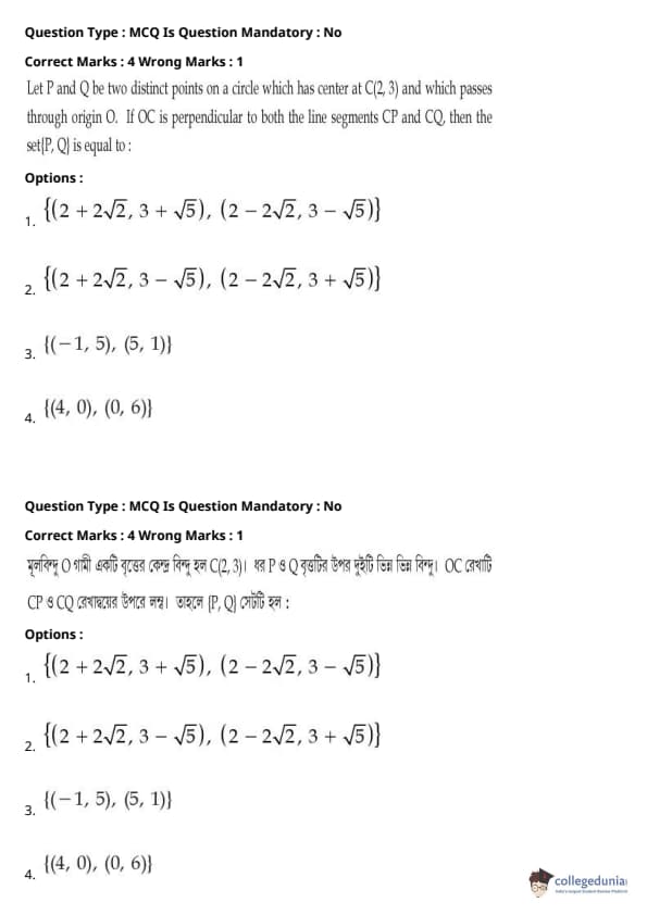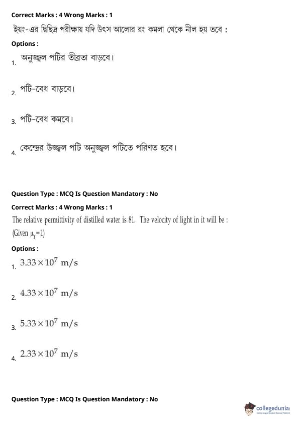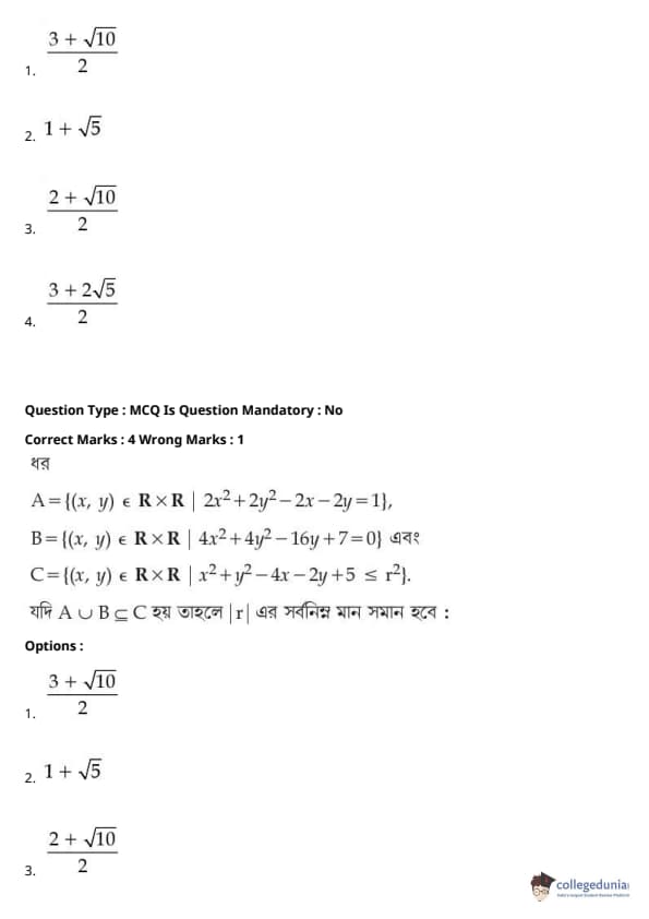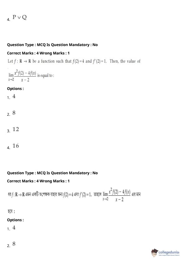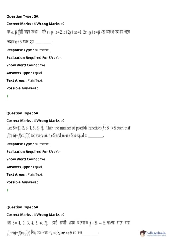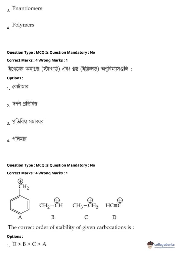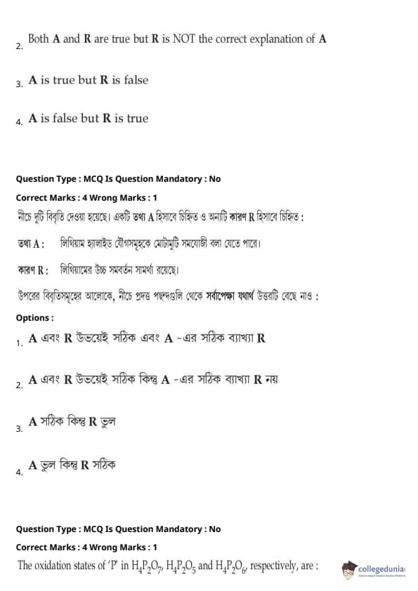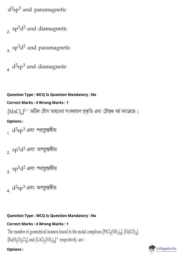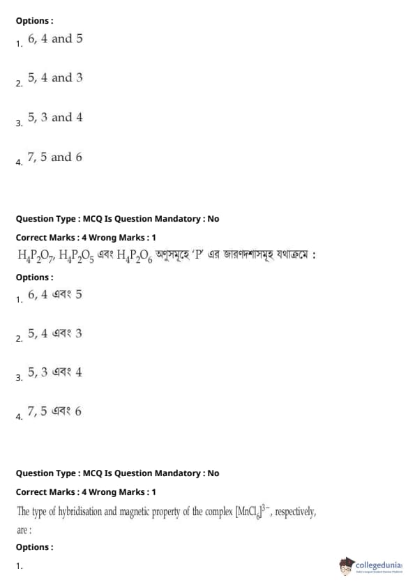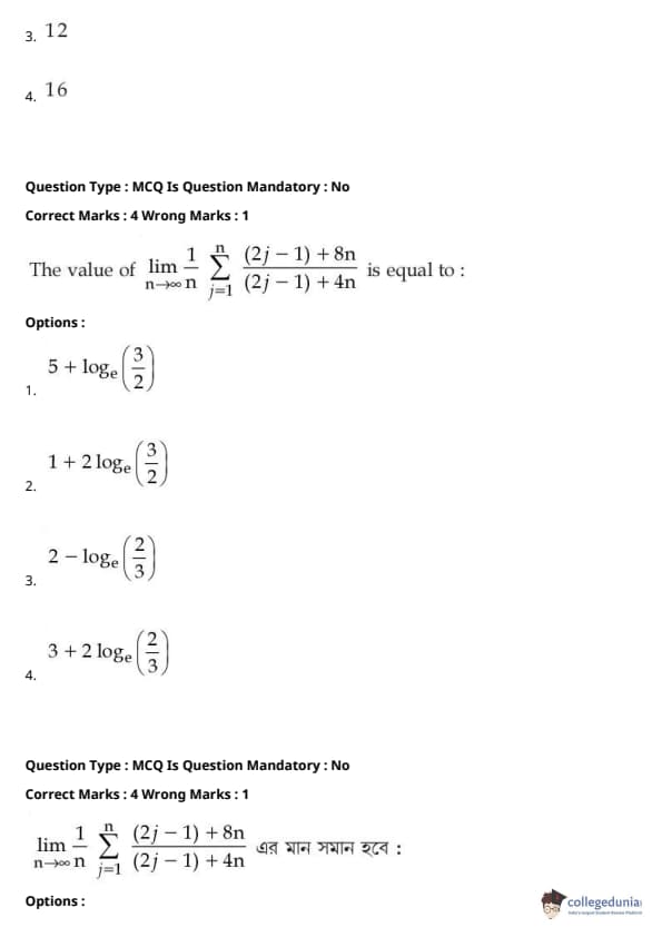 | JEE Main পদার্থবিদ্যা প্রশ্নাবলী | JEE Main গণিত প্রশ্নাবলী | JEE Main রসায়ন প্রশ্নাবলী |