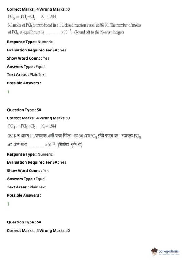 বিস্তারিত প্রশ্নাবলী বিশ্লেষণের জন্য,JEE Main প্রশ্নাবলী বিশ্লেষণ দেখুন