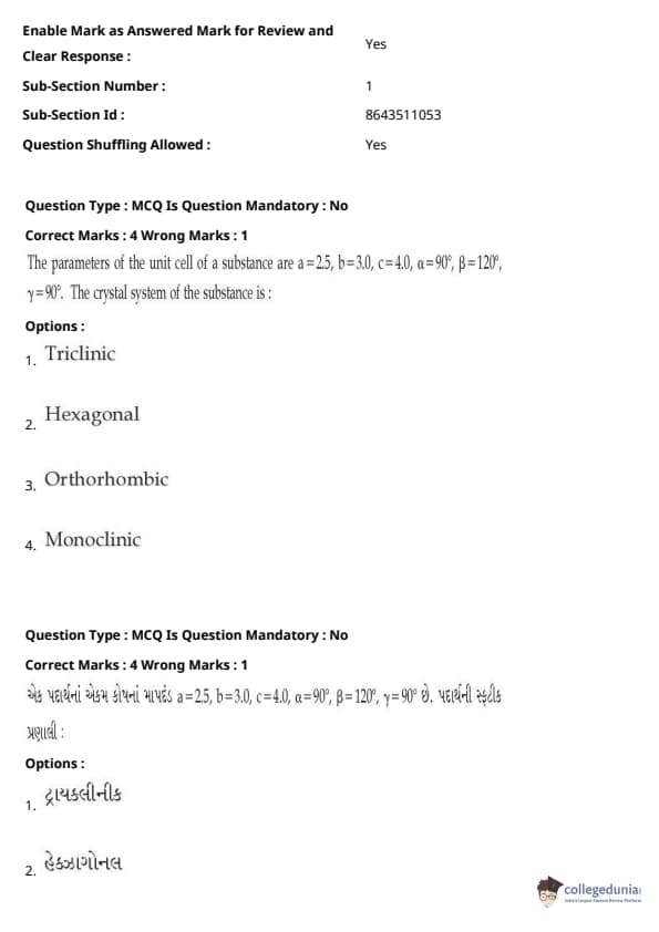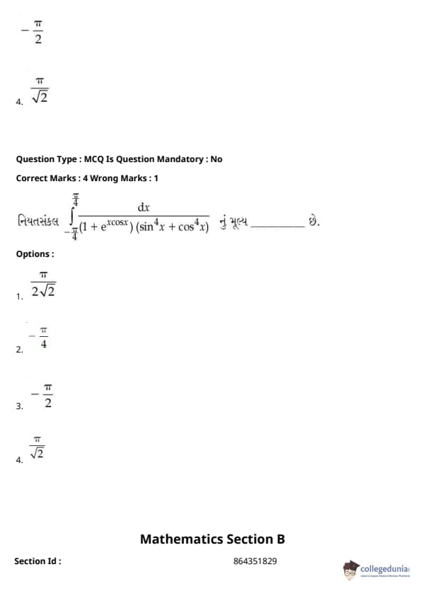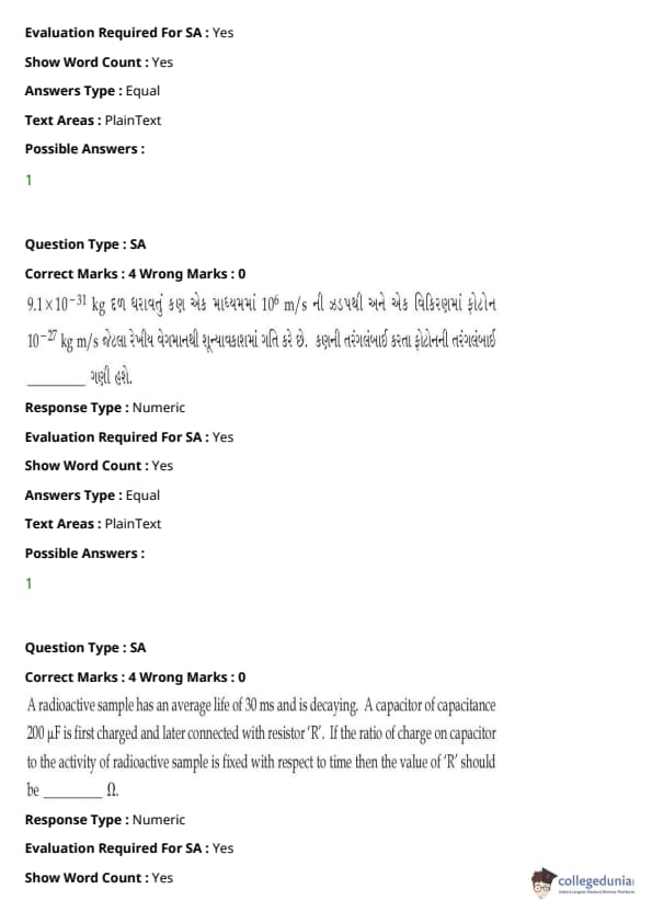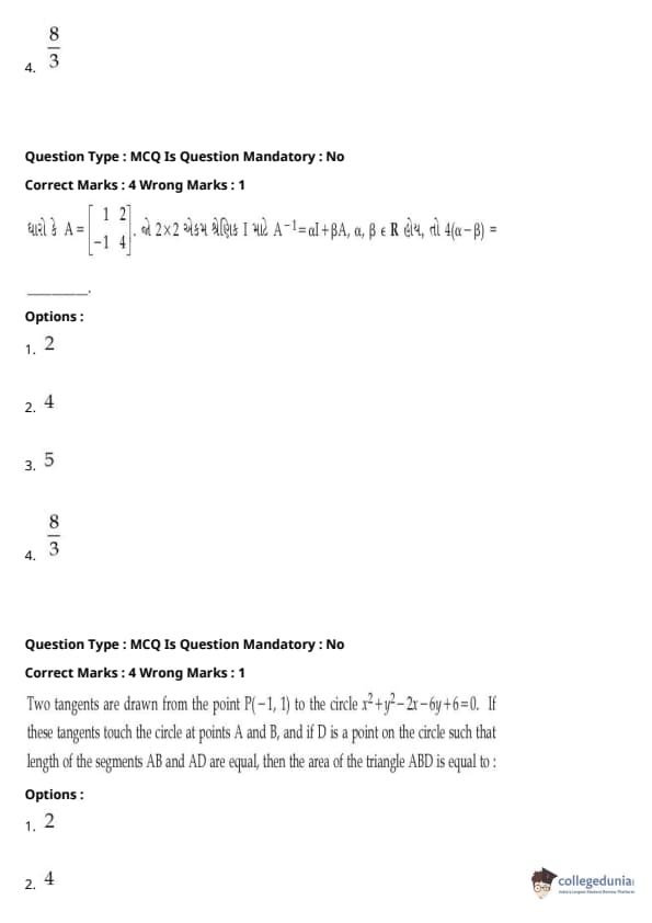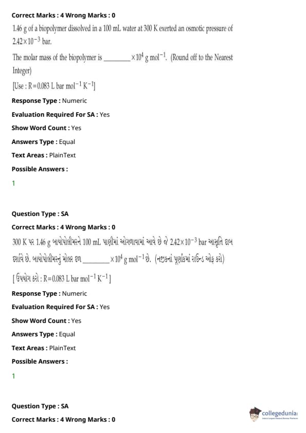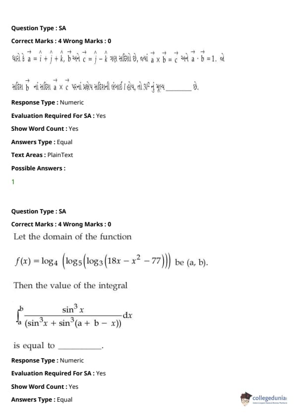 | JEE Main ભૌતિકશાસ્ત્રનું પ્રશ્નપત્ર | JEE Main ગણિતનું પ્રશ્નપત્ર | JEE Main રસાયણશાસ્ત્ર પ્રશ્નપત્ર |