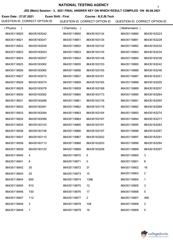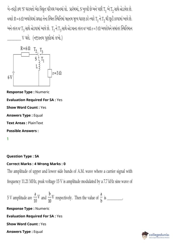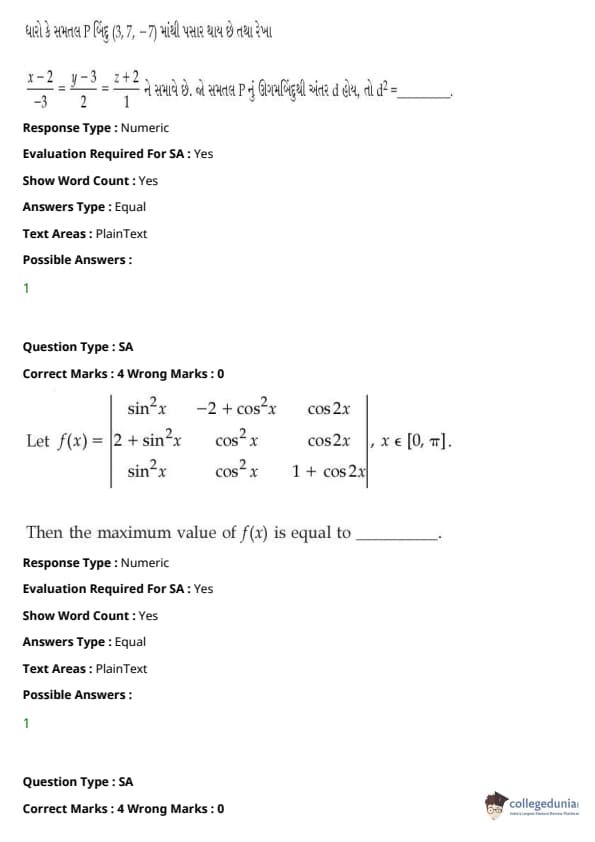 | JEE Main 2021 પ્રશ્નપત્ર | JEE Main 2021 આન્સર કી |