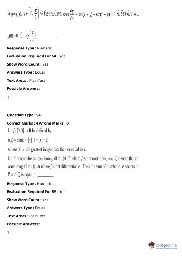 ઉમેદવારોએ શક્ય તેટલા પાછલા વર્ષના પ્રશ્નપત્રોનો પ્રયાસ કરવો જોઈએ અને પ્રેક્ટિસ કરવી જોઈએ.કોલેજદુનિયાએ નીચે આપેલ જવાબ કી PDF સાથે JEEMain B.E./ B.Tech પ્રશ્ન પેપર માટેની લિંક્સ પ્રદાન કરી છે: