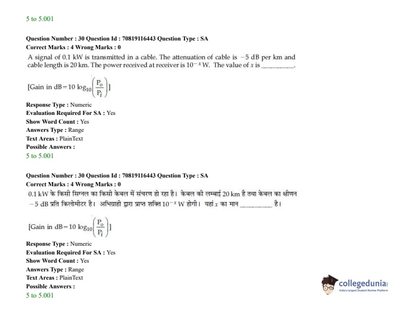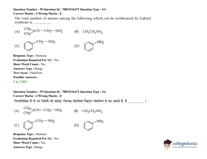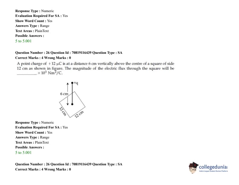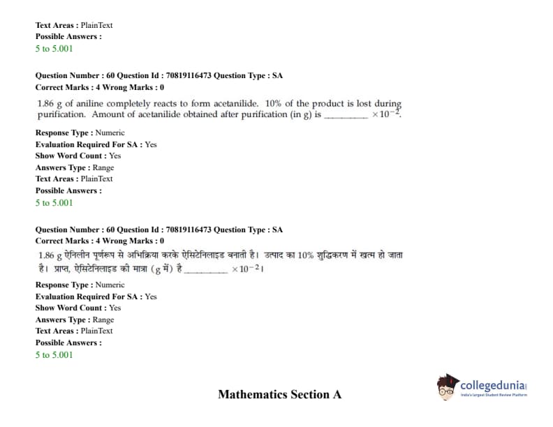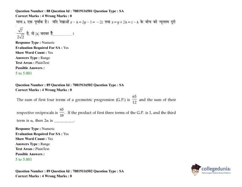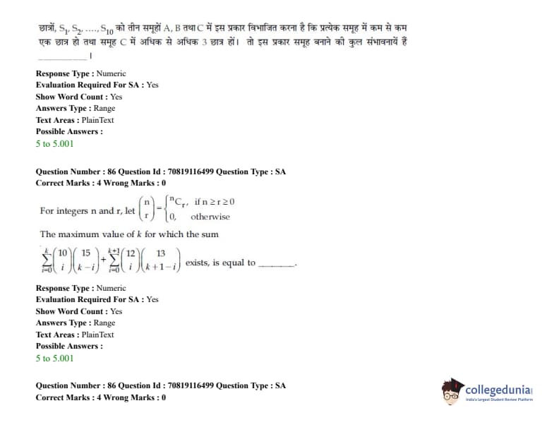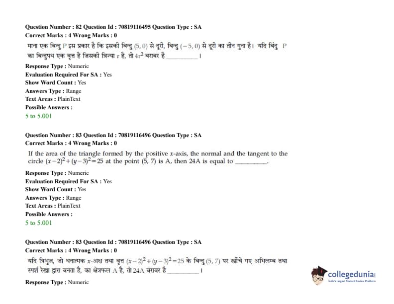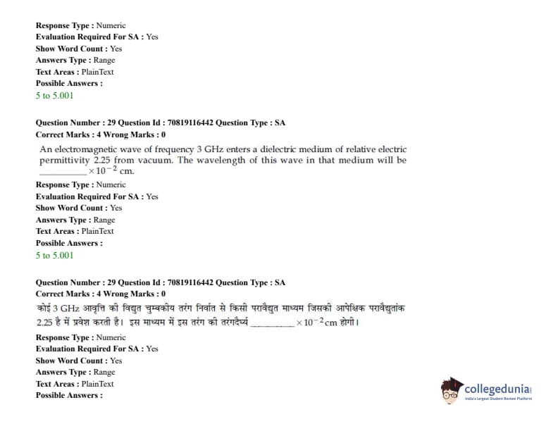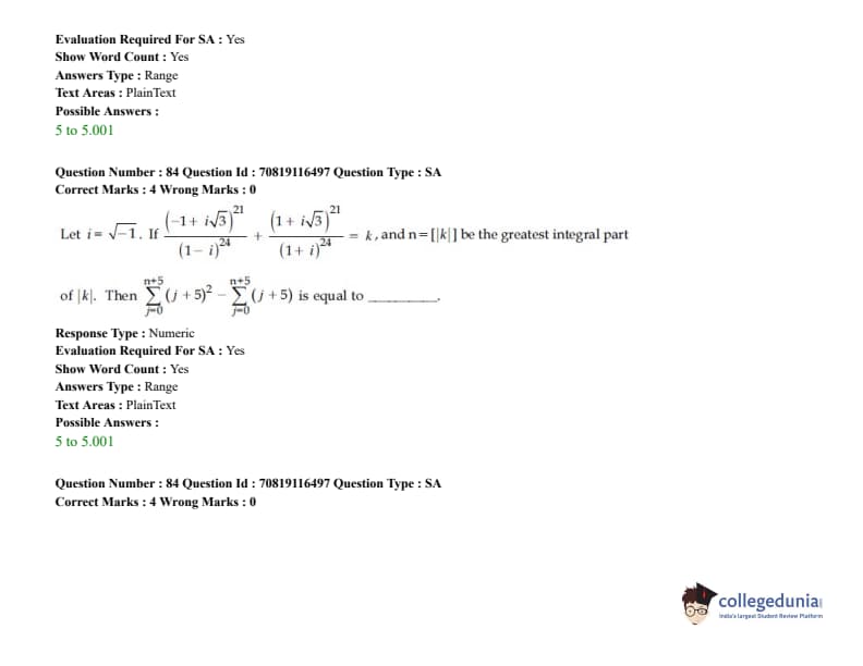 - प्रत्येक खंड में 10 पूर्णांक प्रकार के संख्यात्मक उत्तर प्रश्न थे, जिनमें से उम्मीदवार को किसी भी 5 का प्रयास करने की आवश्यकता थी।