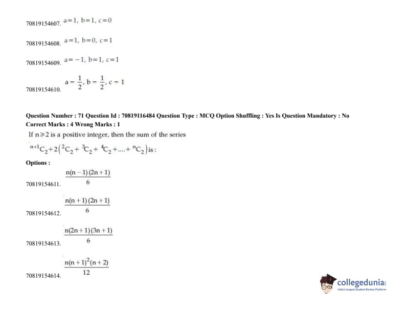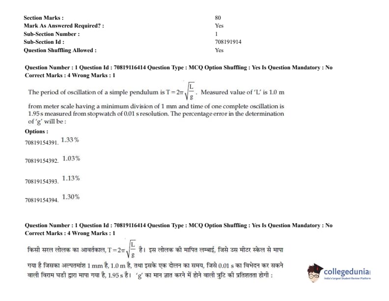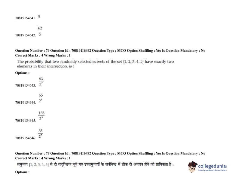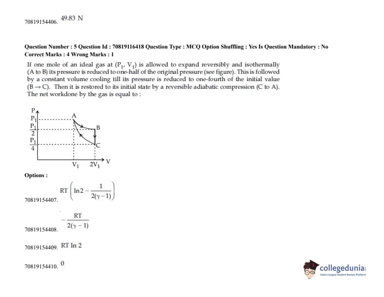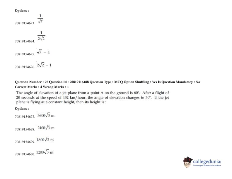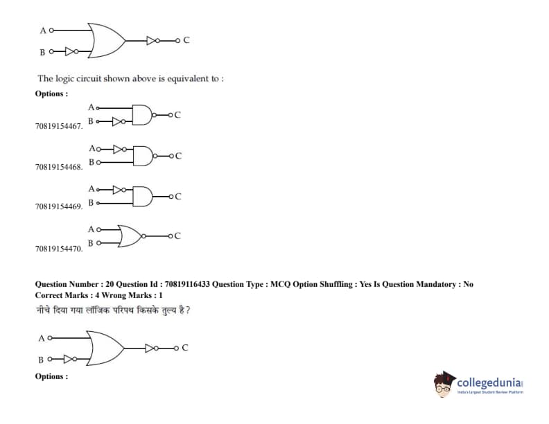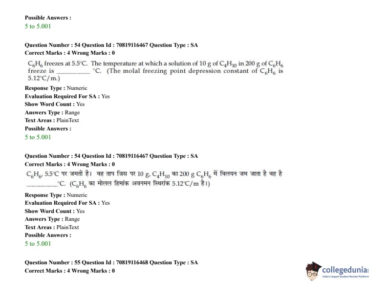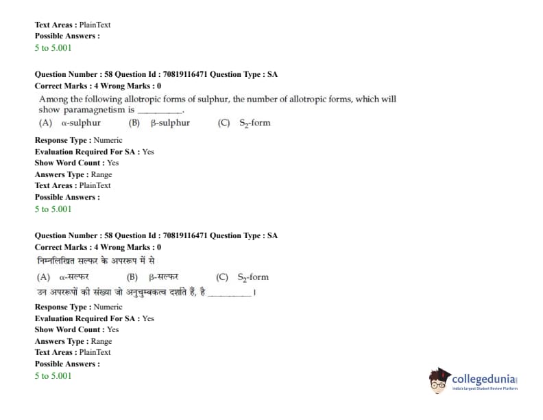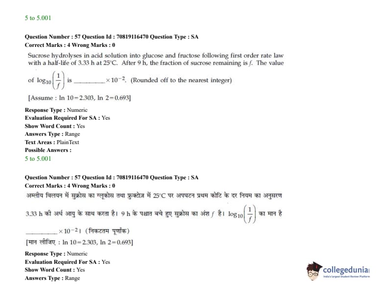 - प्रत्येक खंड में 10 पूर्णांक प्रकार के संख्यात्मक उत्तर प्रश्न थे, जिनमें से उम्मीदवार को किसी भी 5 का प्रयास करने की आवश्यकता थी।