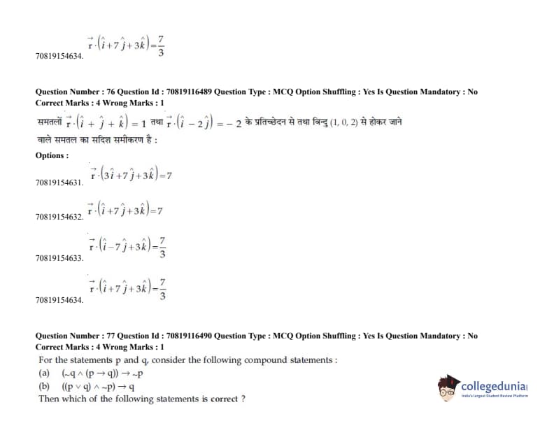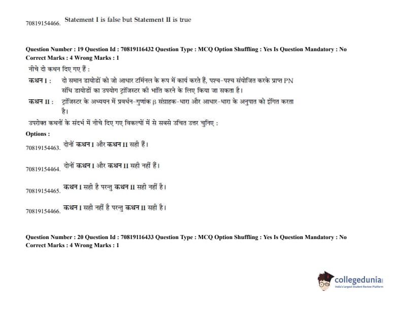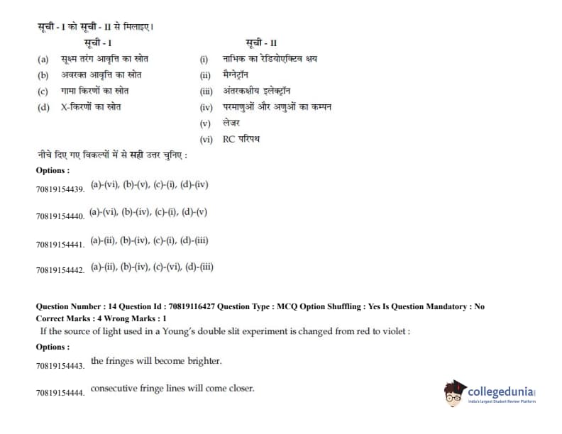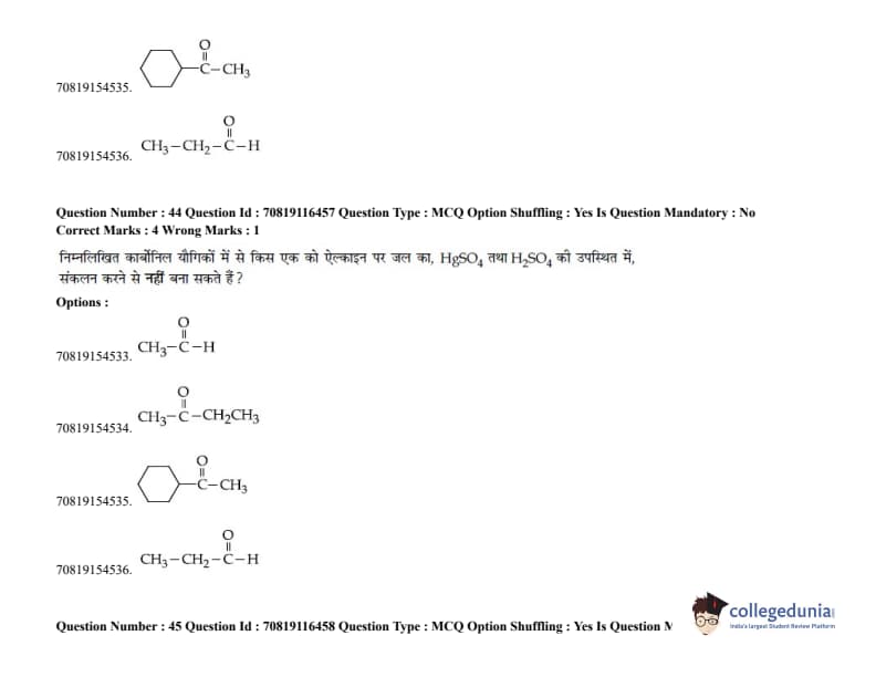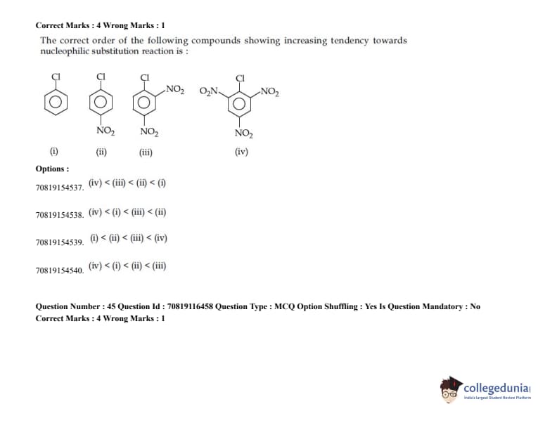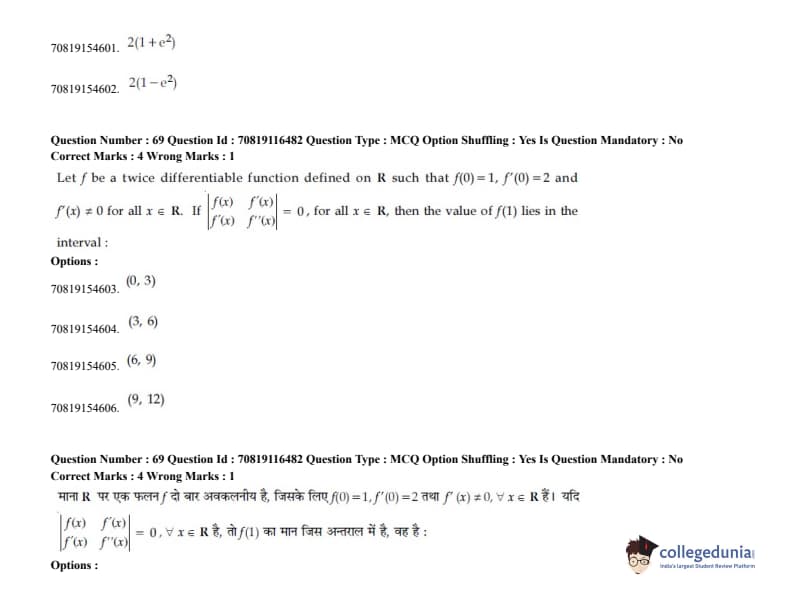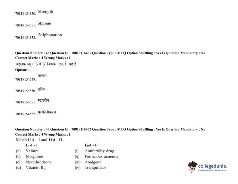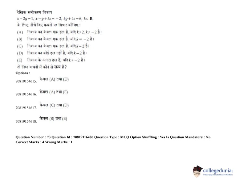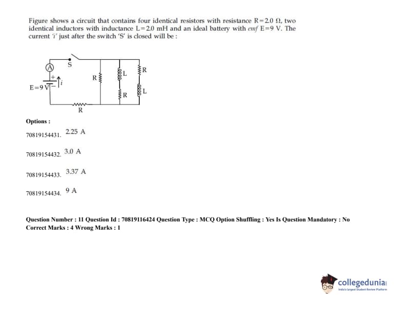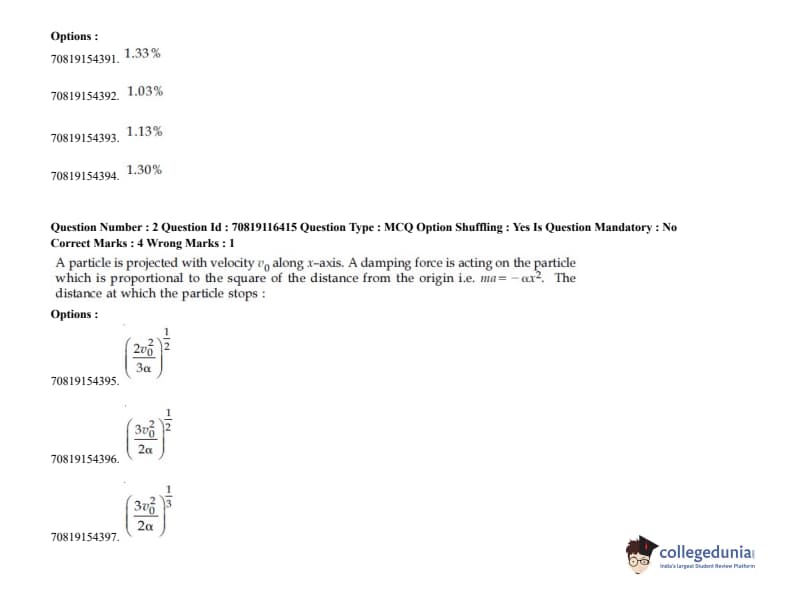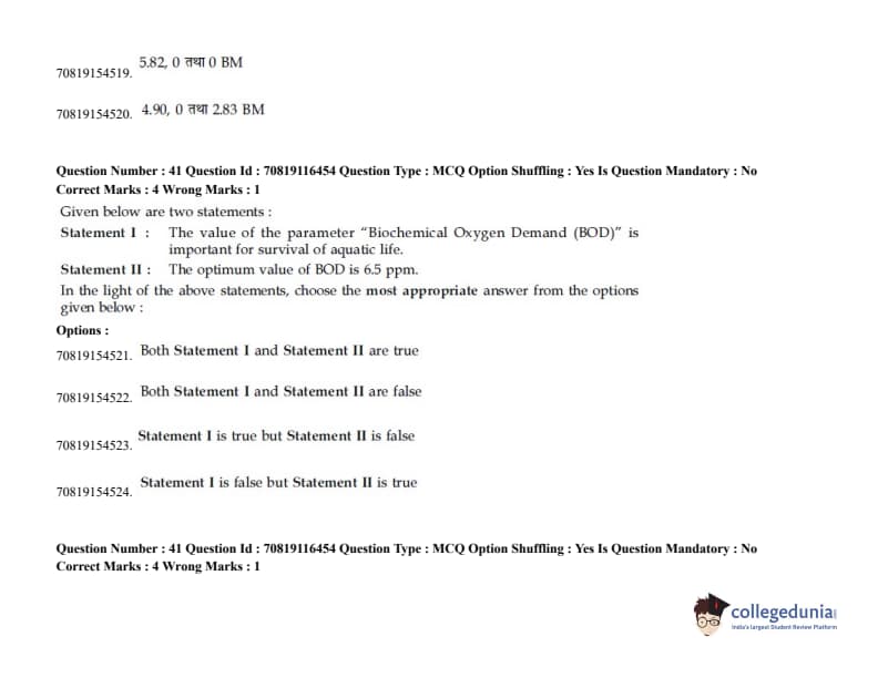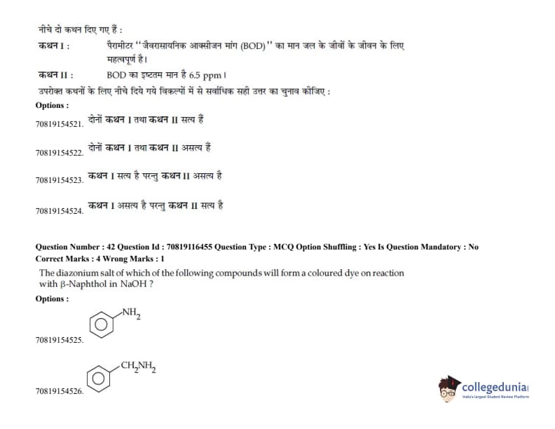 JEE Main 2021 बी.ई./बी.टेक प्रश्न पत्र - 24 फरवरी, 2021- दोपहर के सत्र को मध्यम कठिनाई स्तर का माना गया। वर्ष 2021 के लिए नए JEE Main परीक्षा पैटर्न के बाद, पेपर में कुल 90 प्रश्न थे, जिनमें से उम्मीदवारों को 75 प्रश्नों का प्रयास करना था। प्रत्येक अनुभाग में उम्मीदवार को 10 संख्यात्मक उत्तर प्रकार के प्रश्नों में से किसी भी 5 को हल करने का विकल्प दिया गया था। पेपर में गणित सबसे कठिन खंड था, उसके बाद भौतिकी का स्थान था। रसायन विज्ञान पेपर का सबसे आसान खंड था जिसमें प्रत्यक्ष सूत्र और समीकरण-आधारित प्रश्न शामिल थे। JEE Main 2022 परीक्षा के इच्छुक उम्मीदवार अभ्यास के लिए 24 फरवरी, 2021 सत्र के लिए उत्तर कुंजी पीडीएफ के साथ JEE Main प्रश्न पत्र डाउनलोड कर सकते हैं।