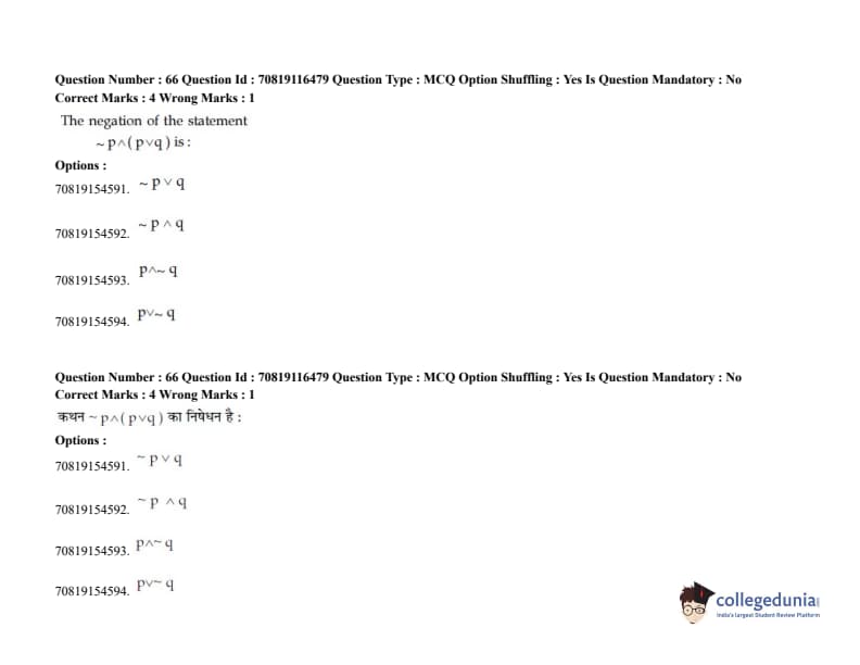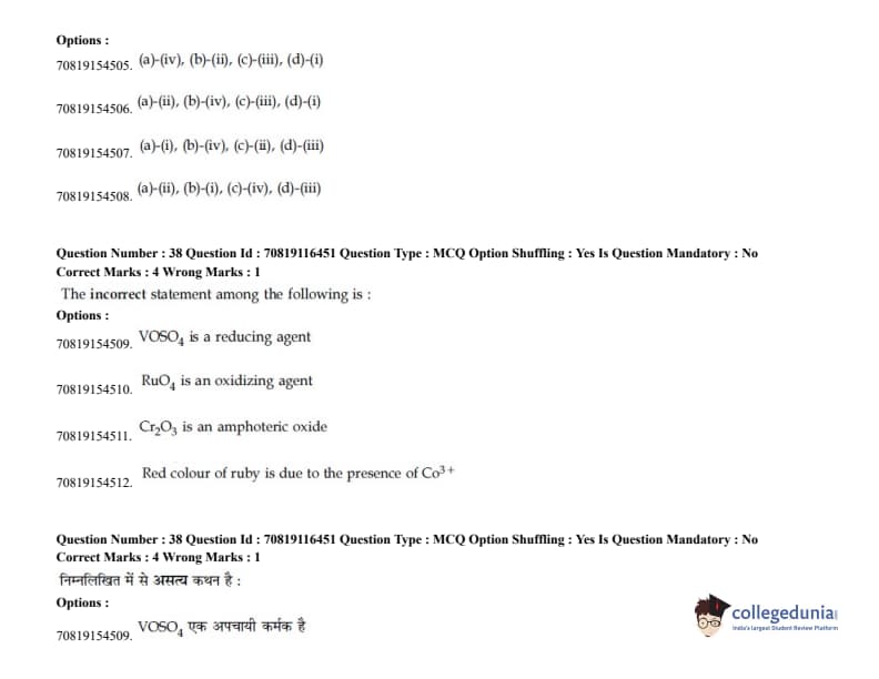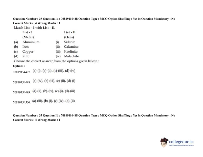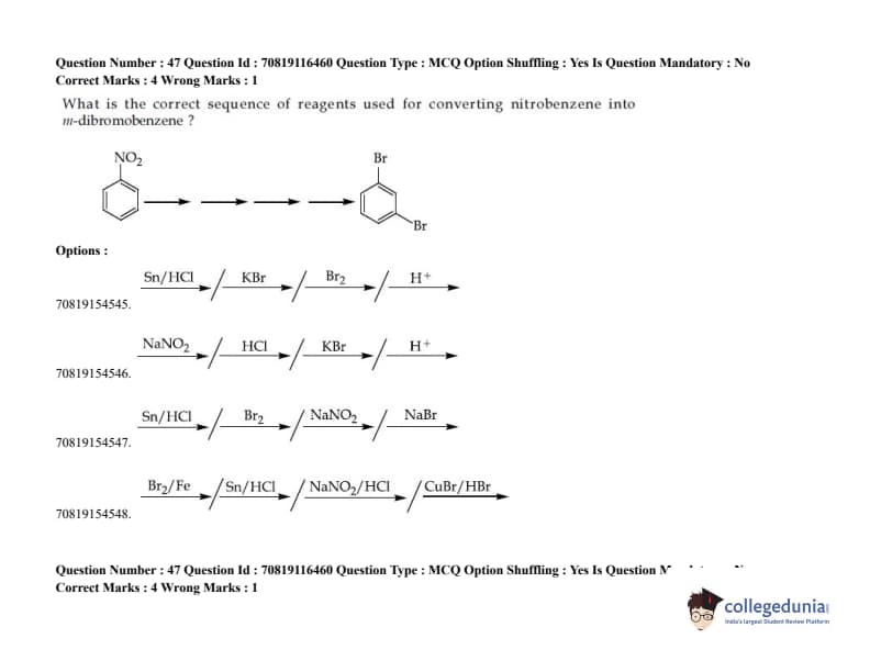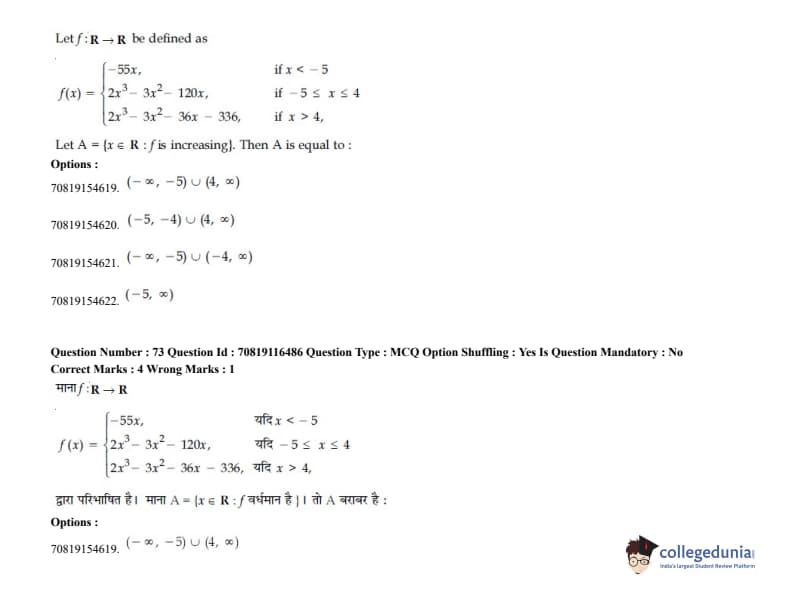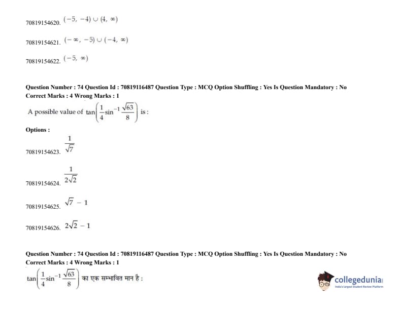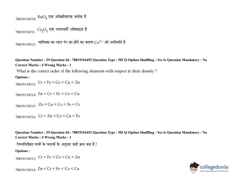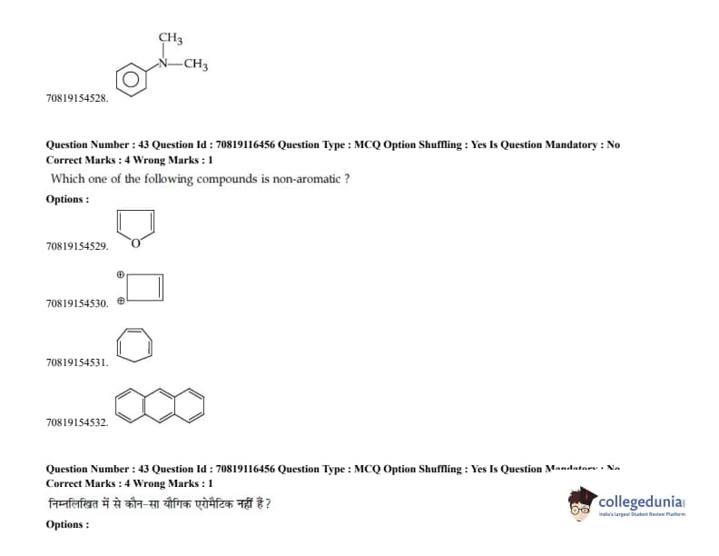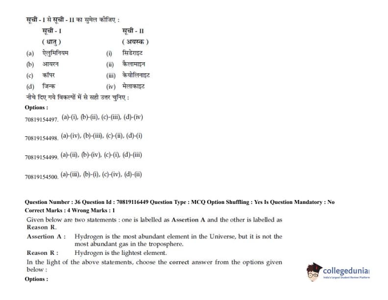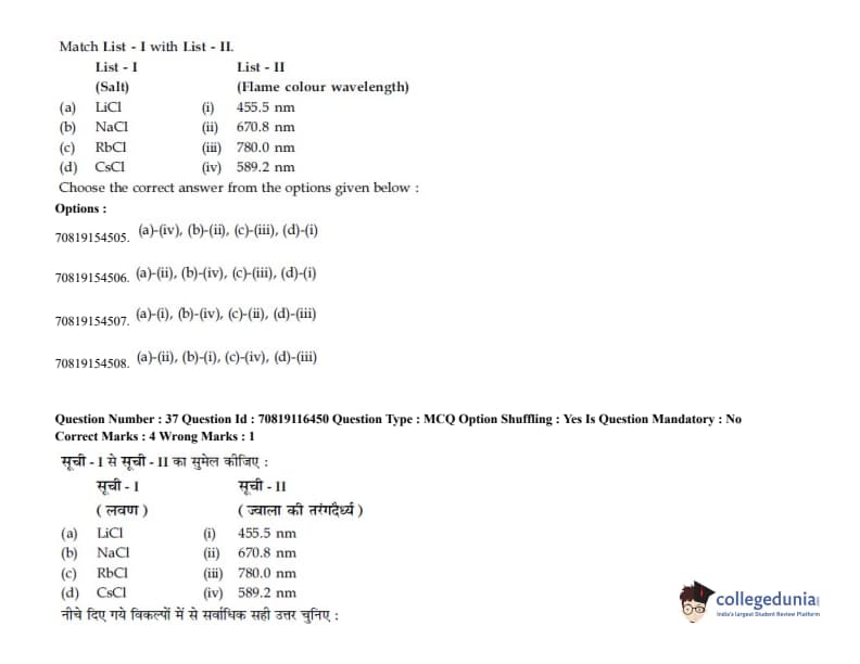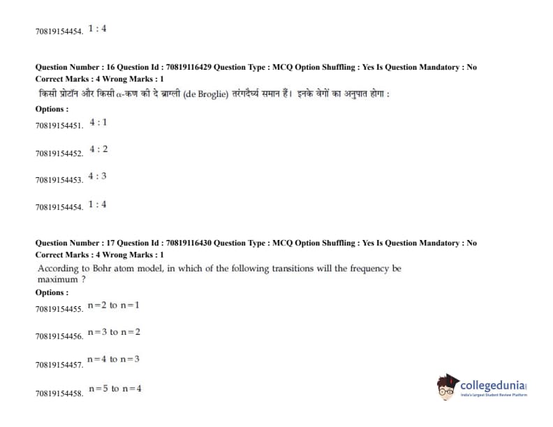 JEE Main 2021 बी.ई./बी.टेक प्रश्न पत्र - 24 फरवरी, 2021- दोपहर के सत्र को मध्यम कठिनाई स्तर का माना गया। वर्ष 2021 के लिए नए JEE Main परीक्षा पैटर्न के बाद, पेपर में कुल 90 प्रश्न थे, जिनमें से उम्मीदवारों को 75 प्रश्नों का प्रयास करना था। प्रत्येक अनुभाग में उम्मीदवार को 10 संख्यात्मक उत्तर प्रकार के प्रश्नों में से किसी भी 5 को हल करने का विकल्प दिया गया था। पेपर में गणित सबसे कठिन खंड था, उसके बाद भौतिकी का स्थान था। रसायन विज्ञान पेपर का सबसे आसान खंड था जिसमें प्रत्यक्ष सूत्र और समीकरण-आधारित प्रश्न शामिल थे। JEE Main 2022 परीक्षा के इच्छुक उम्मीदवार अभ्यास के लिए 24 फरवरी, 2021 सत्र के लिए उत्तर कुंजी पीडीएफ के साथ JEE Main प्रश्न पत्र डाउनलोड कर सकते हैं।