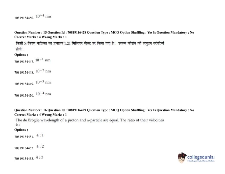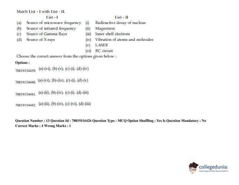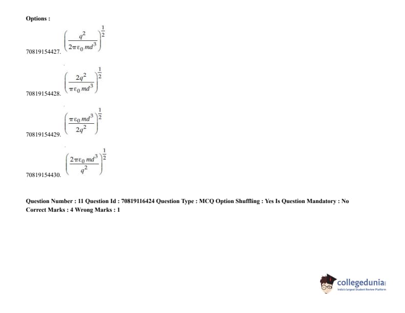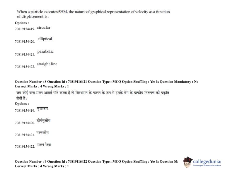 | JEE Main भौतिकी प्रश्न पत्र | JEE Main गणित प्रश्न पत्र | JEE Main रसायन विज्ञान प्रश्न पत्र |