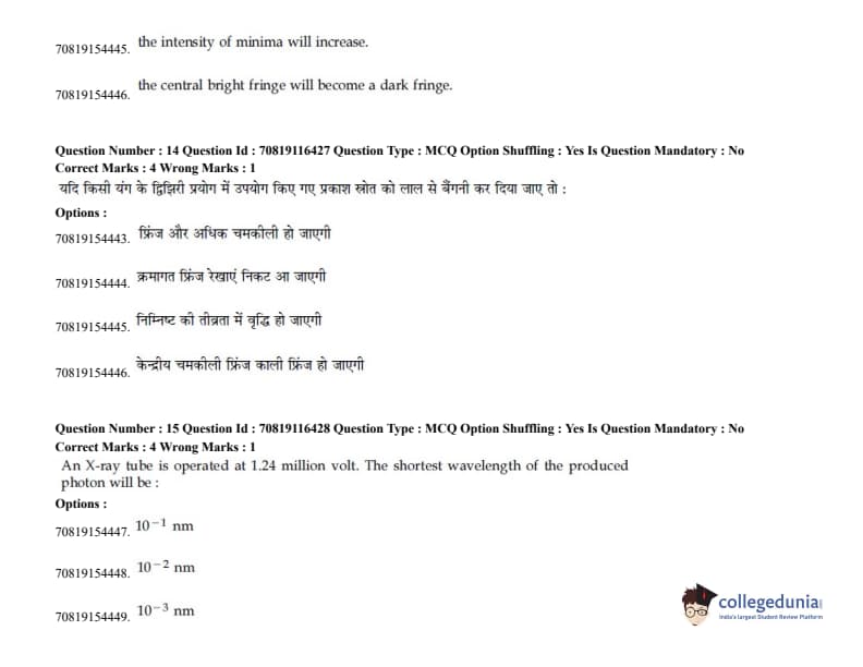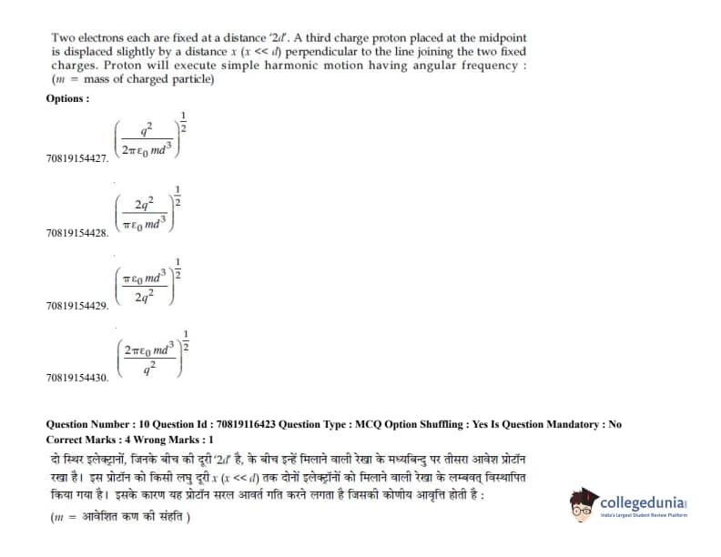 - भौतिकी के लिए, प्रमुख विषय इलेक्ट्रोस्टैटिक्स, यांत्रिकी, प्रकाशिकी और आधुनिक भौतिकी थे।JEE MAIN फिजिक्स सिलेबस चेक करें