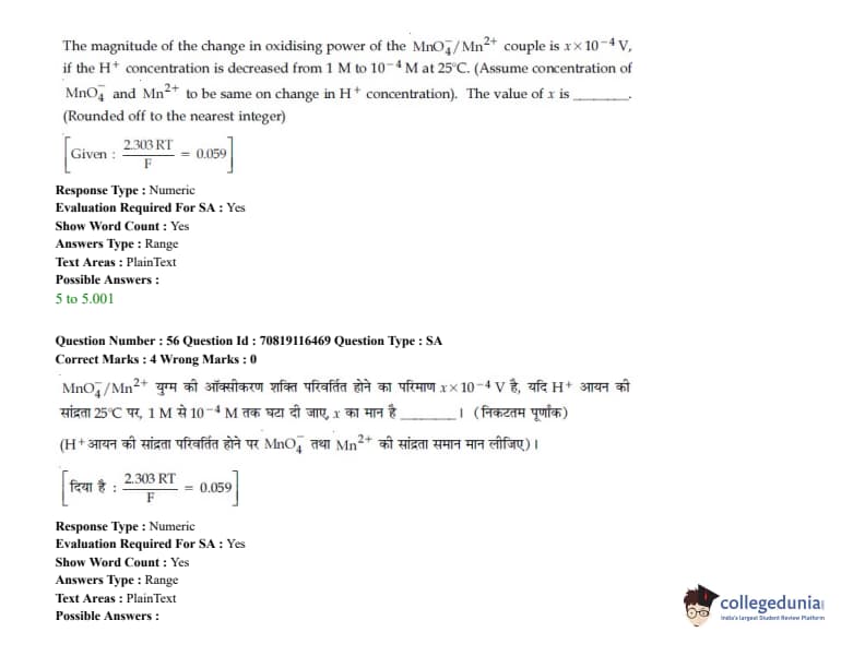 - रसायन विज्ञान में केमिकल थर्मोडायनामिक्स, केमिकल काइनेटिक्स, कोऑर्डिनेशन कंपाउंड्स और पॉलिमर से प्रमुख प्रश्न थे। JEE MAIN केमिस्ट्री सिलेबस चेक करें