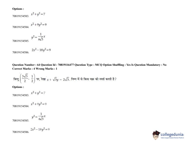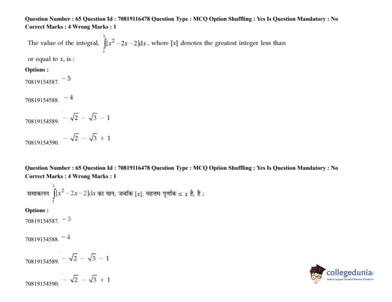 - गणित में इंटीग्रल कैलकुलस, डिफरेंशियल कैलकुलेशन, कोऑर्डिनेशन और बीजगणित पर अधिकतम प्रश्न थे। JEE MAIN गणित पाठ्यक्रम चेक करें