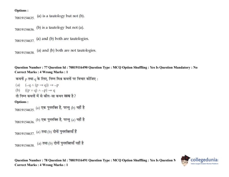 JEE Main बी.ई./बी.टेक प्रश्न पत्र- फरवरी 24,2021 (दोपहर)