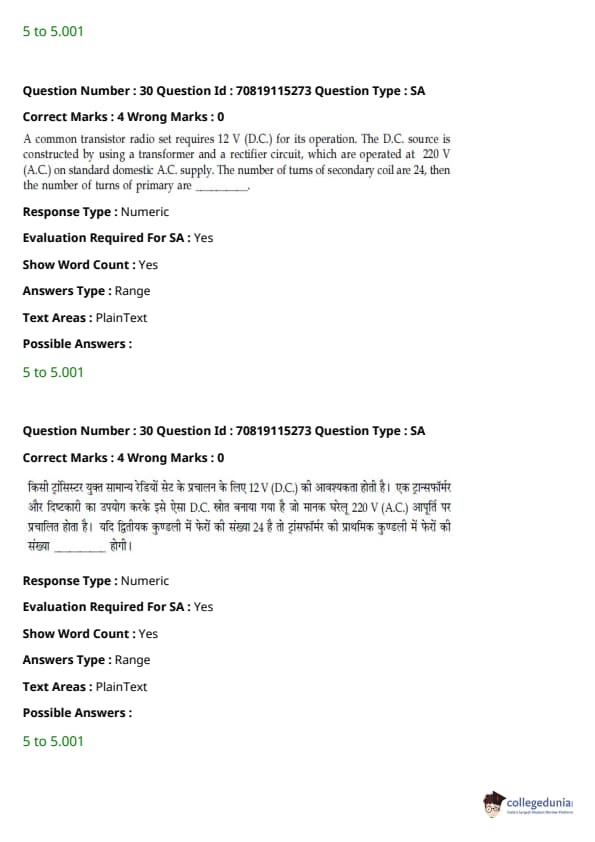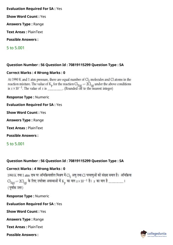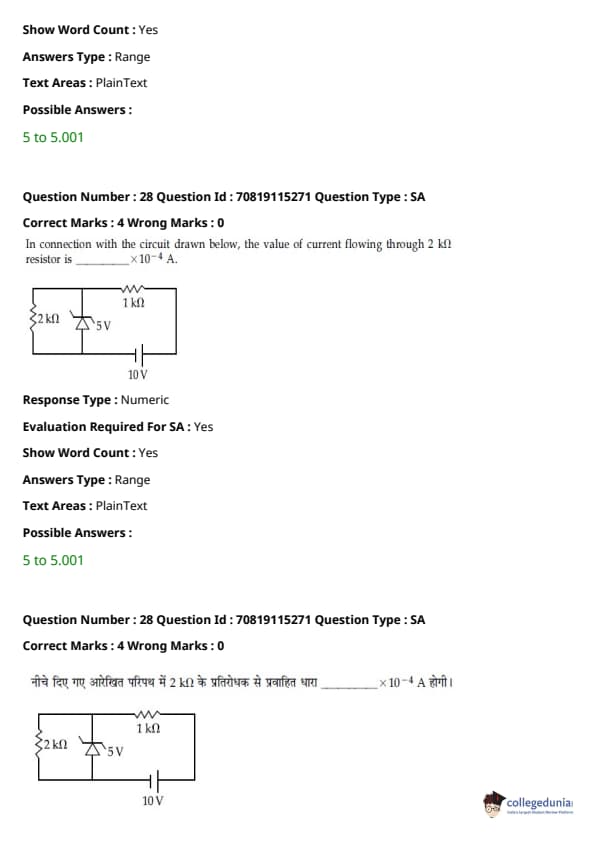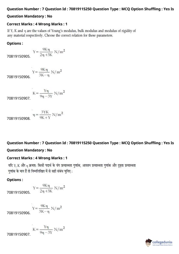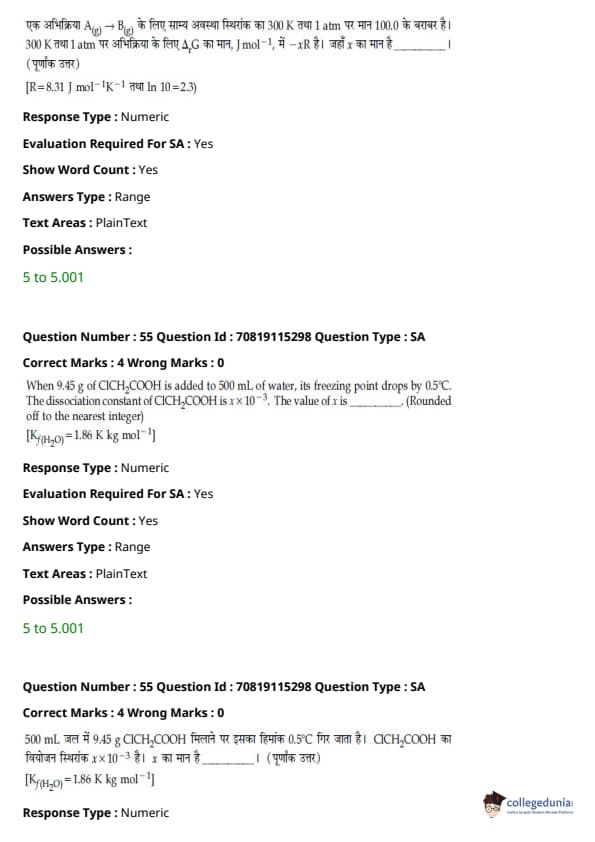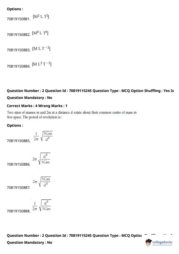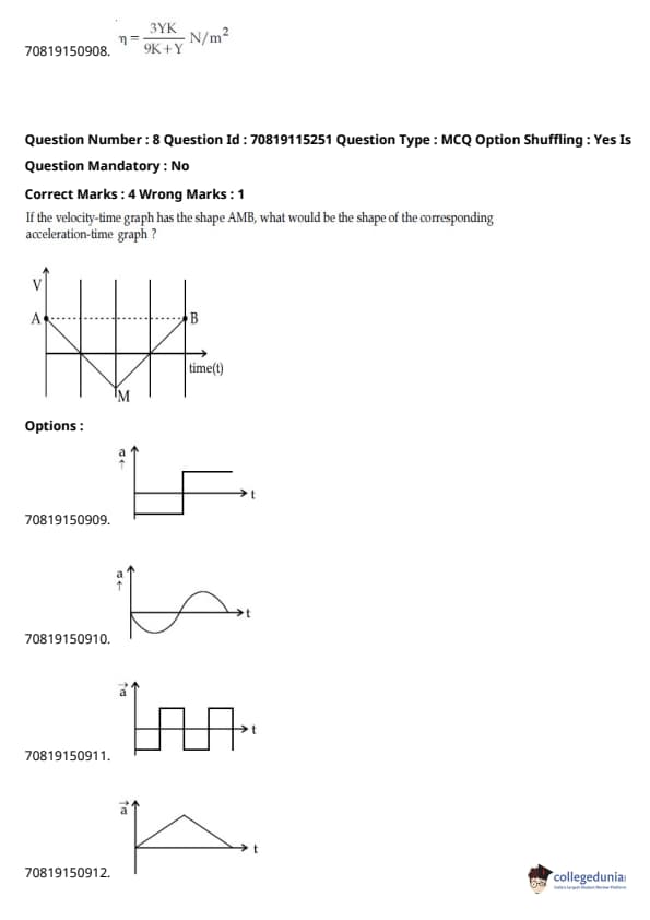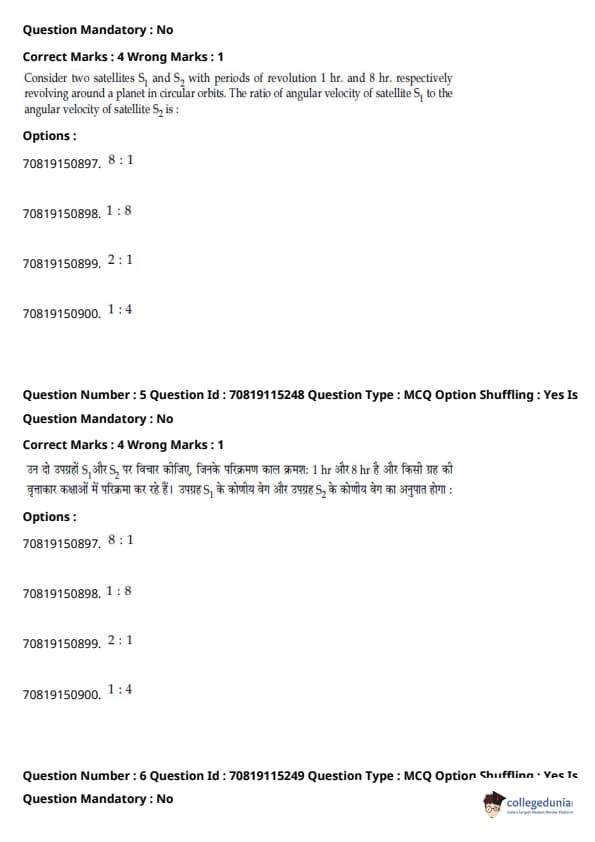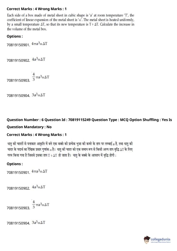 - फिजिक्स सेक्शन अन्य सेक्शन की तुलना में आसान था। यद्यपि गणना-आधारित प्रश्नों की संख्या सिद्धांत-आधारित प्रश्नों की तुलना में अधिक थी, वे अधिकतर छोटे थे और प्रत्यक्ष सूत्र के एक या अन्य रूपांतरों को शामिल करते थे।