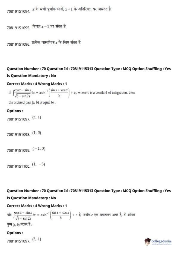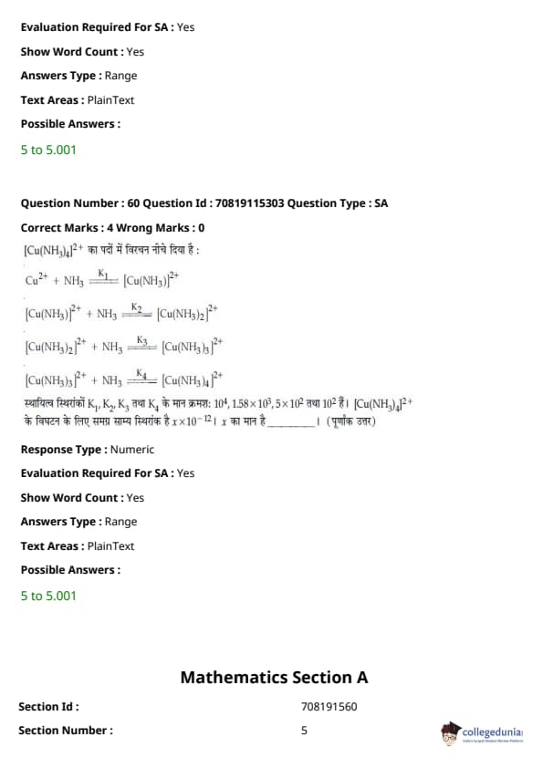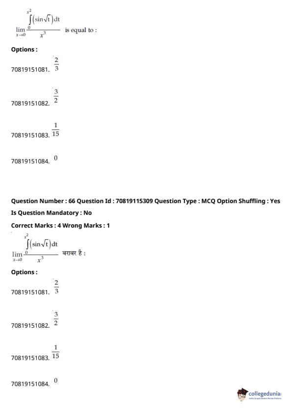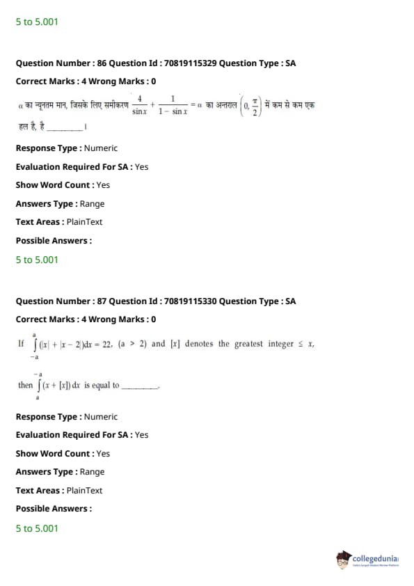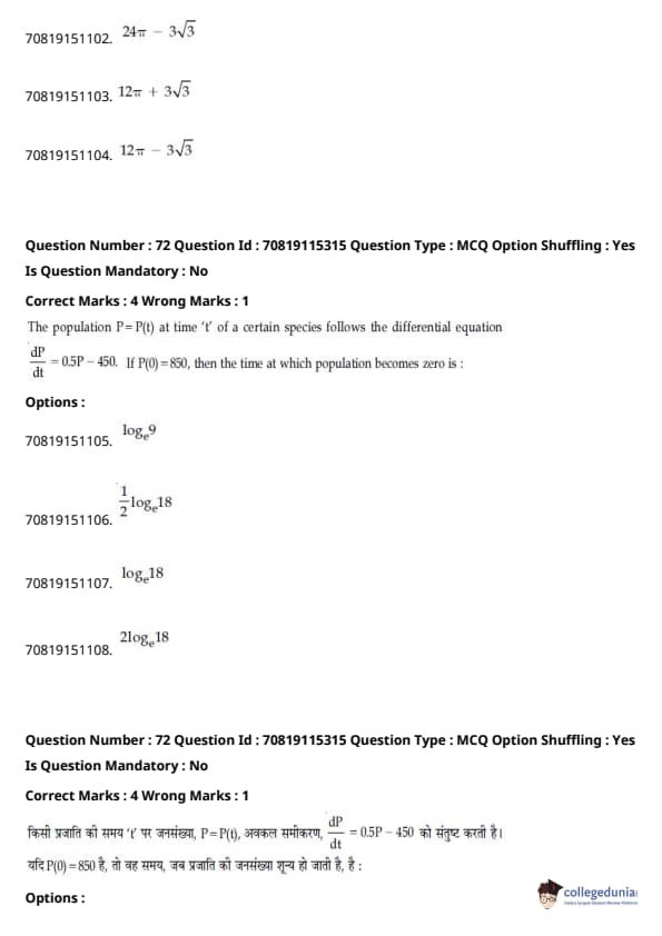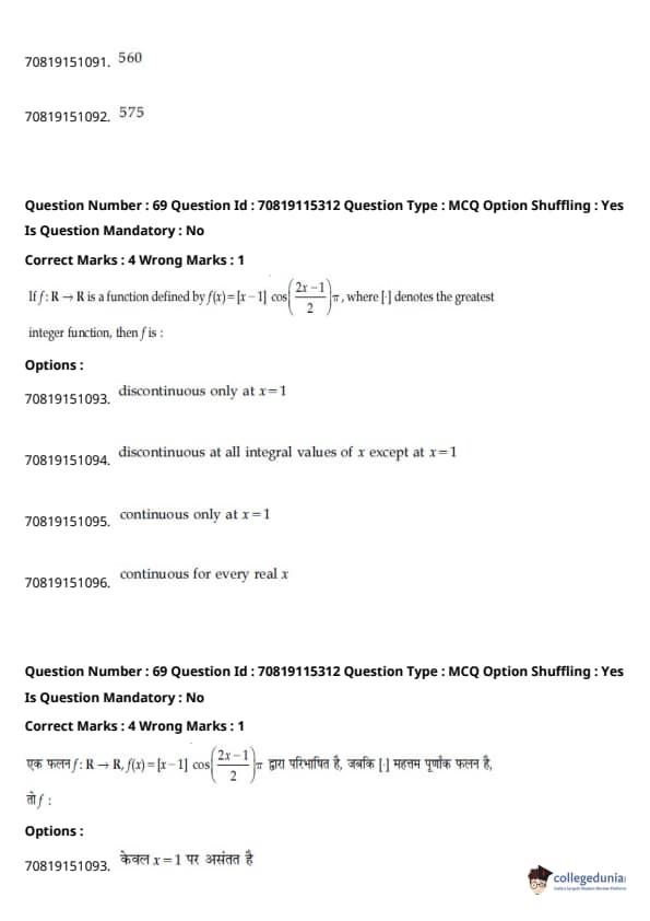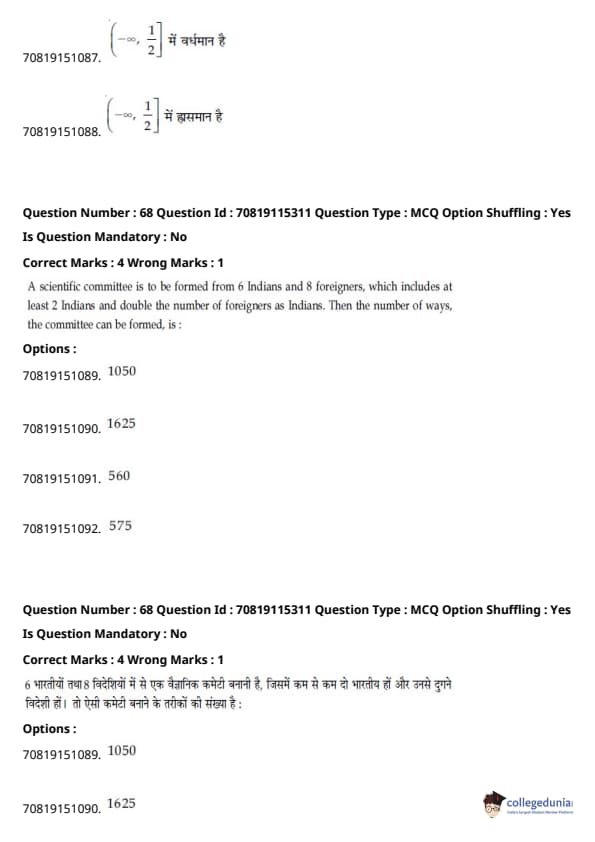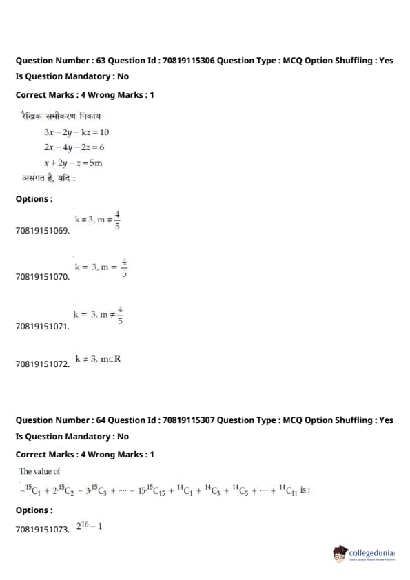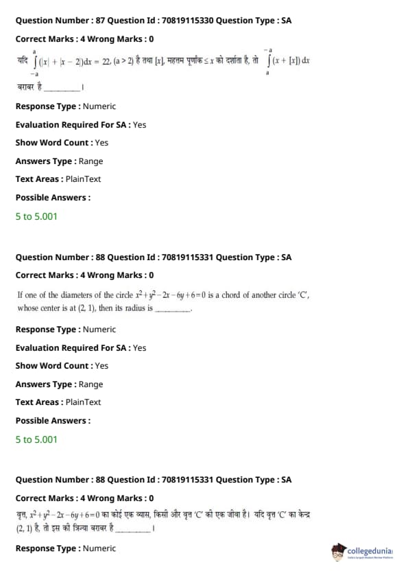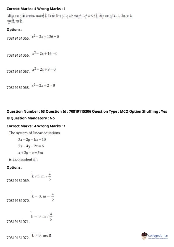 - हमेशा की तरह, गणित परीक्षा का सबसे कठिन खंड था, जिसमें इंटीग्रल्स और बीजगणित के प्रश्न लंबे थे।