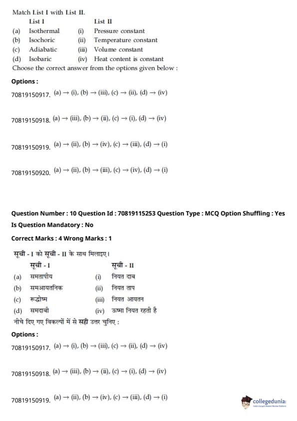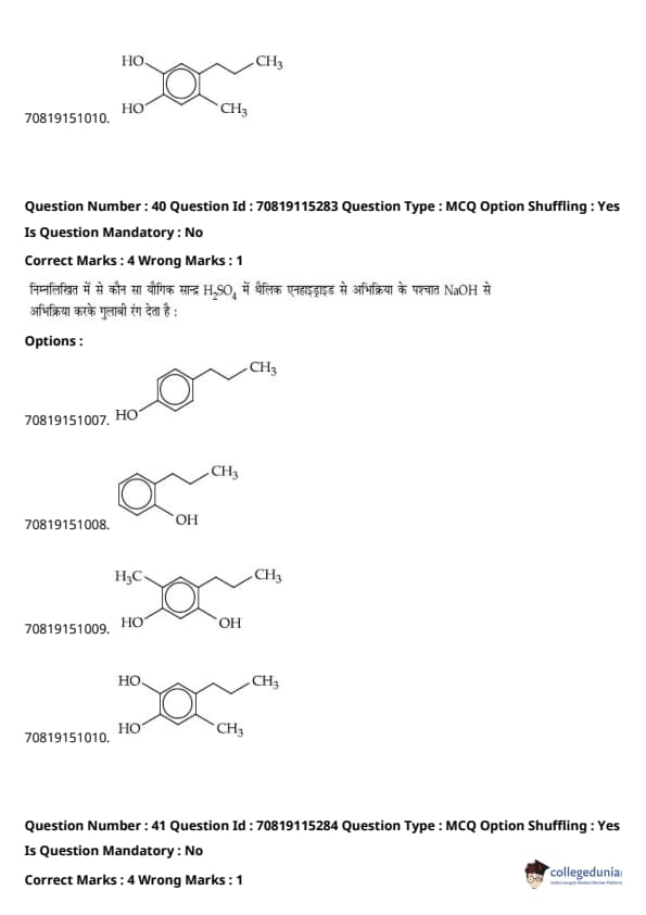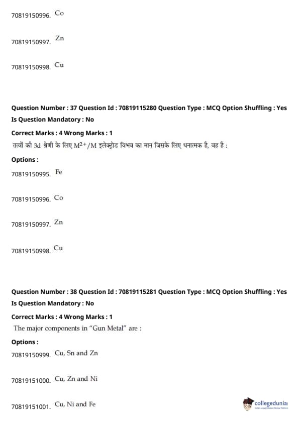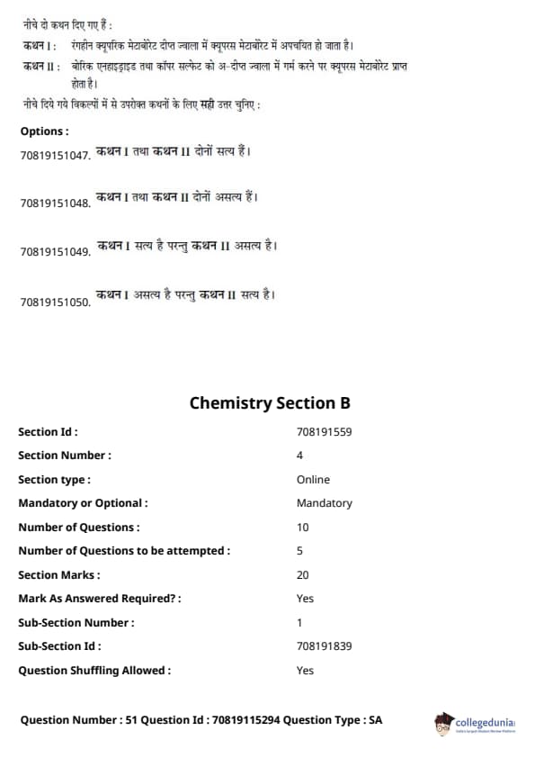 - रसायन विज्ञान अनुभाग में, प्रमुख इकाइयाँ इस प्रकार थीं - कार्बनिक रसायन विज्ञान II (30%), भौतिक रसायन I (20%), और भौतिक रसायन II (18%)