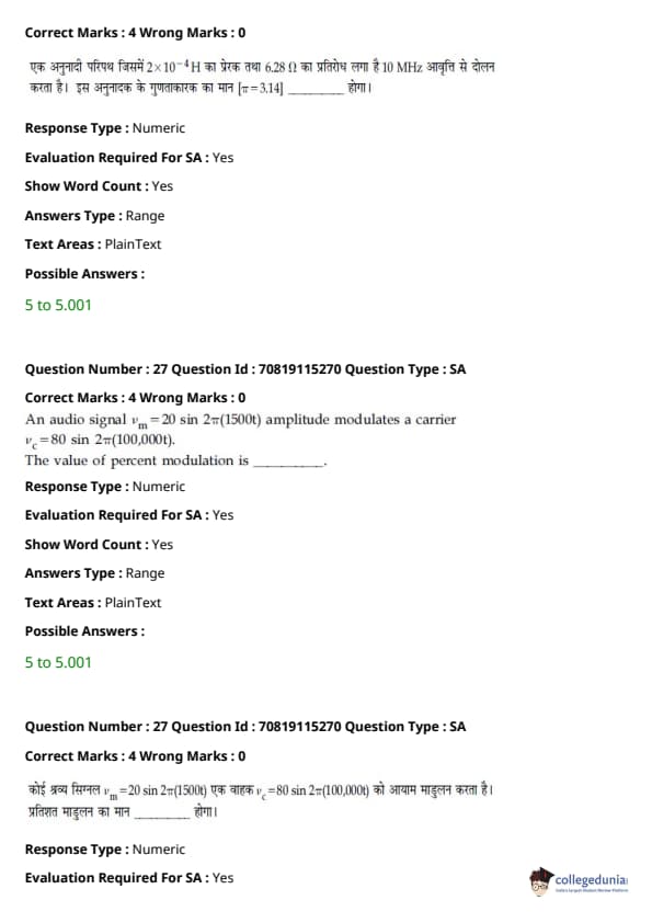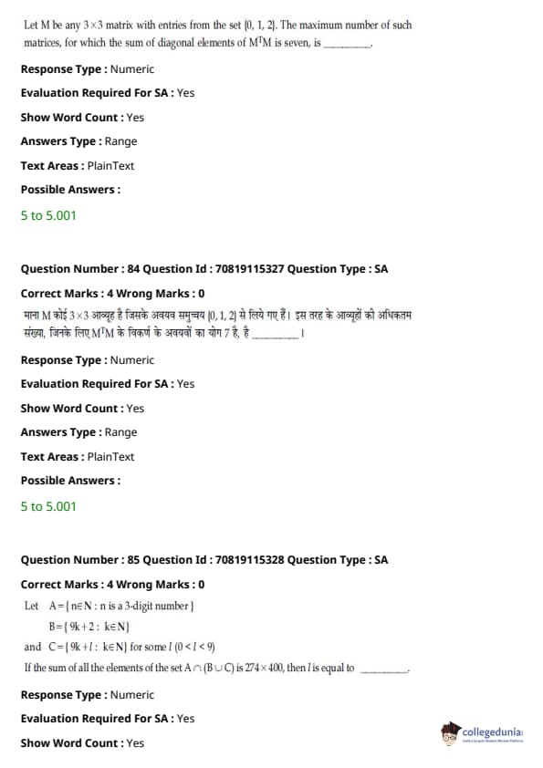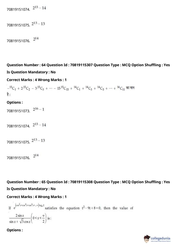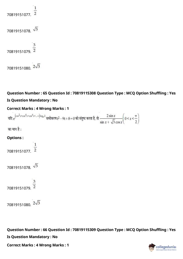 उत्तर कुंजी पीडीएफ के साथ JEE Main बी.ई/बी.टेक प्रश्न पत्र