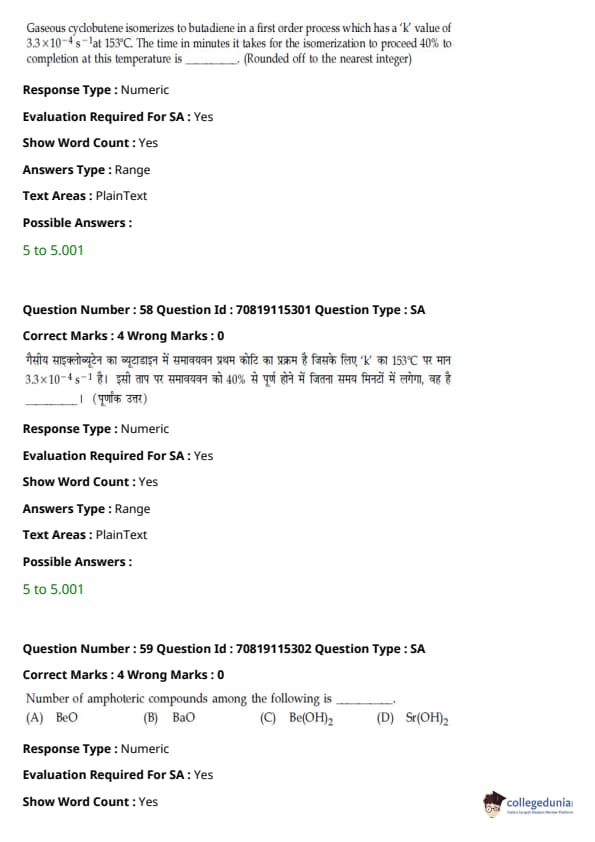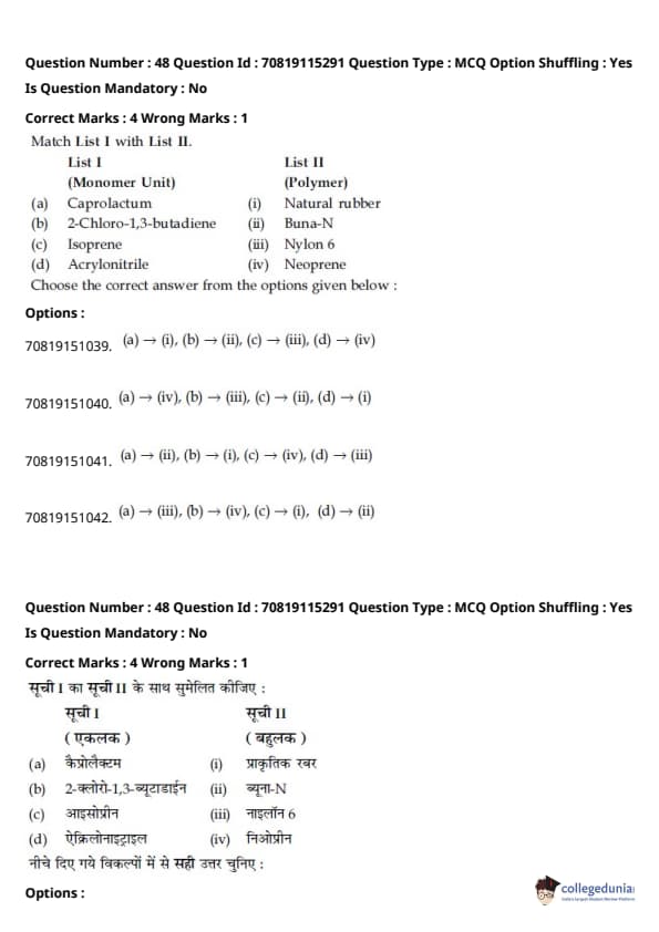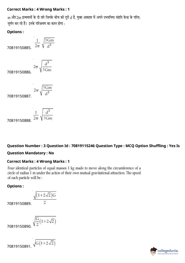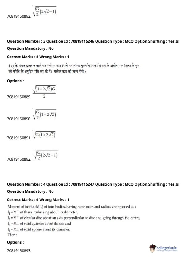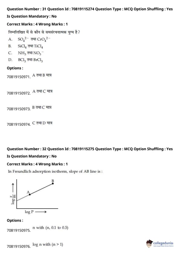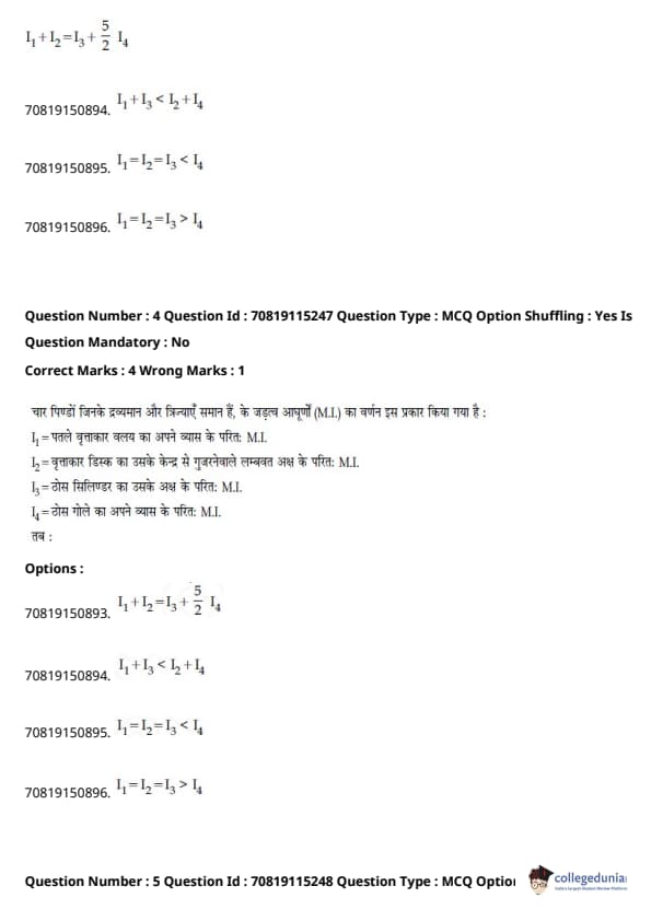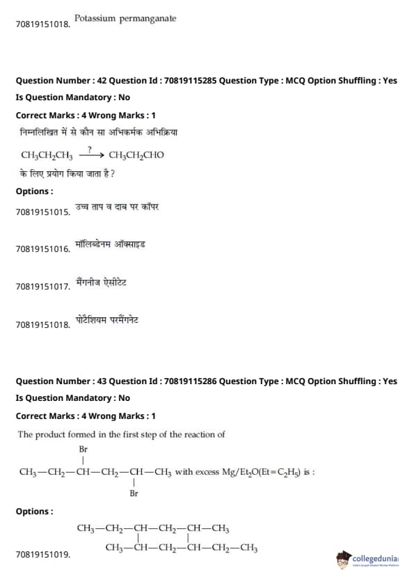 | JEE Main भौतिक विज्ञान प्रश्न पत्र | JEE Main गणितप्रश्न पत्र | JEE Main रसायन विज्ञान प्रश्न पत्र |