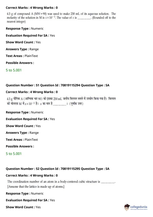 - पेपर में बारहवीं कक्षा के पाठ्यक्रम से लगभग 48 प्रश्न पूछे गए थे, और ग्यारहवीं कक्षा के पाठ्यक्रम से लगभग 42 प्रश्न पूछे गए थे।