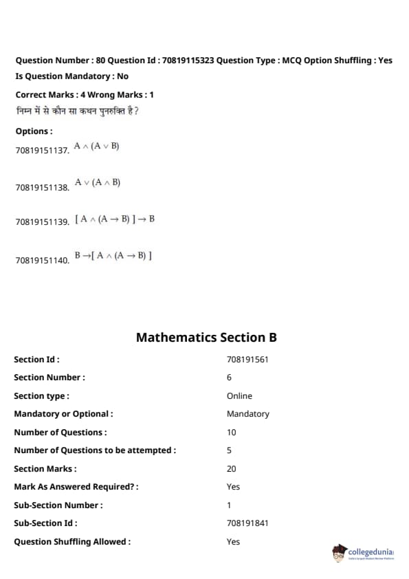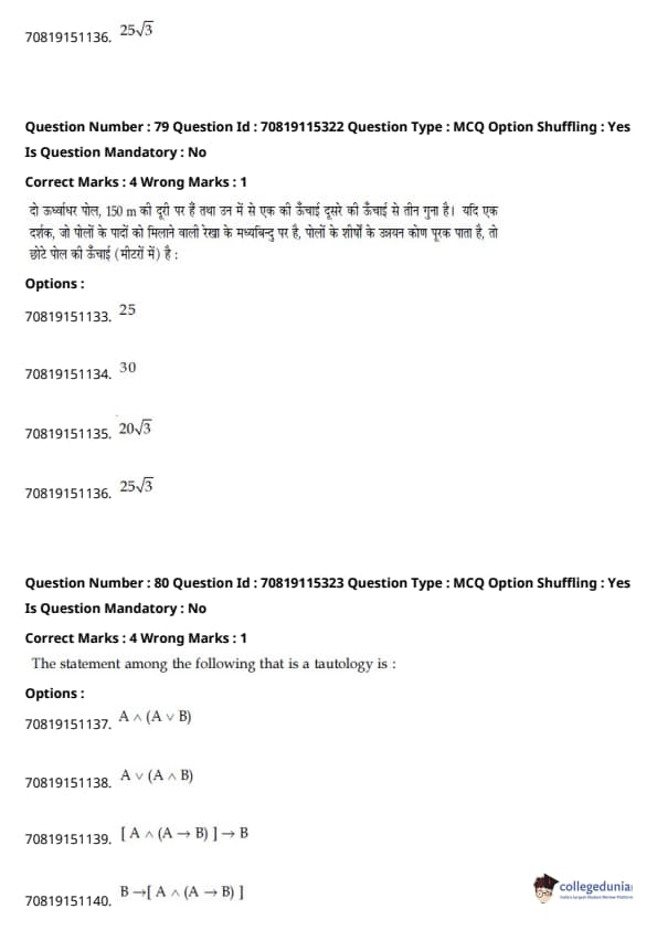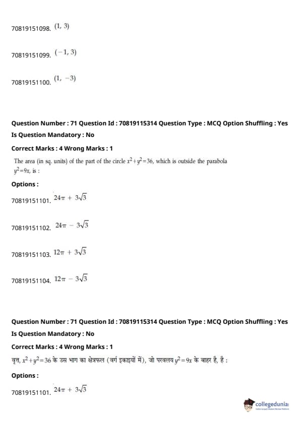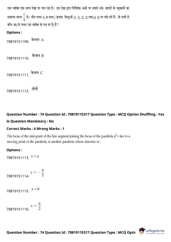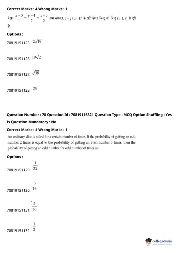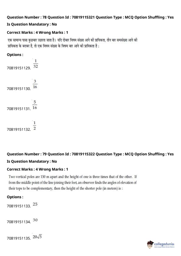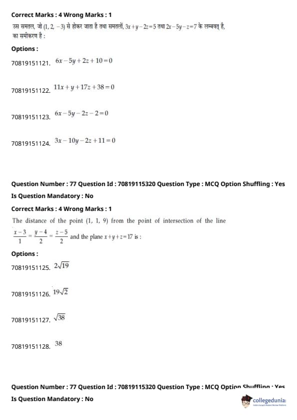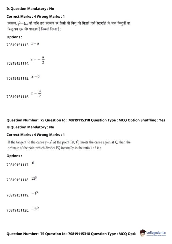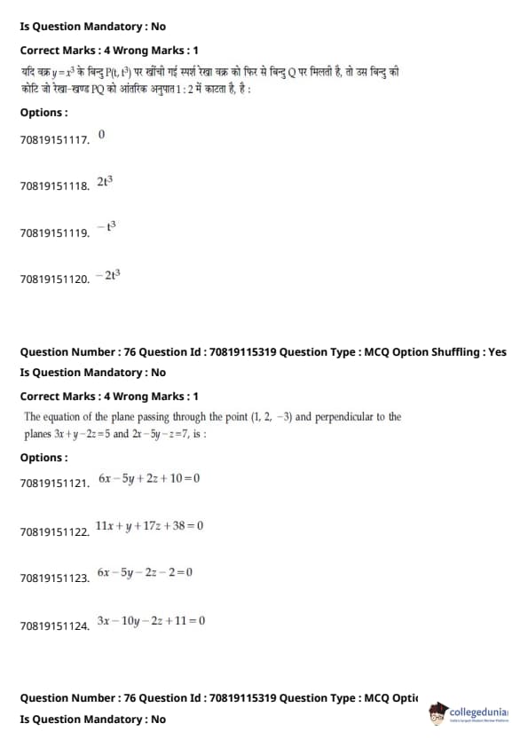 - गणित में प्रमुख इकाइयाँ थीं - डिफरेंशियल कैलकुलस (20%), इंटीग्रल कैलकुलस (20%), कोऑर्डिनेट ज्योमेट्री (12%), और वेक्टर और 3D (12%)