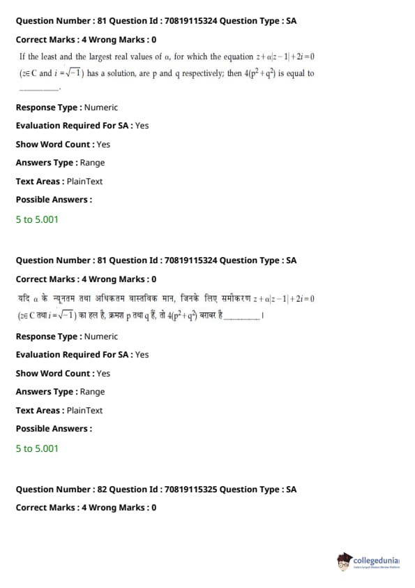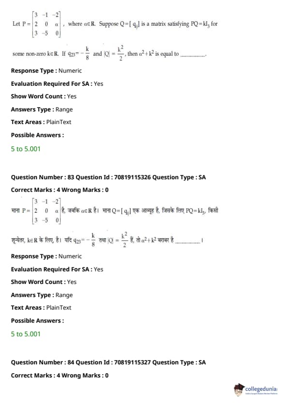 JEE Main 2021 बी.ई./बी.टेक प्रश्न पत्र - 24 फरवरी, 2021- पूर्वाह्न सत्र को छात्रों और विशेषज्ञों द्वारा समग्र कठिनाई के संदर्भ में मध्यम दर्जा दिया गया था। तीन खंडों के कठिनाई स्तरों के संदर्भ में भी पेपर को अच्छी तरह से संतुलित बताया गया था। संशोधित JEE Main परीक्षा पैटर्न के अनुसार, प्रत्येक अनुभाग से कुल 30 प्रश्न पूछे गए थे, जिसमें से 25 प्रश्न उम्मीदवार द्वारा अनुभाग में करने का प्रयास किया गया था। JEE Main 2022 के लिए लक्ष्य रखने वाले उम्मीदवार अभ्यास और विश्लेषण के लिए नीचे दिए गए सत्र के लिए उत्तर कुंजी पीडीएफ के साथ प्रश्न पत्र डाउनलोड कर सकते हैं।