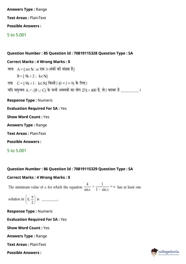 परीक्षा में प्रतियोगी रैंक हासिल करने के लिए JEE Main प्रश्न पत्रों को हल करना बहुत जरूरी है। JEE Main पिछले वर्ष के प्रश्न पत्रों का प्रयास करने से न केवल एक उम्मीदवार को उसकी गति में सुधार करने में मदद मिलेगी बल्कि उसका आत्मविश्वास भी बढ़ेगा। एक अतिरिक्त प्लस के रूप में, व्यक्ति अपने कमजोर और मजबूत क्षेत्रों से भी परिचित होगा जो परीक्षा की अंतिम तैयारी में और मदद करेगा।