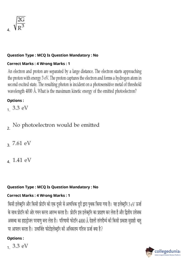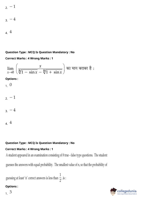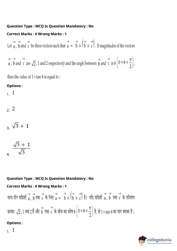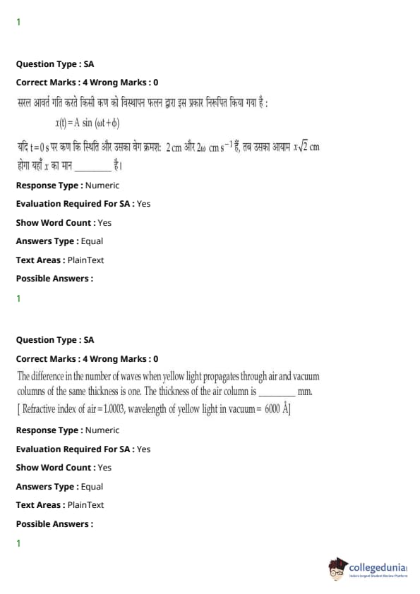 | JEE Main भौतिकी प्रश्न पत्र | JEE Main मैथ्स प्रश्न पत्र | JEE Main रसायन विज्ञान प्रश्न पत्र |