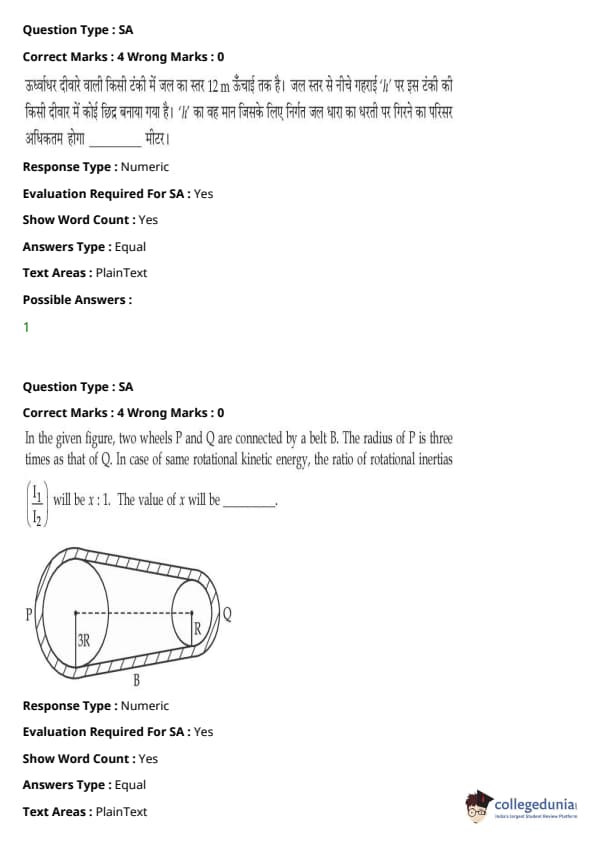 उत्तर कुंजी पीडीएफ के साथ JEE Main बी.ई / बी.टेक प्रश्न पत्र