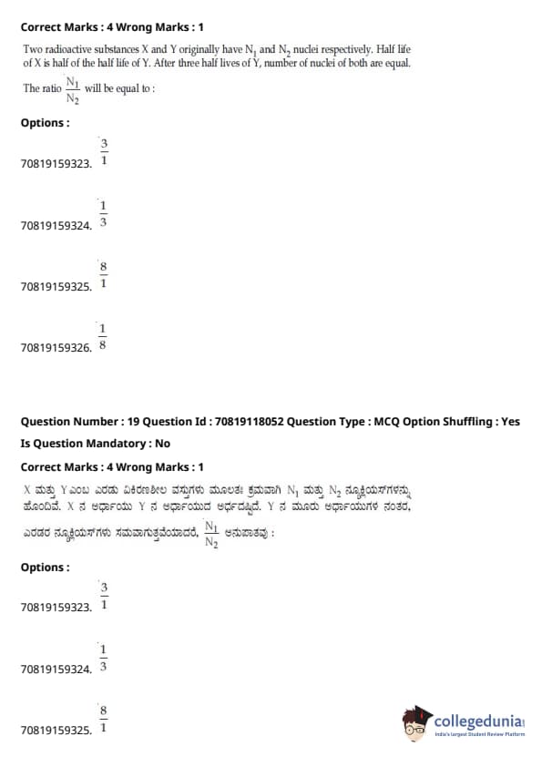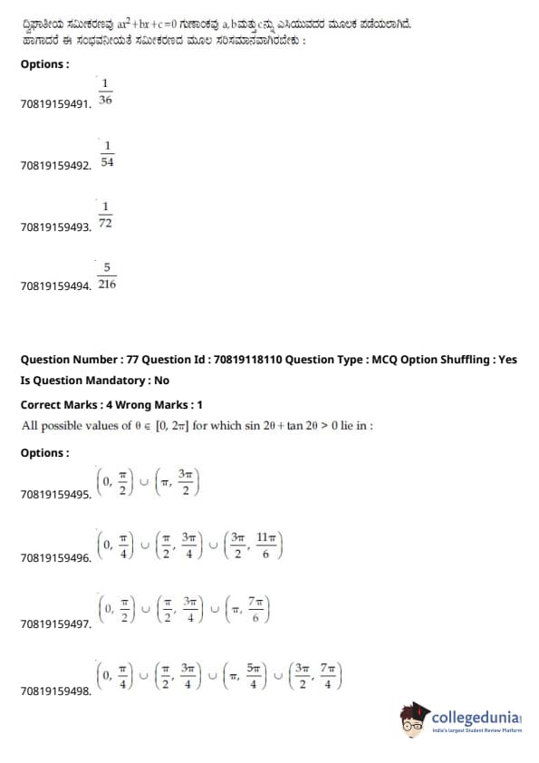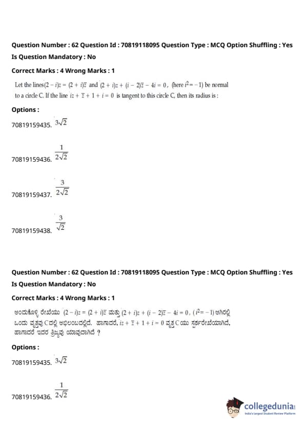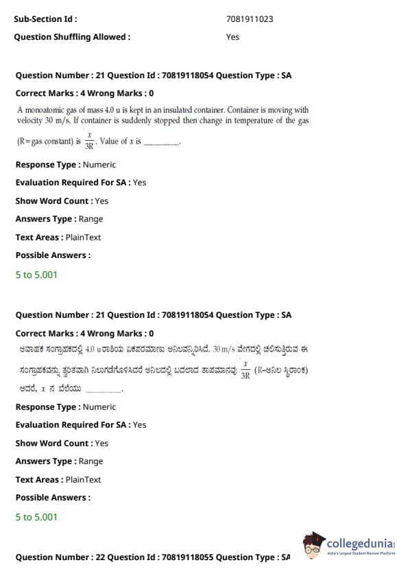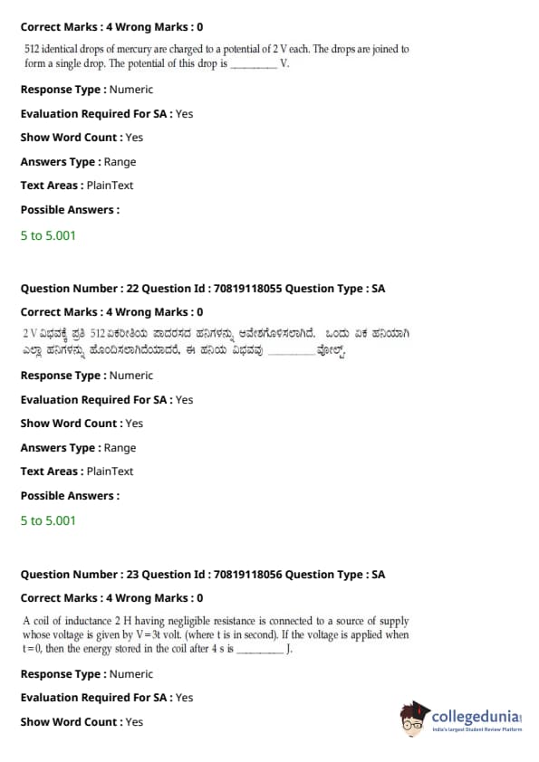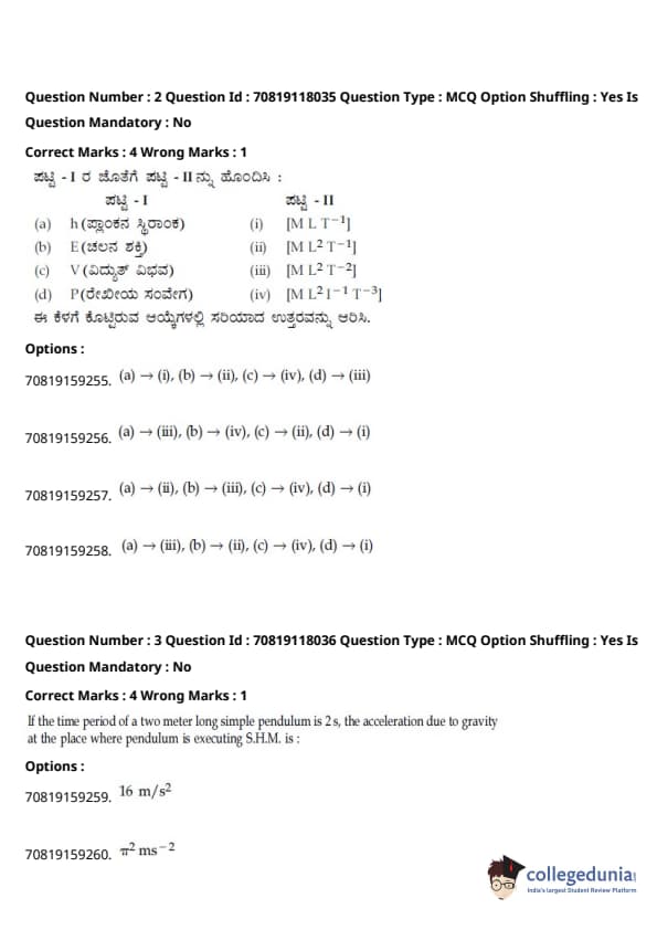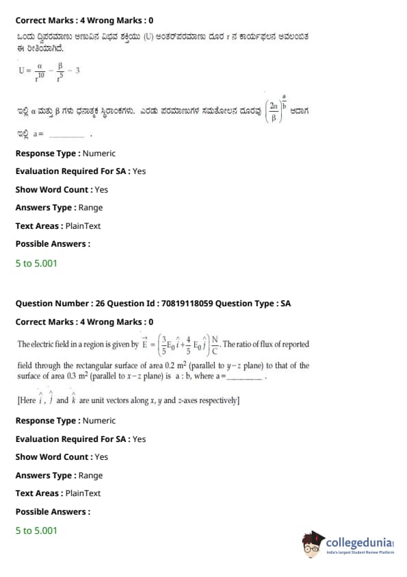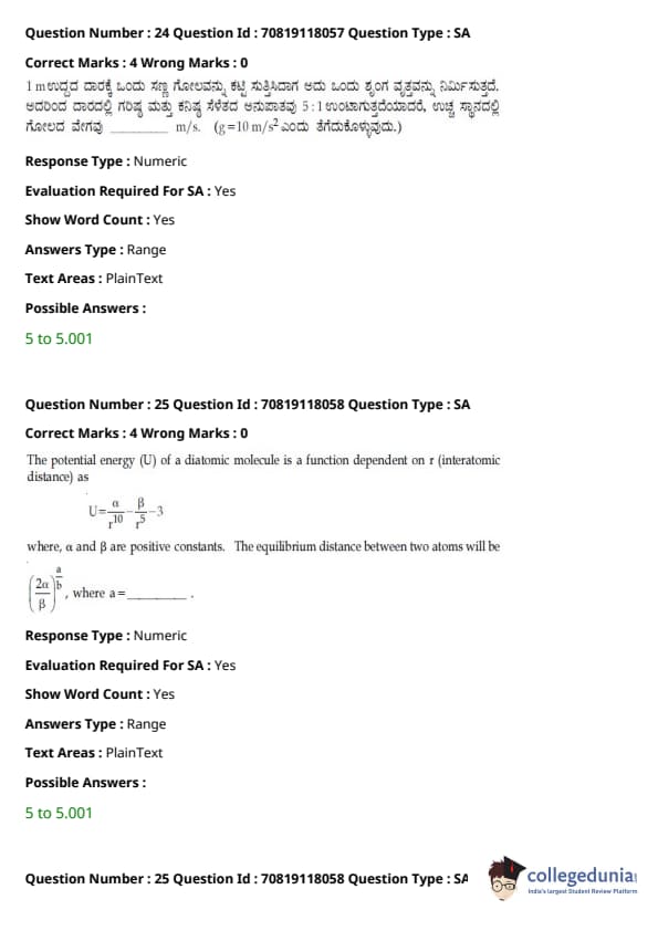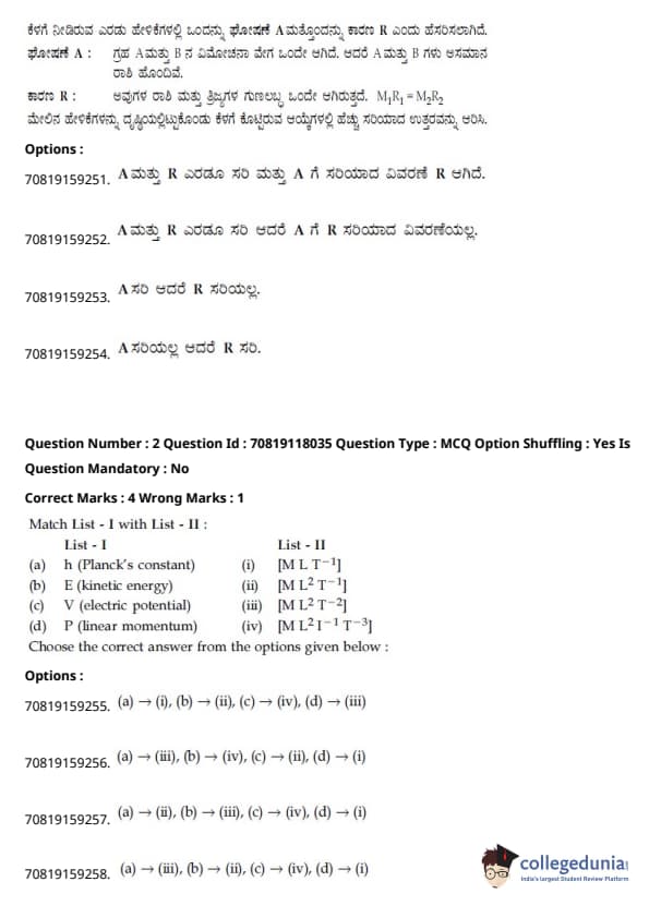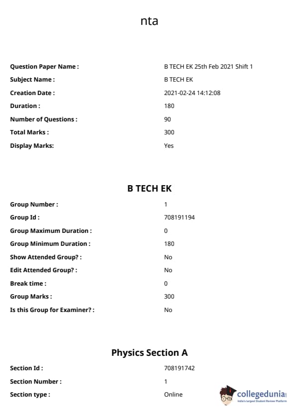 JEE Main ಬಿಇ/ಬಿ.ಟೆಕ್ ಪ್ರಶ್ನೆ ಪತ್ರಿಕೆ- ಫೆಬ್ರವರಿ 25,2021 (ಬೆಳಗ್ಗೆ)
