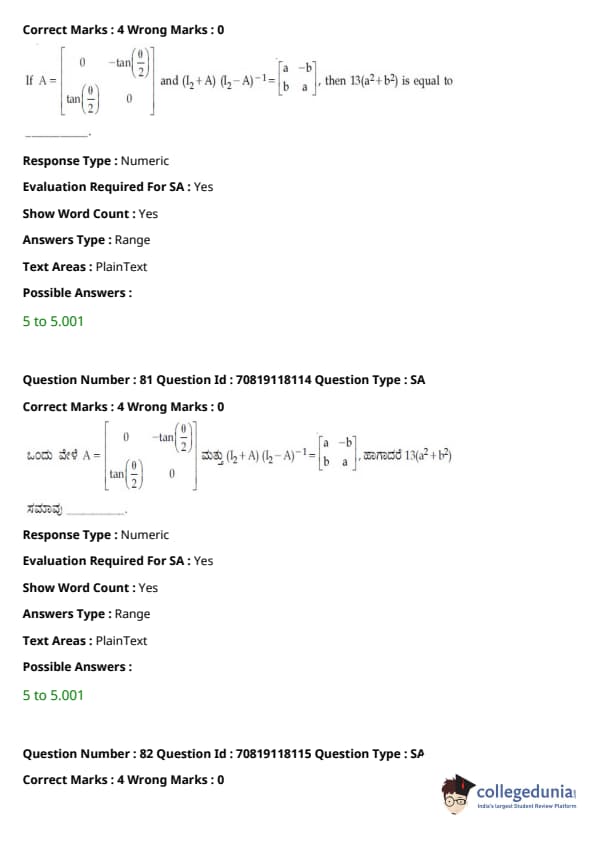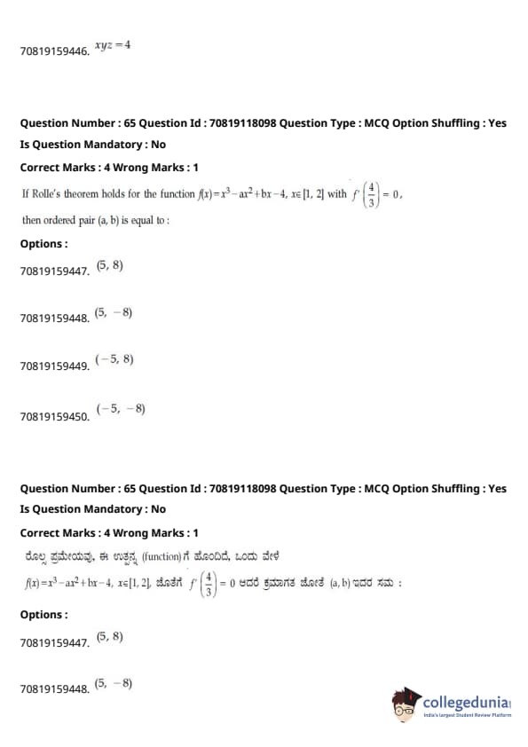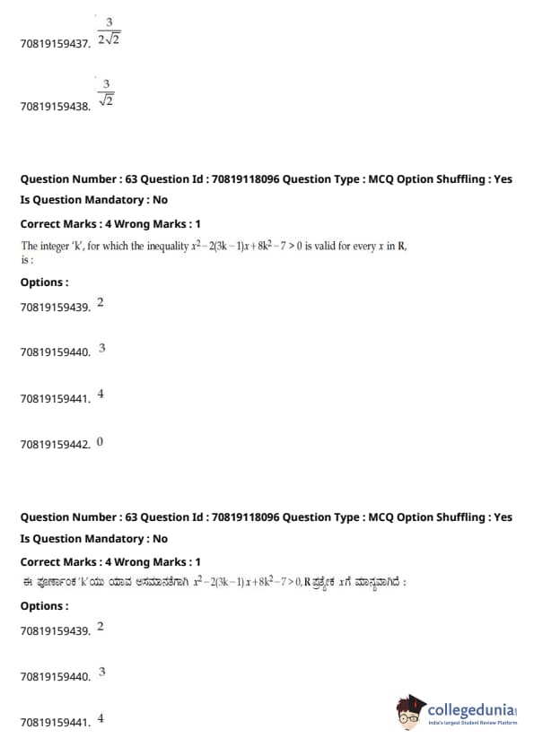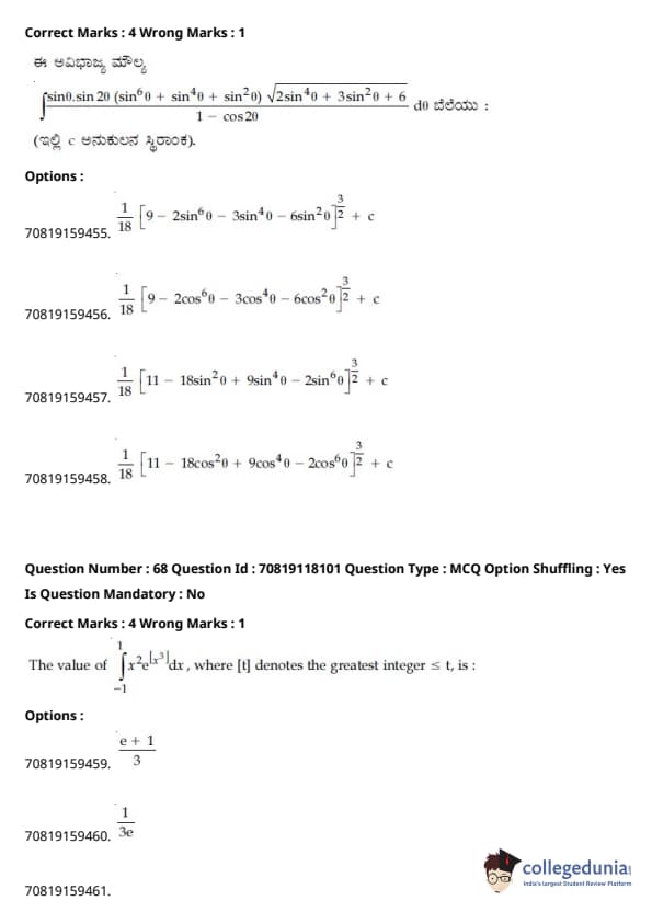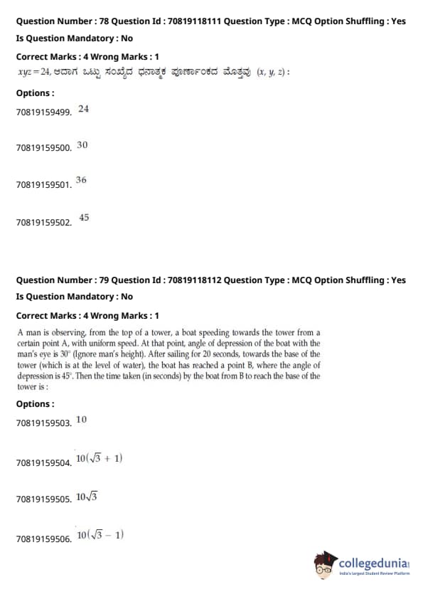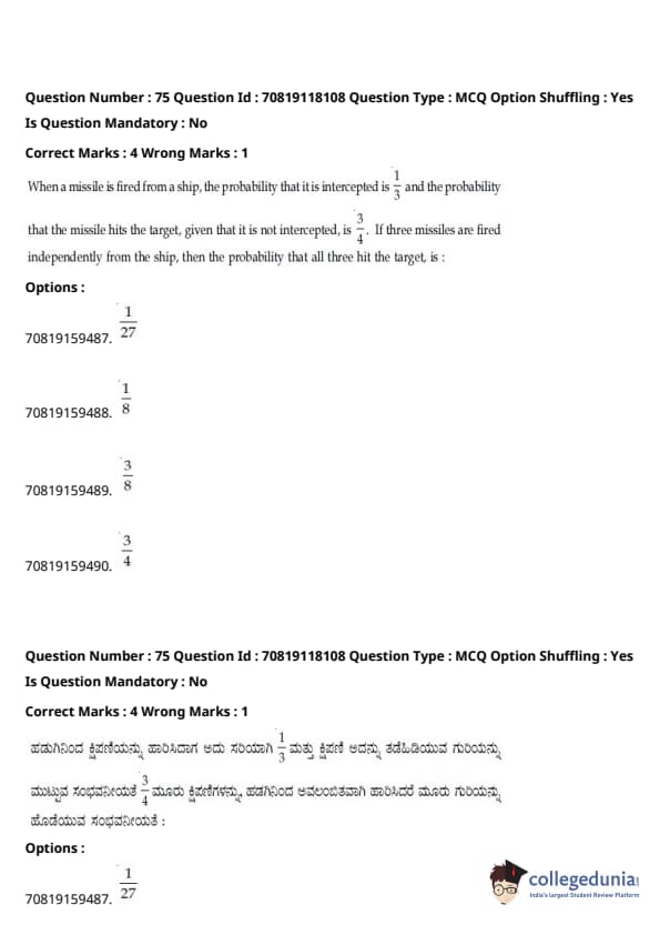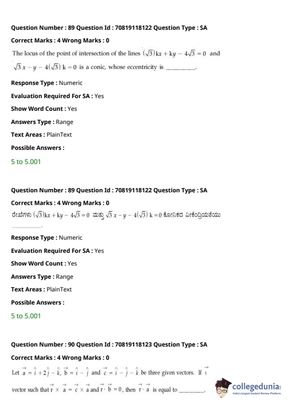 | JEE Main ಭೌತಶಾಸ್ತ್ರ ಪ್ರಶ್ನೆ ಪತ್ರಿಕೆ | JEE Main ಗಣಿತ ಪ್ರಶ್ನೆ ಪತ್ರಿಕೆ | JEE Main ರಸಾಯನಶಾಸ್ತ್ರ ಪ್ರಶ್ನೆ ಪತ್ರಿಕೆ |