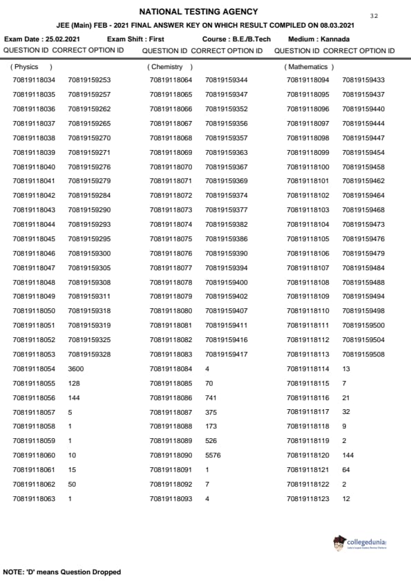 | JEE MAIN 2021 ಪ್ರಶ್ನೆ ಪತ್ರಿಕೆ | JEE MAIN 2021 ಉತ್ತರ ಕೀ |