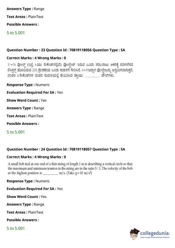 - ಭೌತಶಾಸ್ತ್ರ ವಿಭಾಗವು ಕಷ್ಟದಲ್ಲಿ ಮಧ್ಯಮವಾಗಿತ್ತು ಮತ್ತು ಎಲೆಕ್ಟ್ರೋಡೈನಾಮಿಕ್ಸ್ ಮತ್ತು ಮೆಕ್ಯಾನಿಕ್ಸ್ ಆಧಾರಿತ ಪ್ರಶ್ನೆಗಳು ಪತ್ರಿಕೆಯಲ್ಲಿ ಪ್ರಬಲವಾಗಿವೆ. JEE Main ಭೌತಶಾಸ್ತ್ರ ಪಠ್ಯಕ್ರಮವನ್ನುಪರಿಶೀಲಿಸಿ
