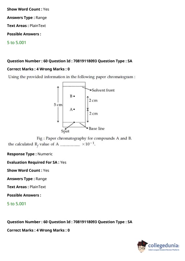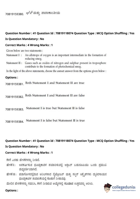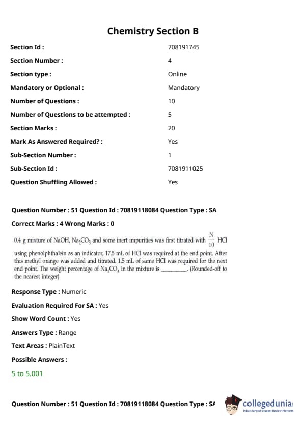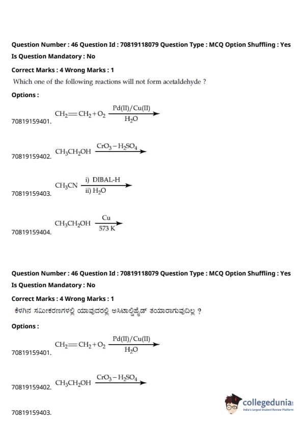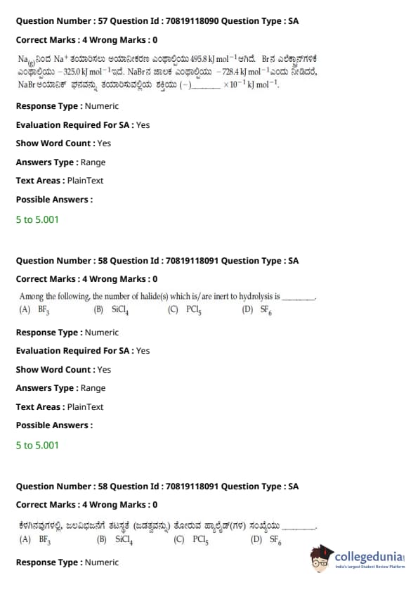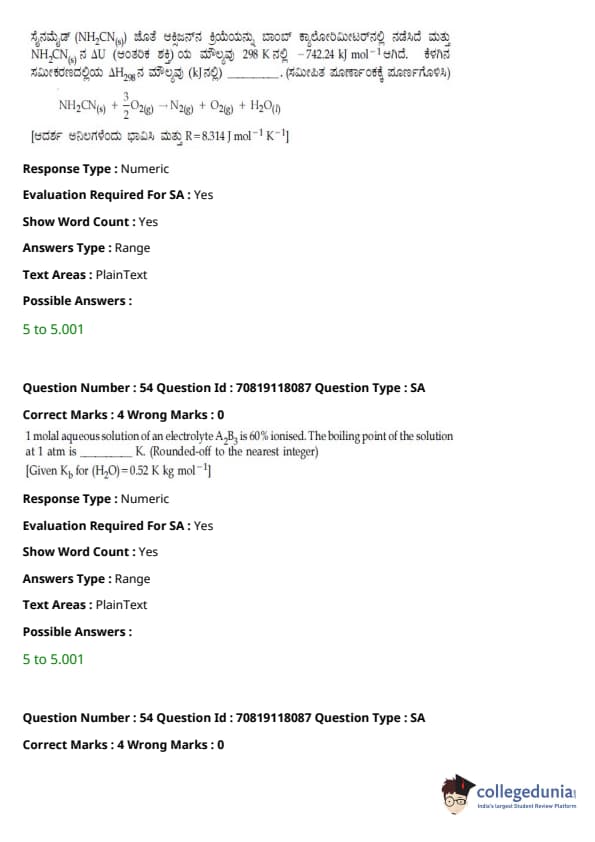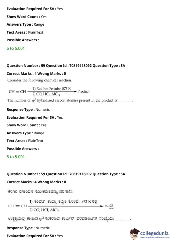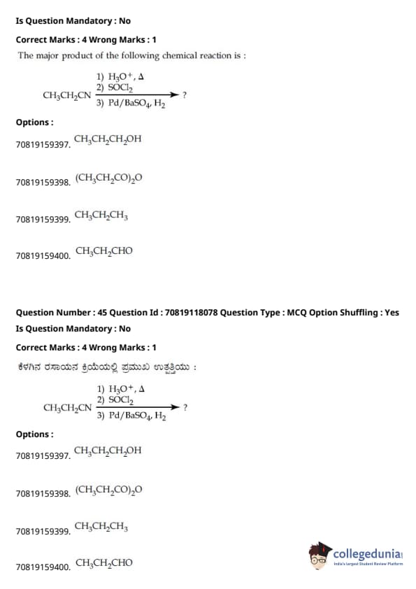 - ರಸಾಯನಶಾಸ್ತ್ರ ವಿಭಾಗವು ಅತ್ಯಂತ ಸುಲಭವಾಗಿದೆ ಮತ್ತು ಹೆಚ್ಚಿನ ಪ್ರಶ್ನೆಗಳನ್ನು ಸಾವಯವ ರಸಾಯನಶಾಸ್ತ್ರ ಮತ್ತು ಭೌತಿಕ ರಸಾಯನಶಾಸ್ತ್ರದಿಂದ ಕೇಳಲಾಯಿತು. JEE Main ರಸಾಯನಶಾಸ್ತ್ರ ಪಠ್ಯಕ್ರಮವನ್ನುಪರಿಶೀಲಿಸಿ