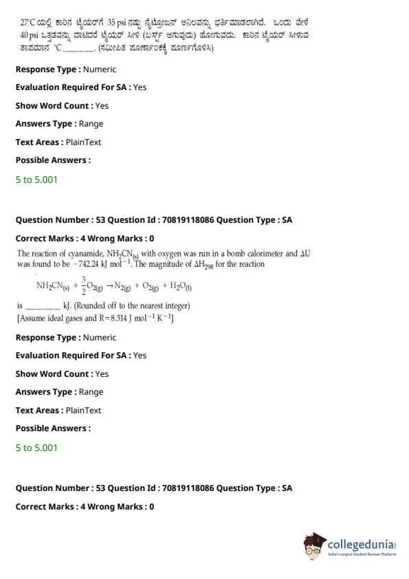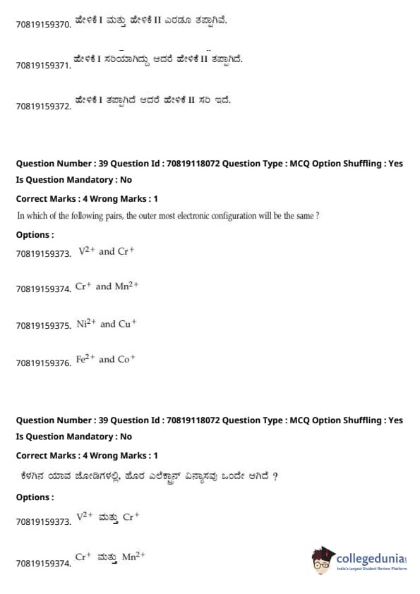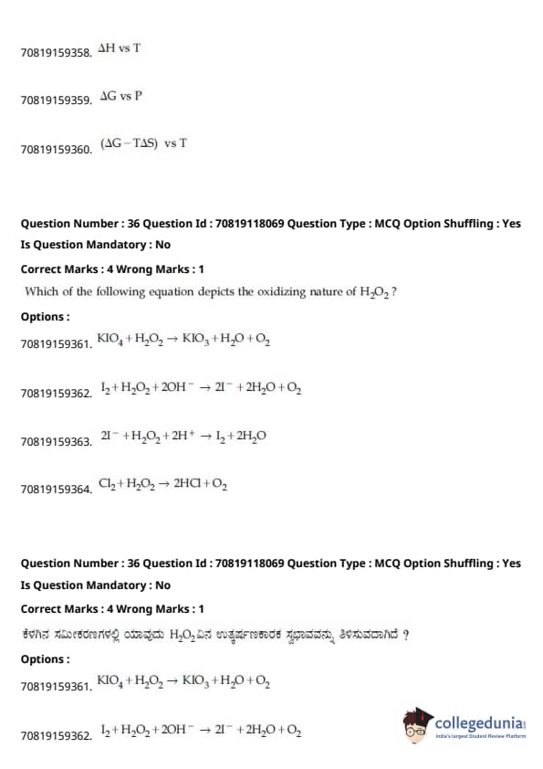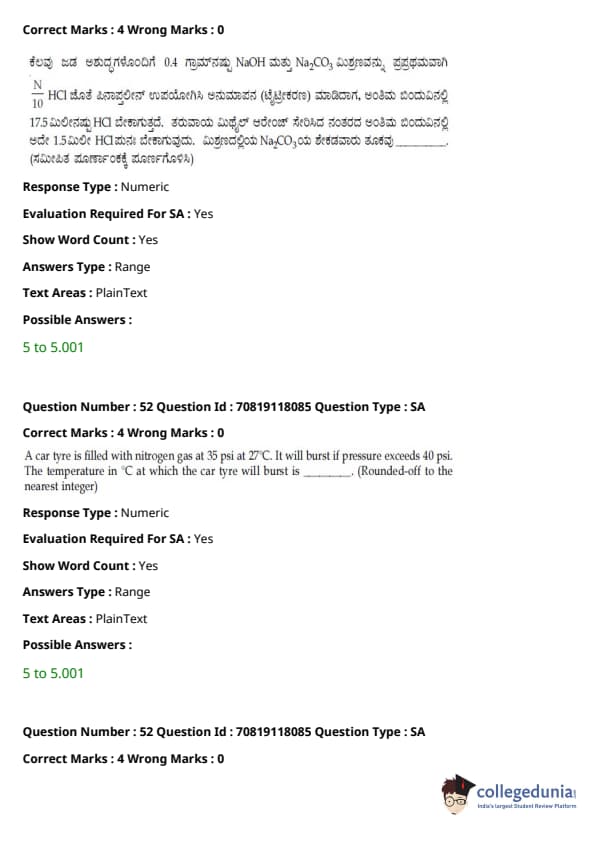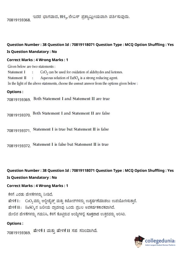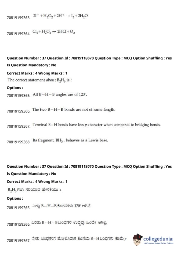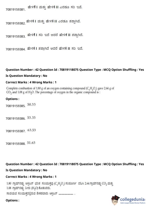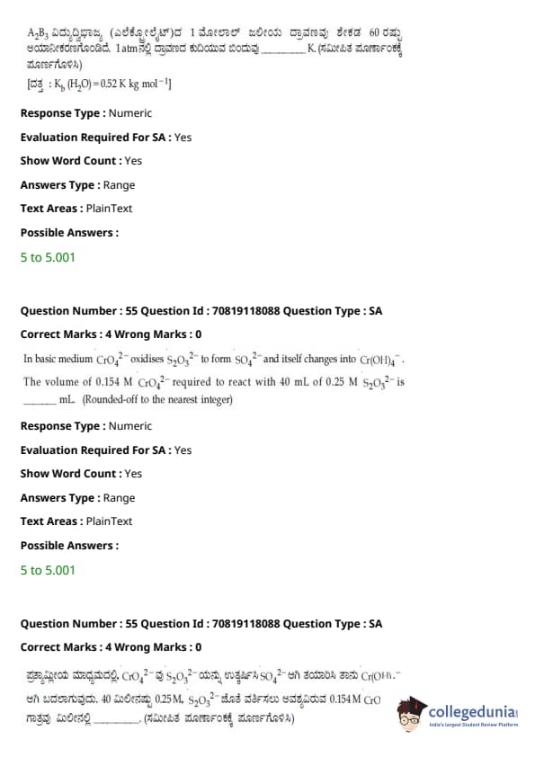 - ರಸಾಯನಶಾಸ್ತ್ರ ವಿಭಾಗವು ಅತ್ಯಂತ ಸುಲಭವಾಗಿದೆ ಮತ್ತು ಹೆಚ್ಚಿನ ಪ್ರಶ್ನೆಗಳನ್ನು ಸಾವಯವ ರಸಾಯನಶಾಸ್ತ್ರ ಮತ್ತು ಭೌತಿಕ ರಸಾಯನಶಾಸ್ತ್ರದಿಂದ ಕೇಳಲಾಯಿತು. JEE Main ರಸಾಯನಶಾಸ್ತ್ರ ಪಠ್ಯಕ್ರಮವನ್ನುಪರಿಶೀಲಿಸಿ