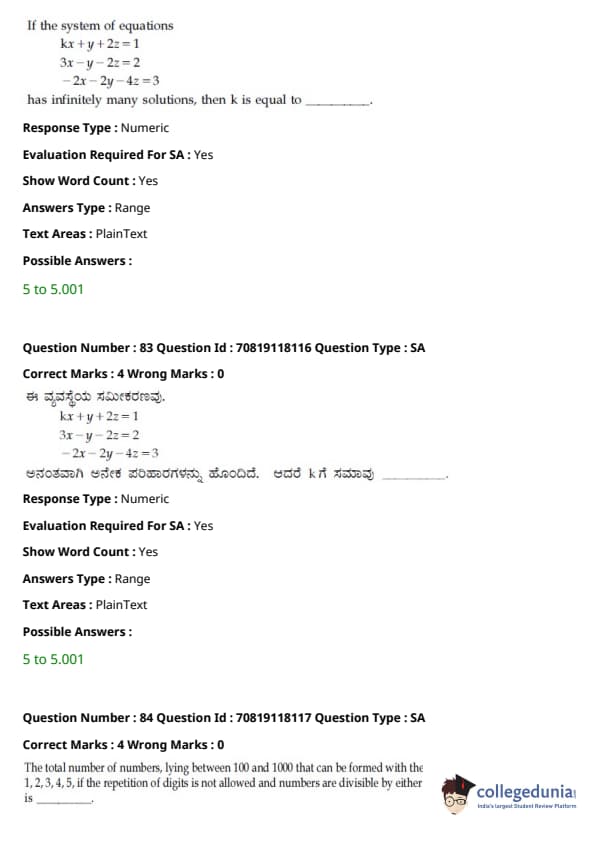 - ಗಣಿತಶಾಸ್ತ್ರವು ಪರೀಕ್ಷೆಯ ಅತ್ಯಂತ ಕಠಿಣ ವಿಭಾಗವಾಗಿತ್ತು ಮತ್ತು ಪತ್ರಿಕೆಯ ಸರಾಸರಿಗಿಂತ ಹೆಚ್ಚಿನ ತೊಂದರೆ ಮಟ್ಟದ ಸ್ಥಿತಿಗೆ ಮಾತ್ರ ಕೊಡುಗೆ ನೀಡಿತು.