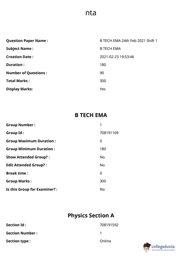 JEE Main 2021 B.E./B.Tech ചോദ്യപേപ്പർ ഫെബ്രുവരി 24 (FN):പേപ്പർ വിശകലനം