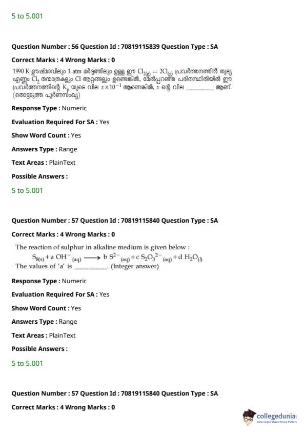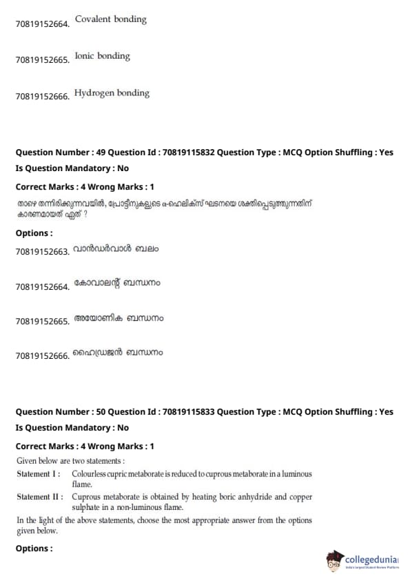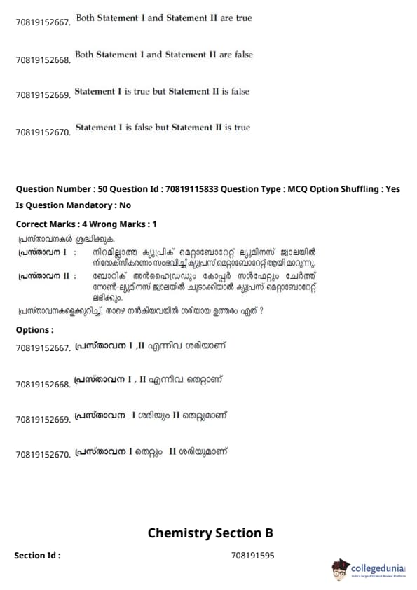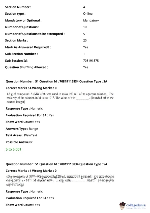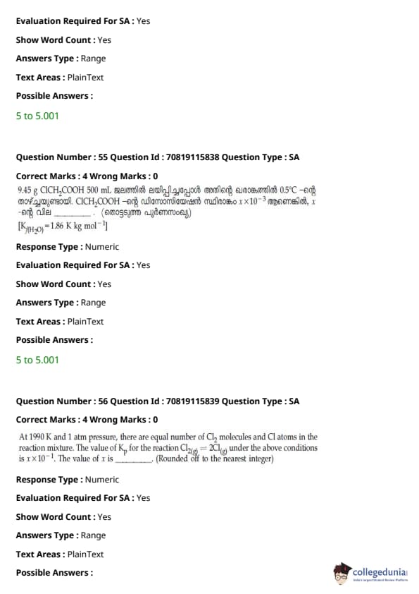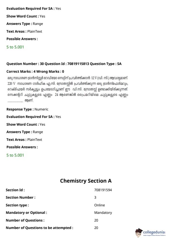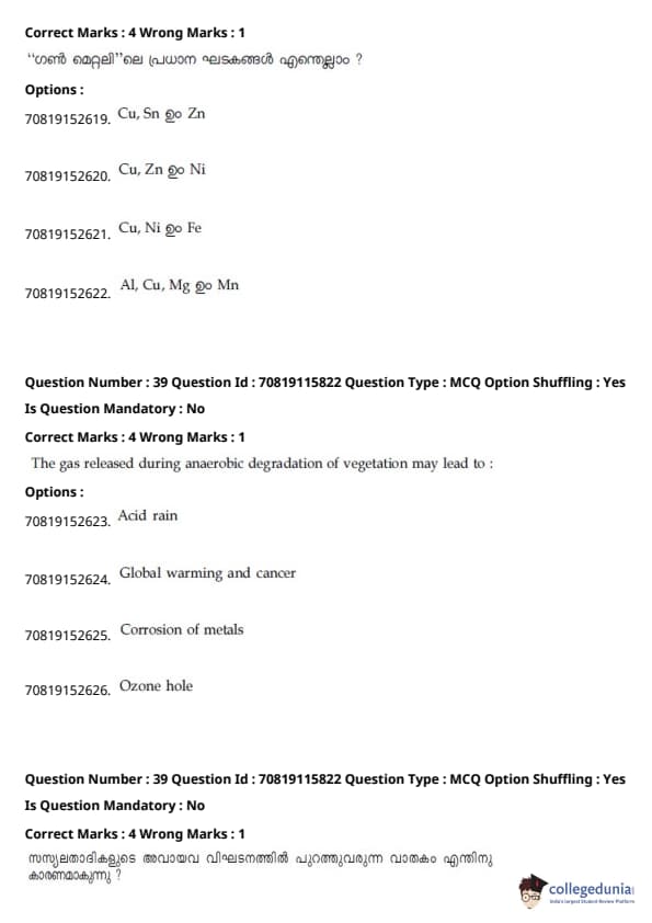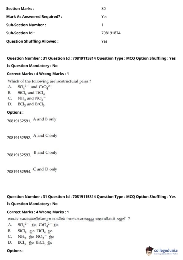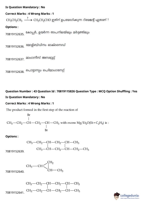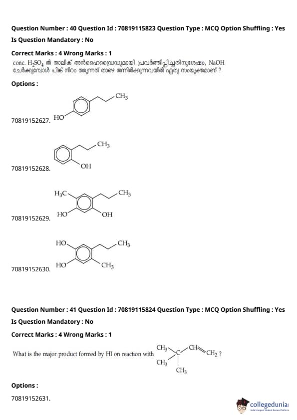 - പേപ്പറിൽ പന്ത്രണ്ടാം ക്ലാസ് സിലബസിൽ നിന്ന് 48 ചോദ്യങ്ങളും പതിനൊന്നാം ക്ലാസ് സിലബസിൽ നിന്ന് 42 ചോദ്യങ്ങളും ചോദിച്ചു.