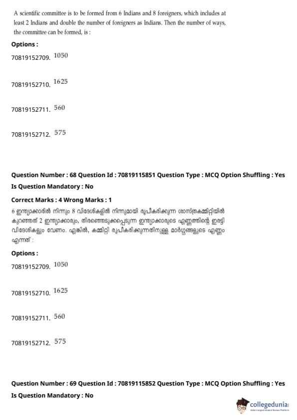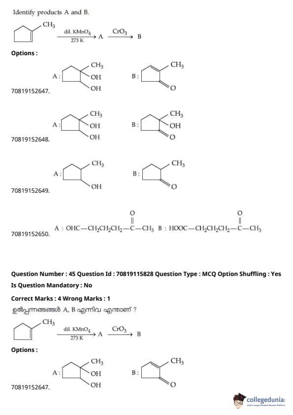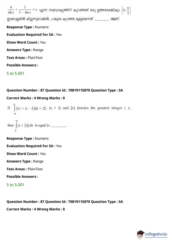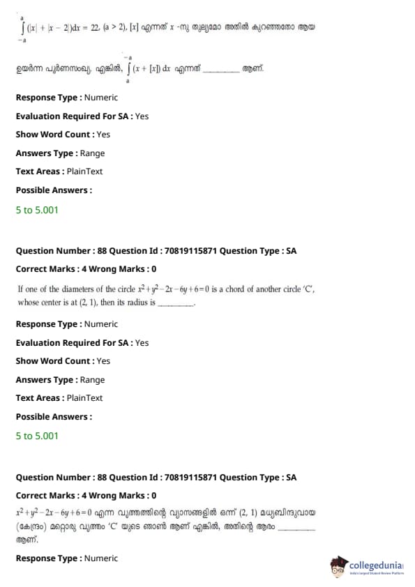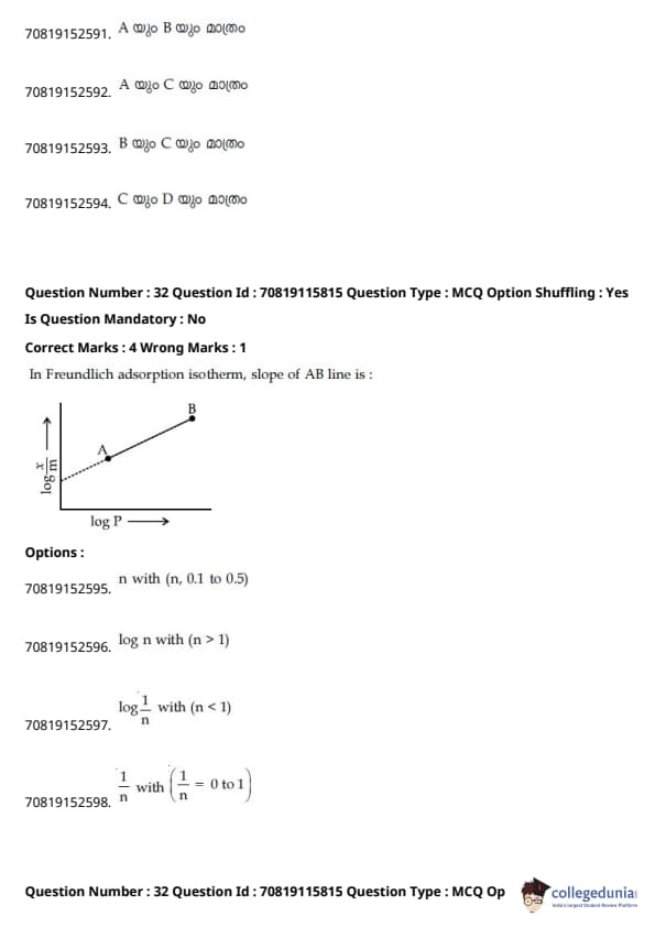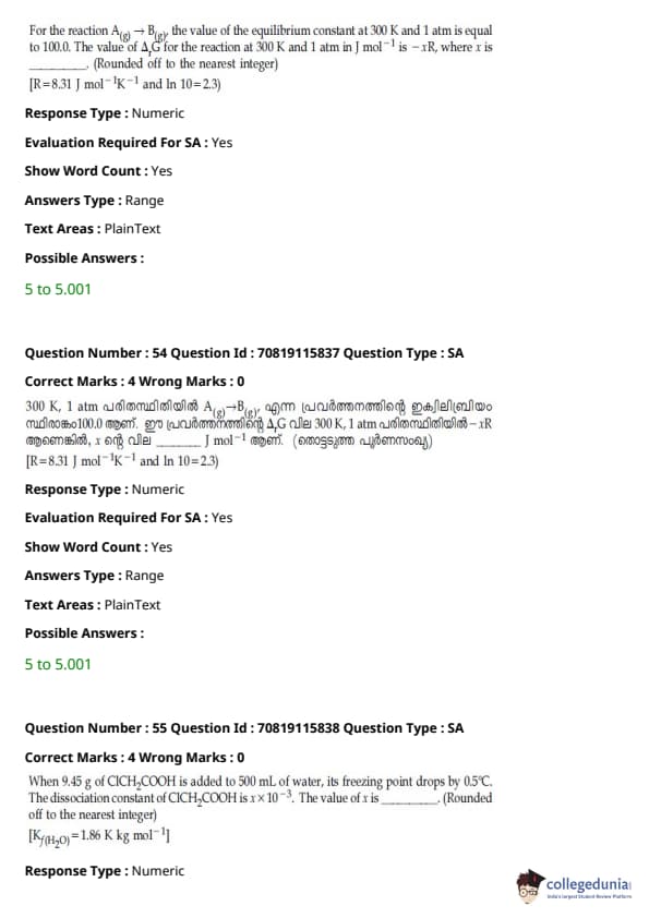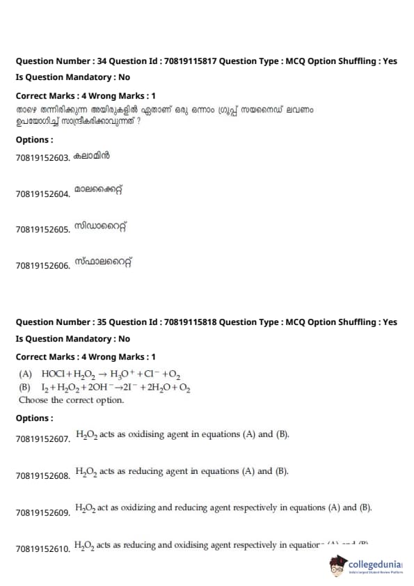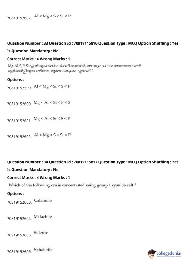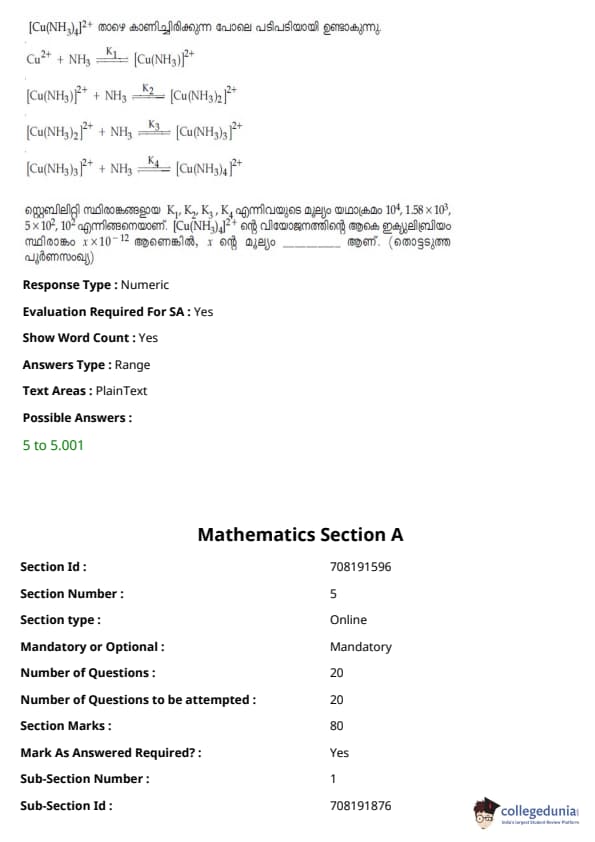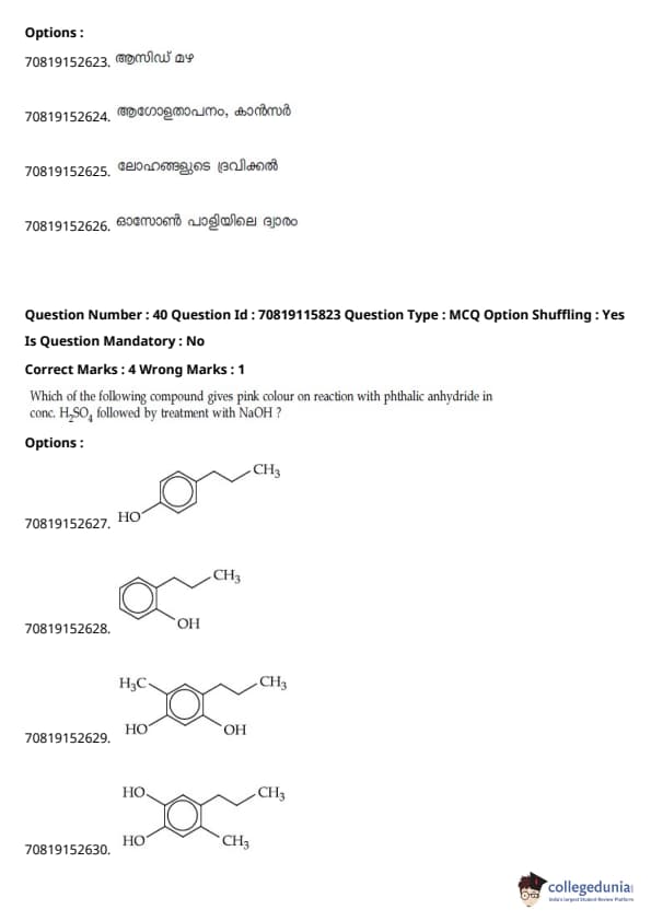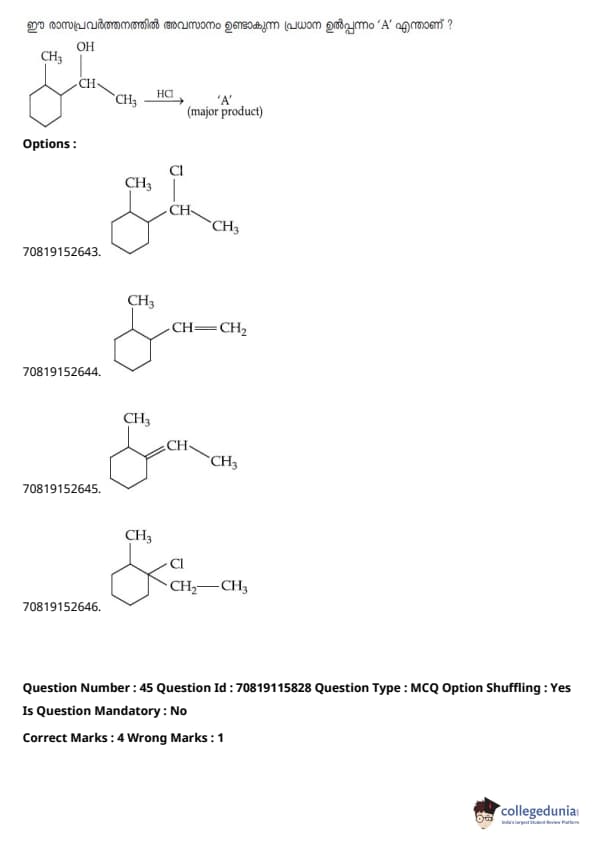 - പേപ്പറിൽ പന്ത്രണ്ടാം ക്ലാസ് സിലബസിൽ നിന്ന് 48 ചോദ്യങ്ങളും പതിനൊന്നാം ക്ലാസ് സിലബസിൽ നിന്ന് 42 ചോദ്യങ്ങളും ചോദിച്ചു.
