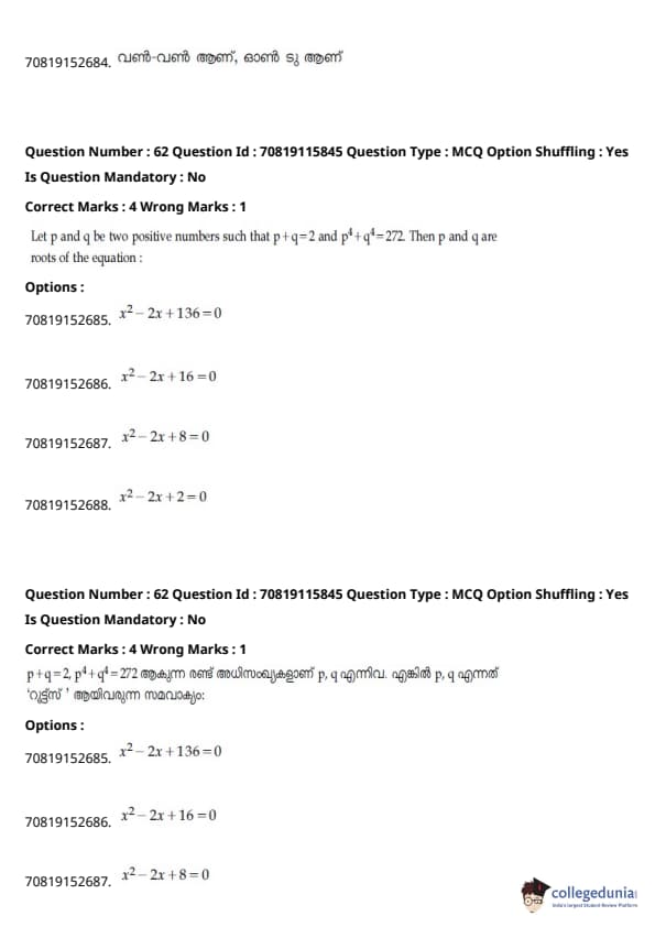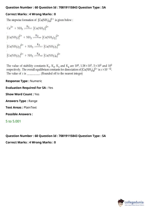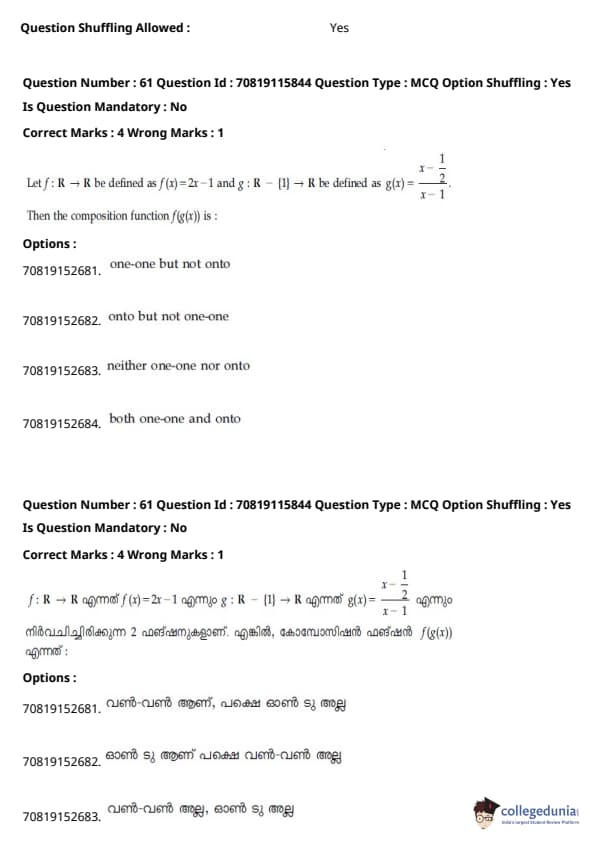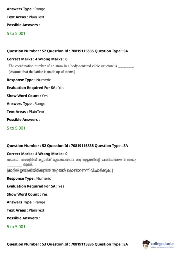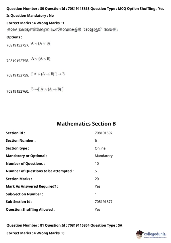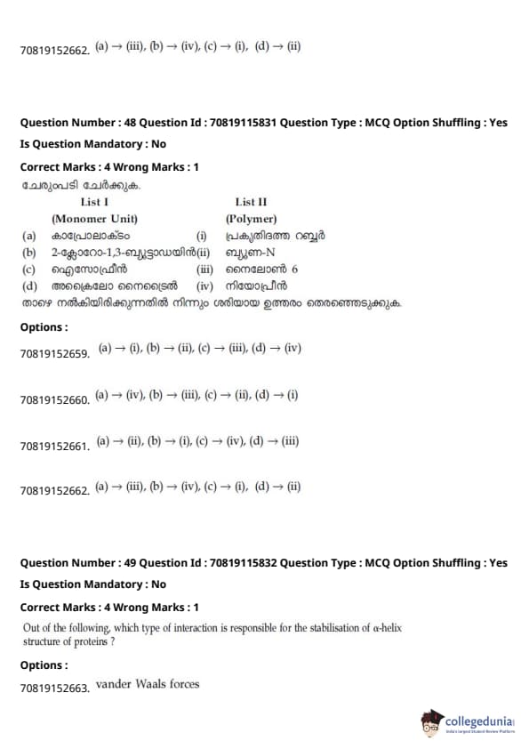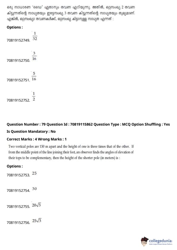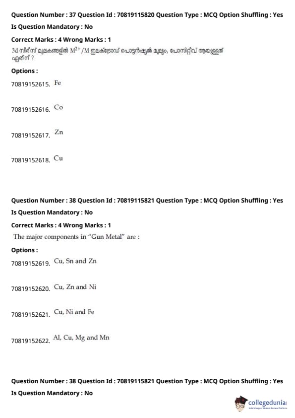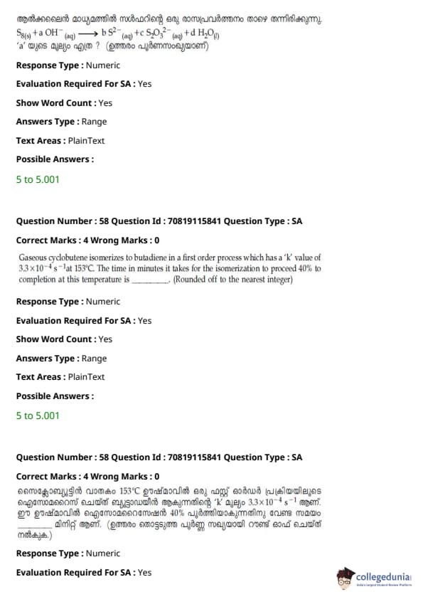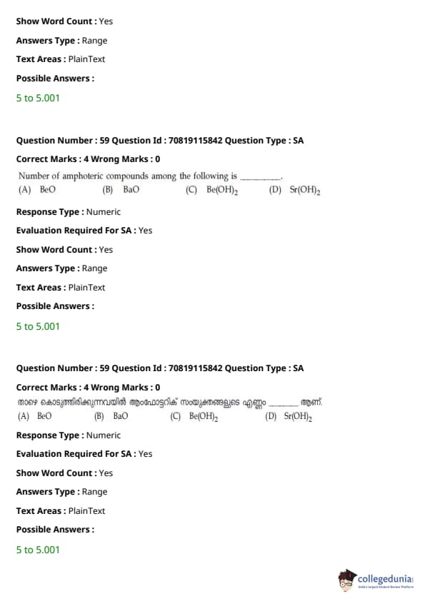 - പേപ്പറിൽ പന്ത്രണ്ടാം ക്ലാസ് സിലബസിൽ നിന്ന് 48 ചോദ്യങ്ങളും പതിനൊന്നാം ക്ലാസ് സിലബസിൽ നിന്ന് 42 ചോദ്യങ്ങളും ചോദിച്ചു.
