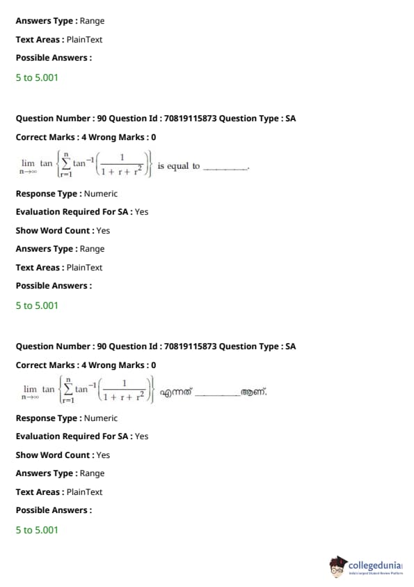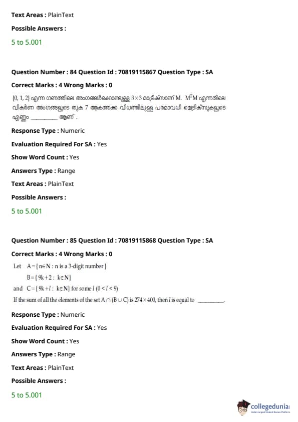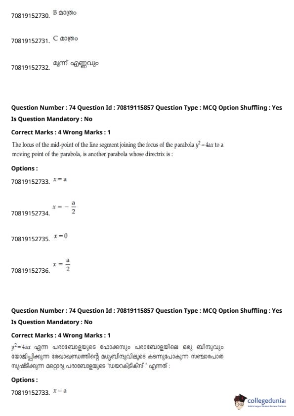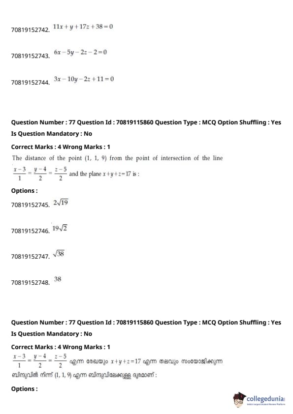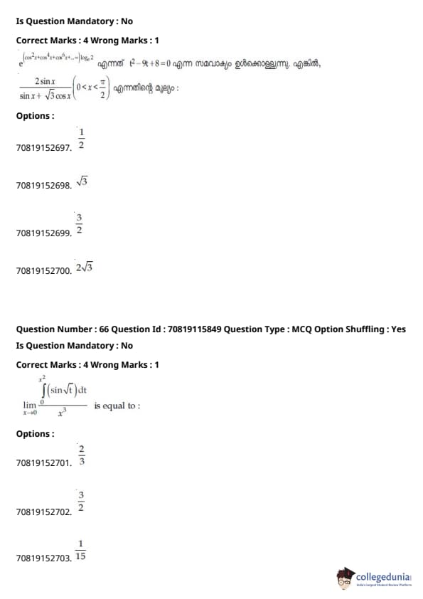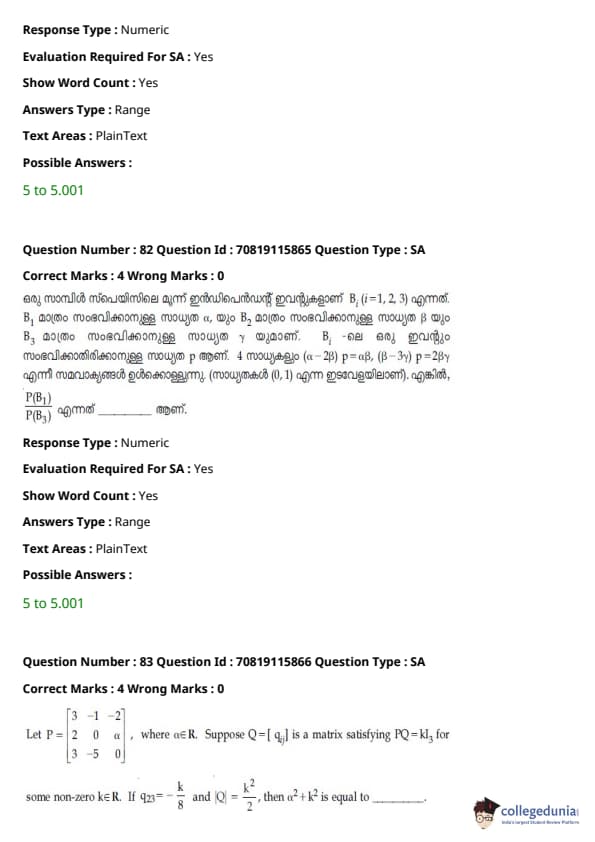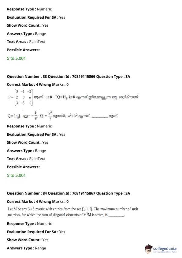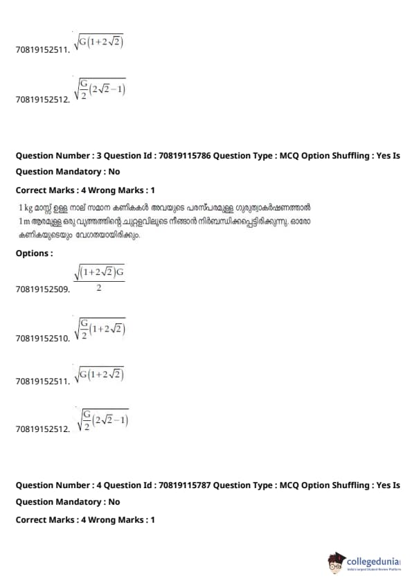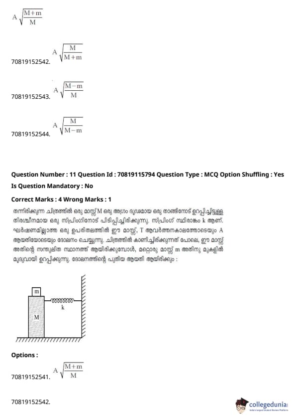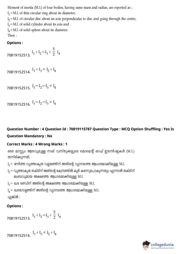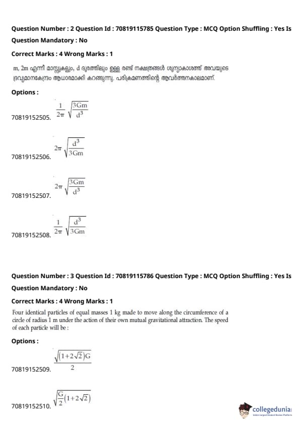 | JEE Main 2020 ചോദ്യപേപ്പർ | JEE Main 2019 ചോദ്യപേപ്പർ | JEE Main 2018 ചോദ്യപേപ്പർ |