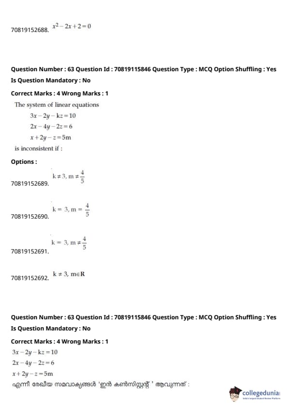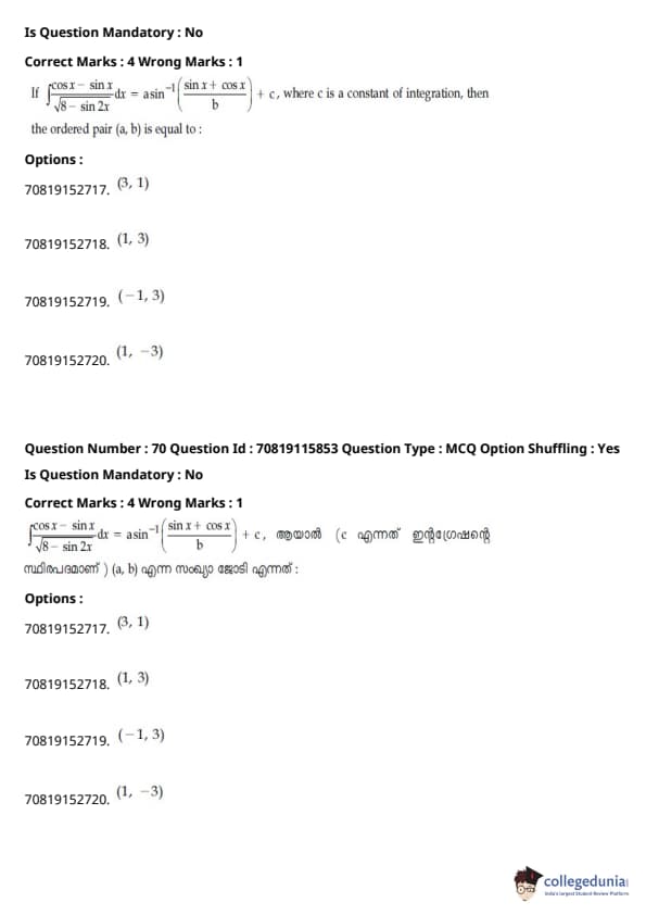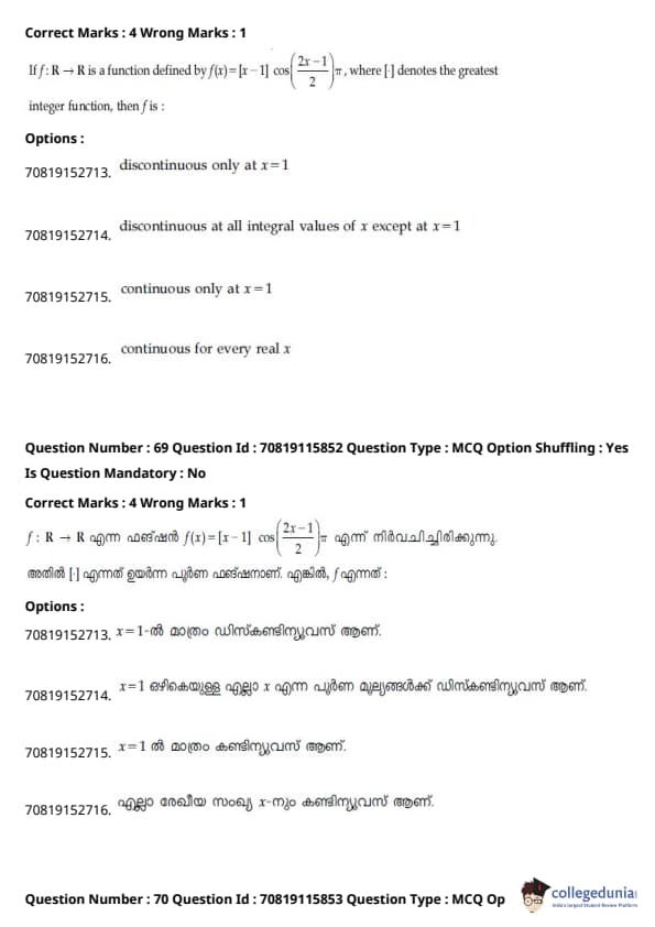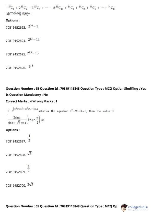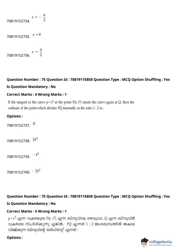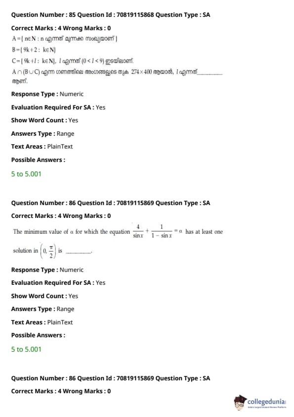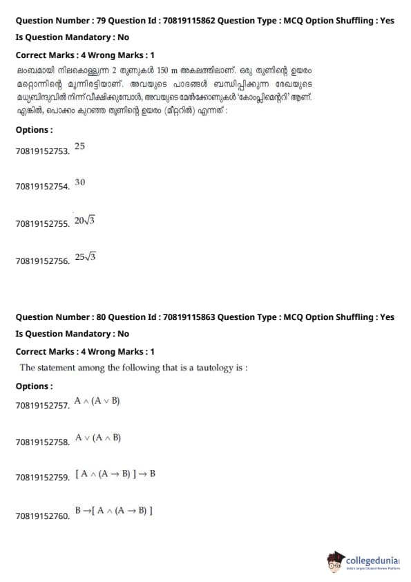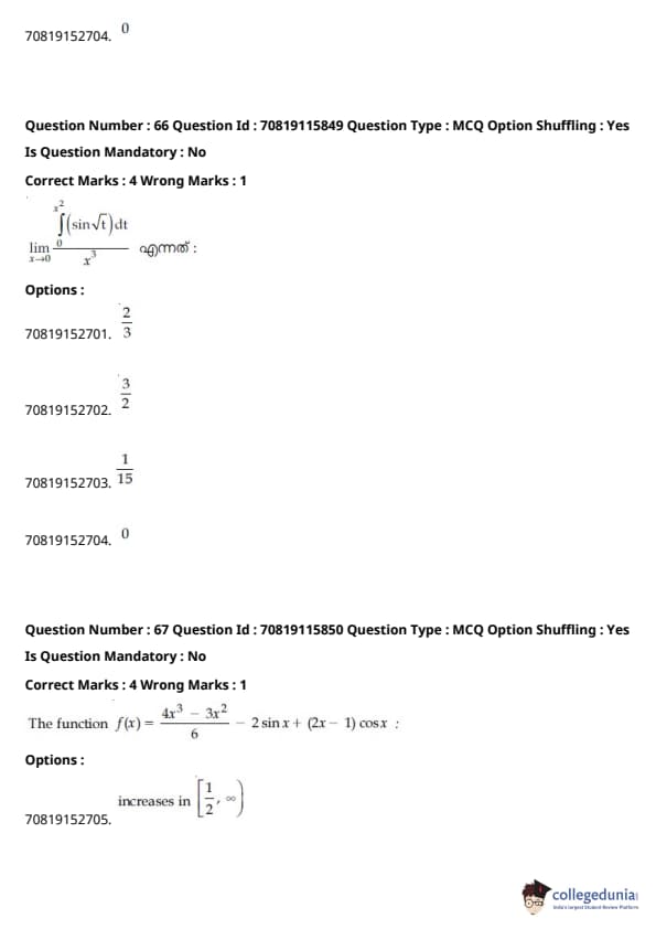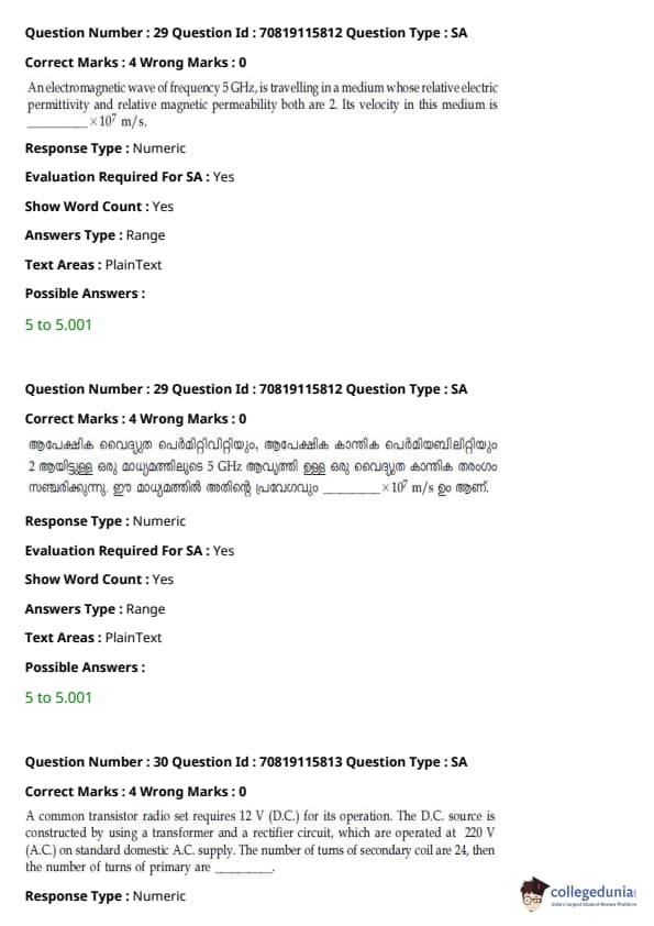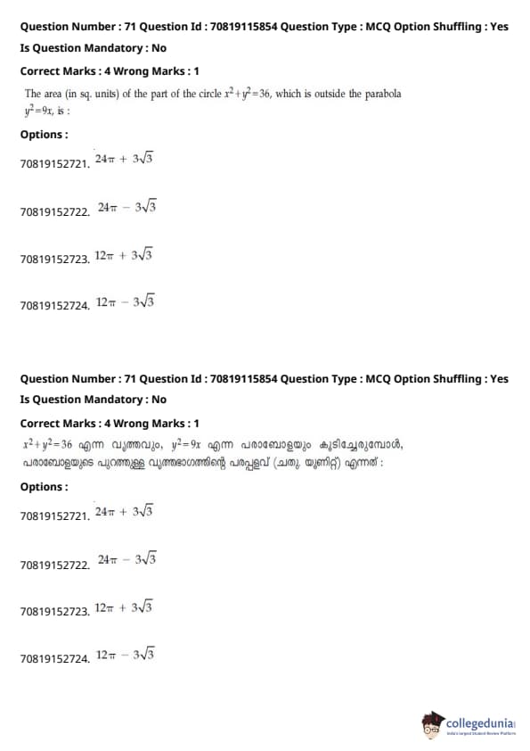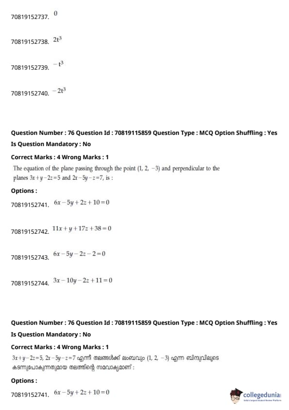 | JEE Main 2020 ചോദ്യപേപ്പർ | JEE Main 2019 ചോദ്യപേപ്പർ | JEE Main 2018 ചോദ്യപേപ്പർ |