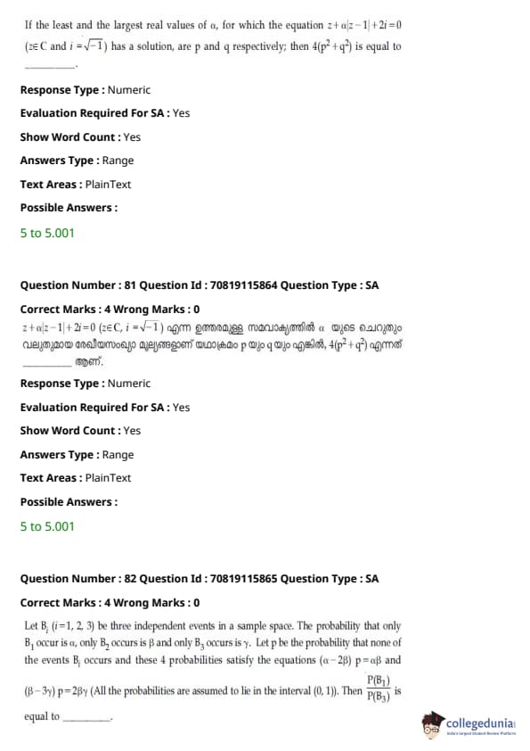 JEE Main B.E/ B. Tech ചോദ്യപേപ്പർ ഉത്തര കീ PDF-കൾ