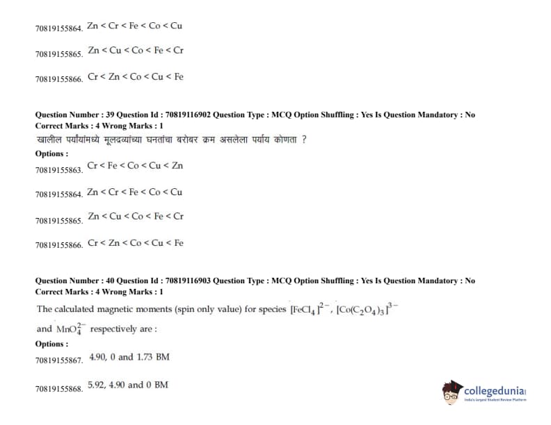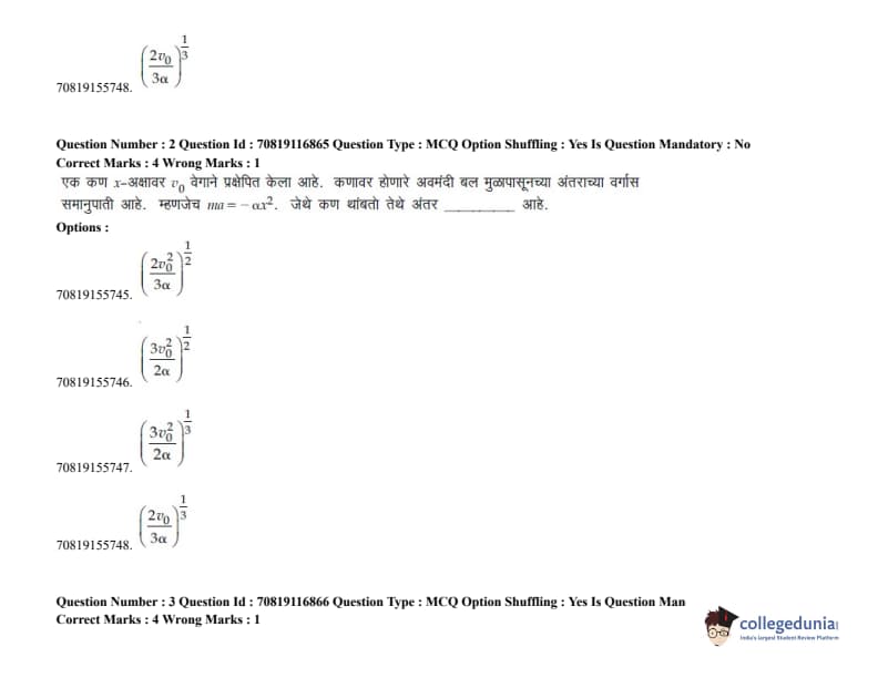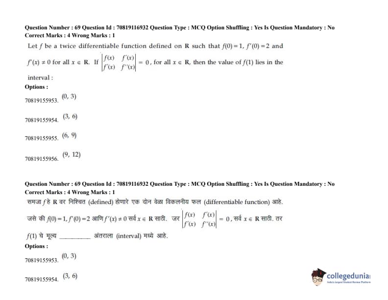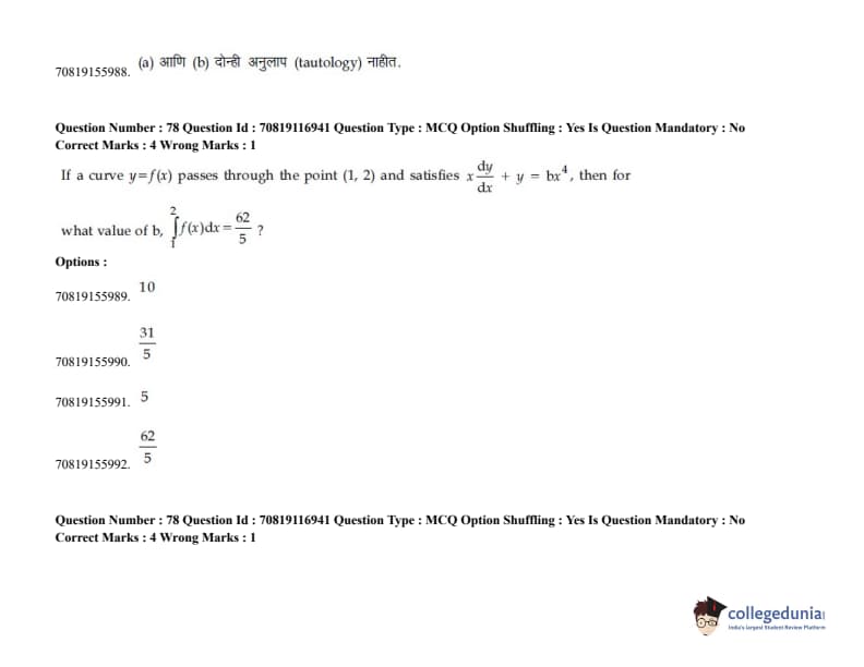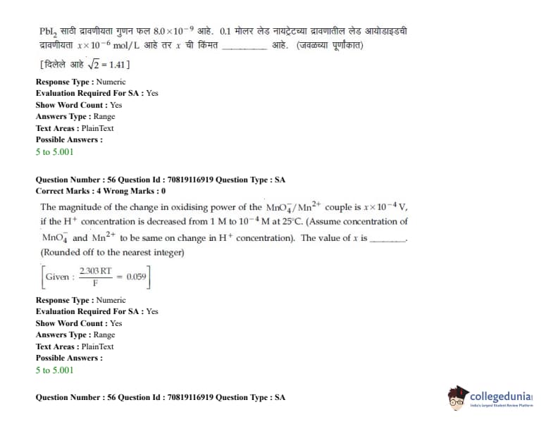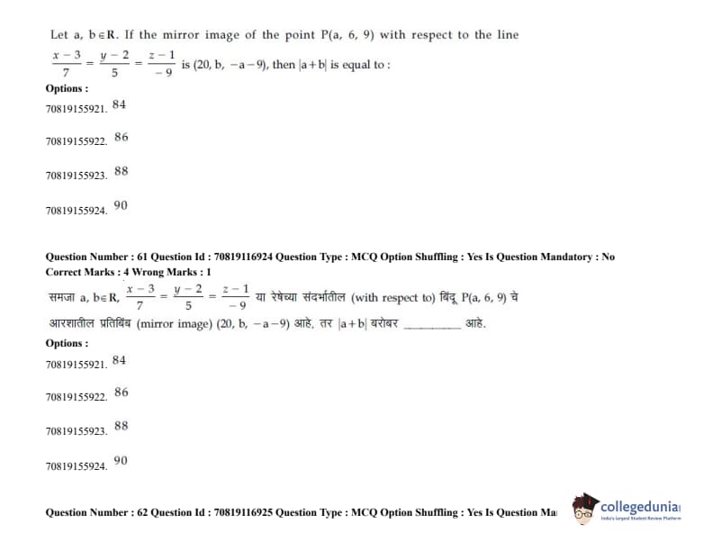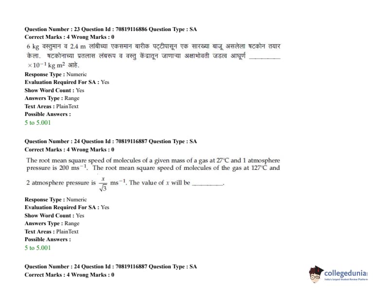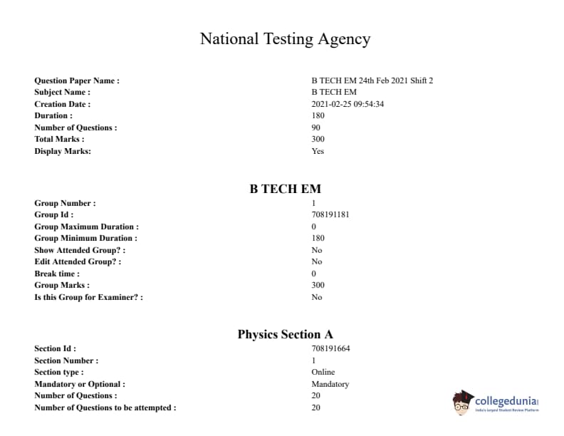 JEE Main B.E./B.Tech प्रश्नपत्रिका- 24 फेब्रुवारी 2021 (दुपारी)