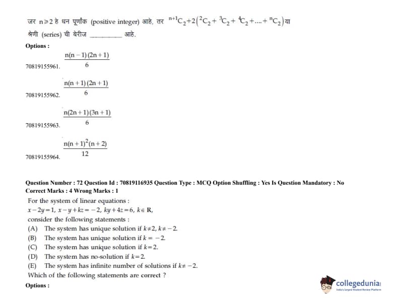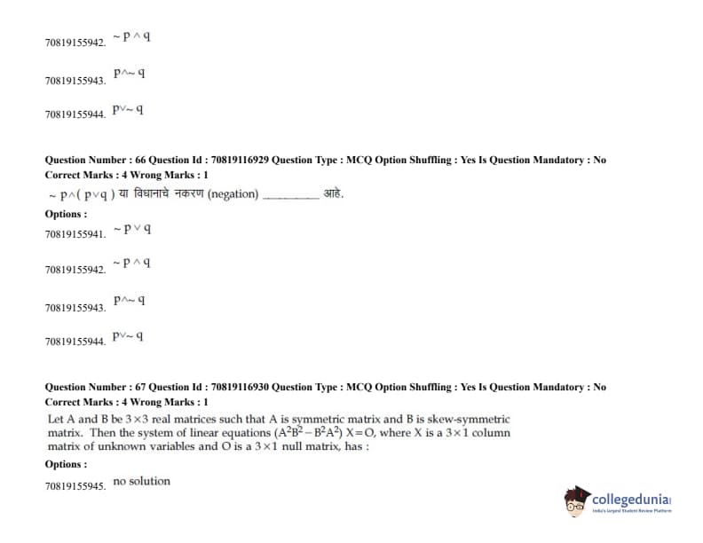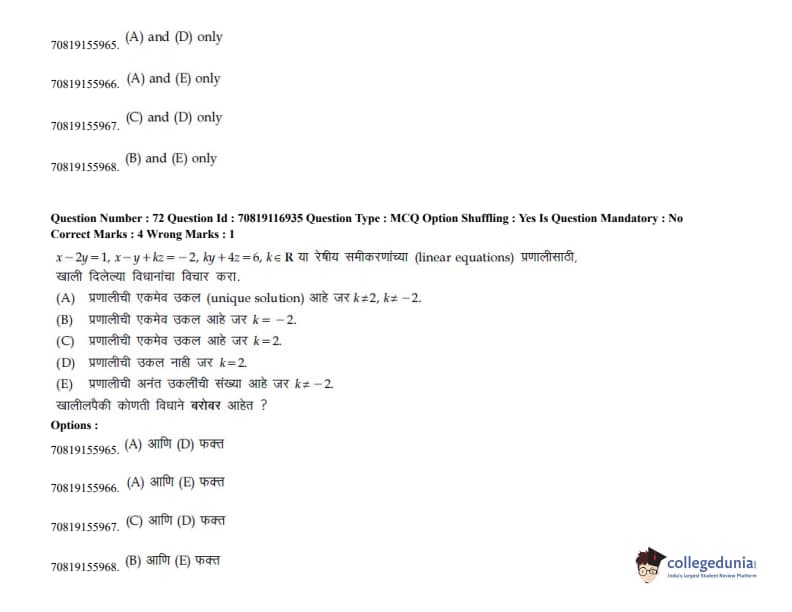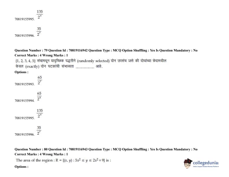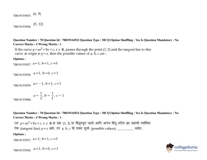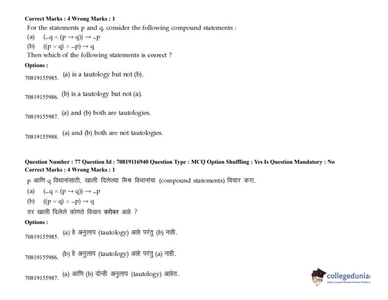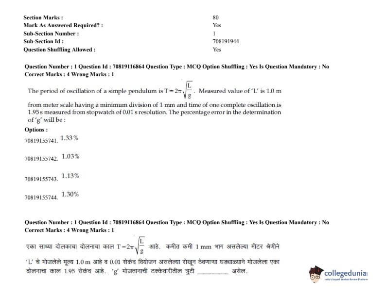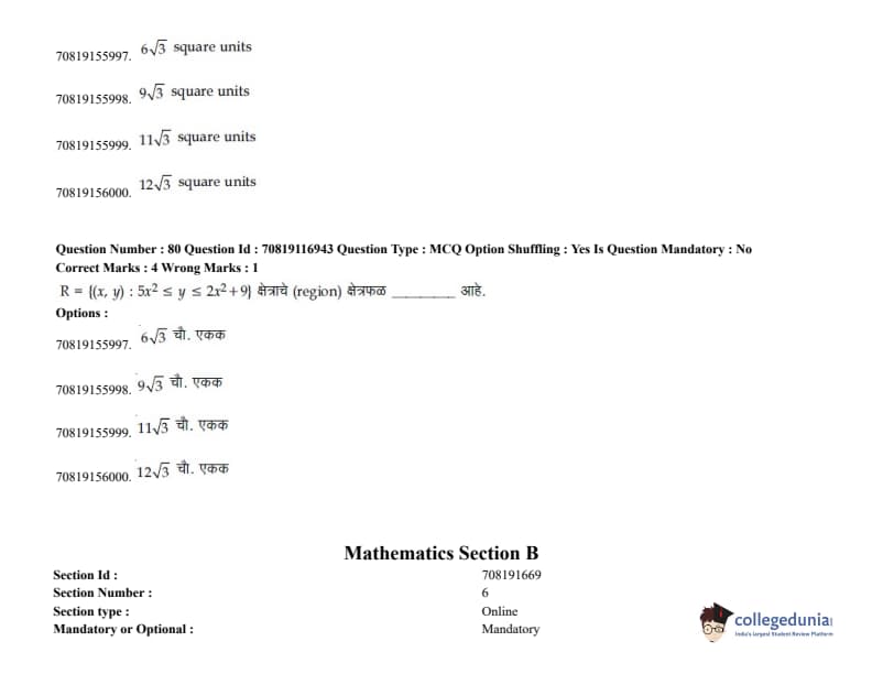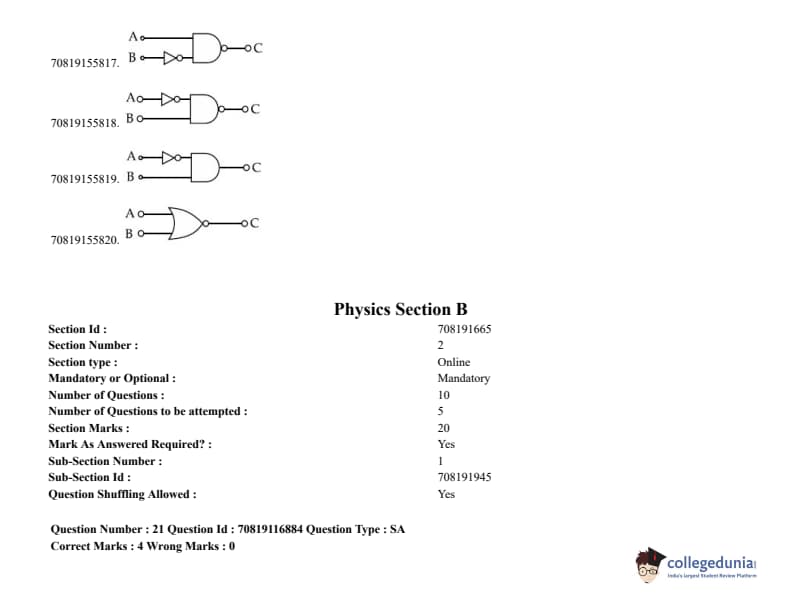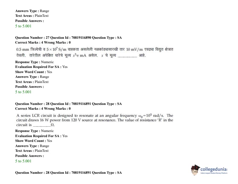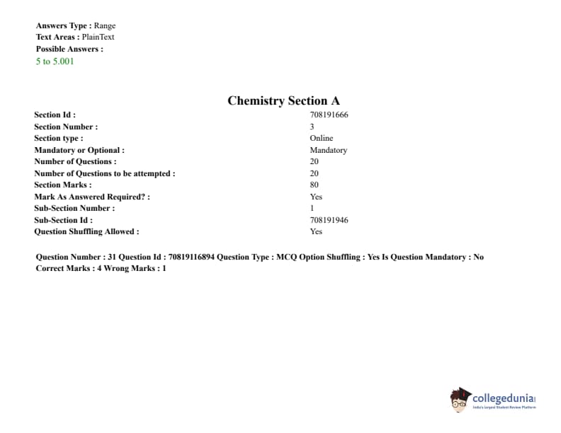 - प्रत्येक विभागात 10 पूर्णांक प्रकारचे संख्यात्मक उत्तर प्रश्न होते, त्यापैकी उमेदवाराने कोणतेही 5 प्रयत्न करणे आवश्यक होते.
