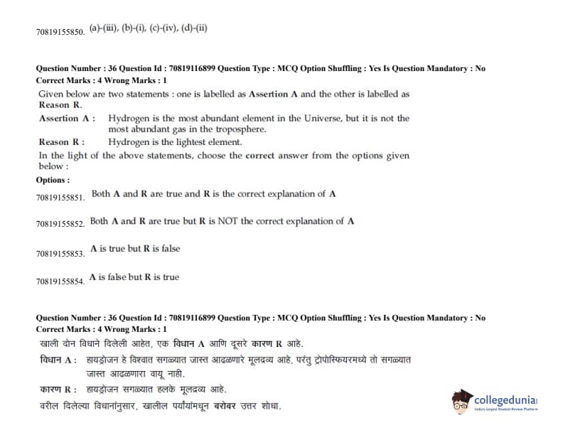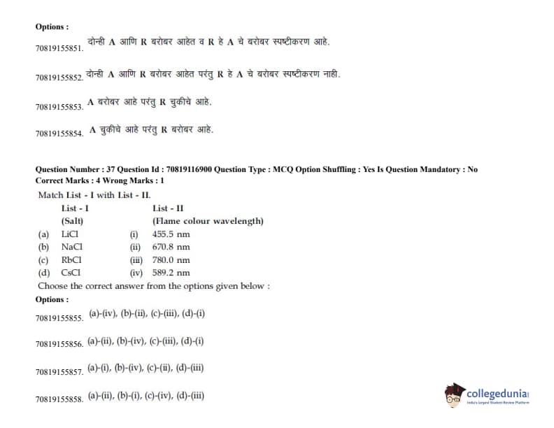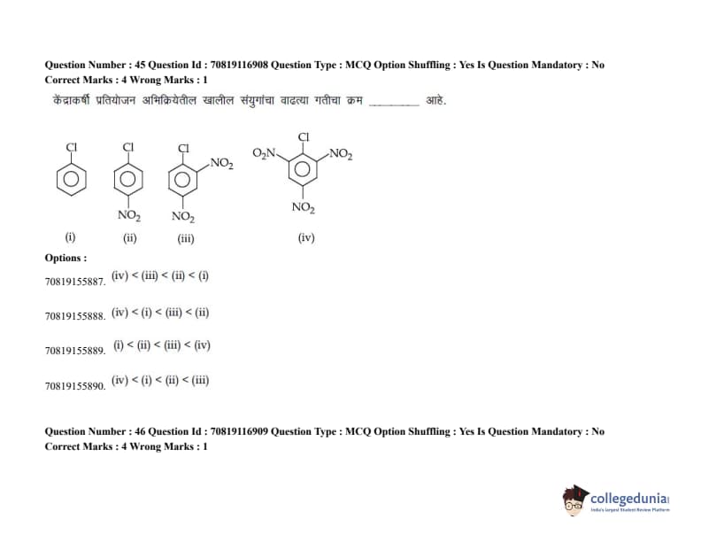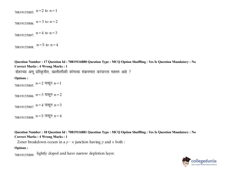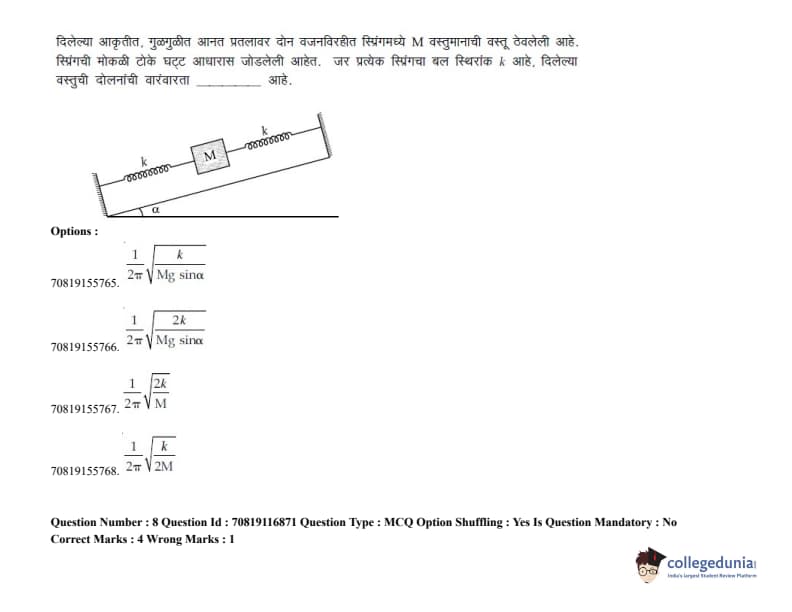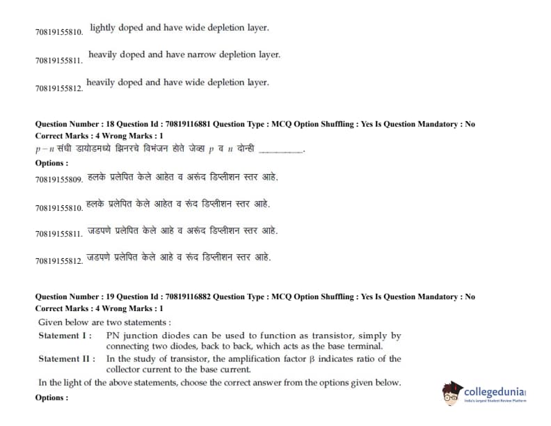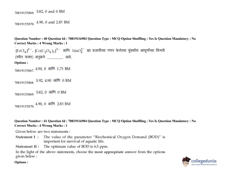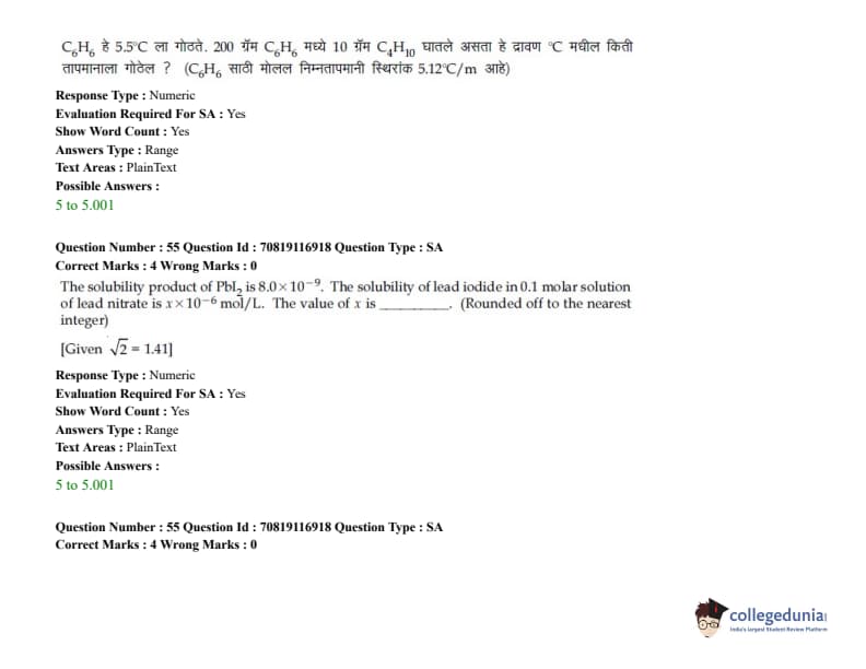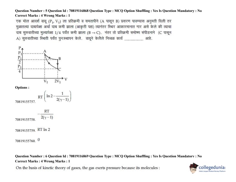 JEE Main 2021 B.E./B.Tech प्रश्नपत्रिका - 24 फेब्रुवारी 2021- दुपारचे सत्र मध्यम अडचणीचे मानले जात होते. 2021 च्या नवीन JEE Main परीक्षेच्या पॅटर्ननुसार, पेपरमध्ये एकूण 90 प्रश्न होते, त्यापैकी उमेदवारांना 75 प्रश्नांचा प्रयत्न करावा लागला. प्रत्येक विभागातील उमेदवाराला 10 संख्यात्मक उत्तर प्रकारच्या प्रश्नांपैकी कोणतेही 5 प्रयत्न करण्याचा पर्याय देण्यात आला होता. गणित हा पेपरमधील सर्वात कठीण विभाग होता, त्यानंतर भौतिकशास्त्र हा विषय होता. रसायनशास्त्र हा पेपरचा सर्वात सोपा विभाग होता ज्यामध्ये थेट सूत्र आणि समीकरणावर आधारित प्रश्न होते. JEE Main 2022 परीक्षेसाठी इच्छुक उमेदवार सरावासाठी 24 फेब्रुवारी 2021 सत्रासाठी उत्तर की पीडीएफसह JEE Main प्रश्नपत्रिका डाउनलोड करू शकतात.