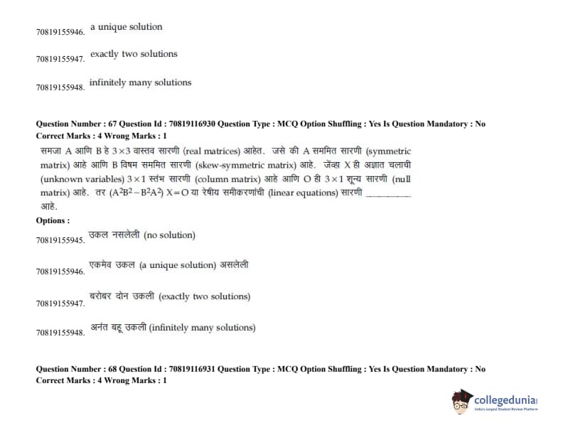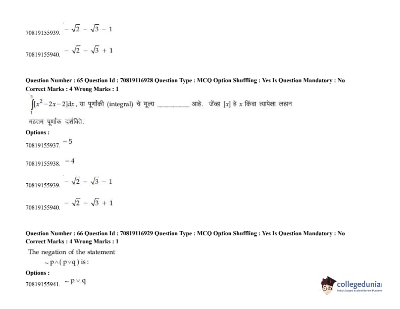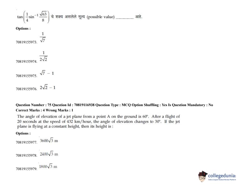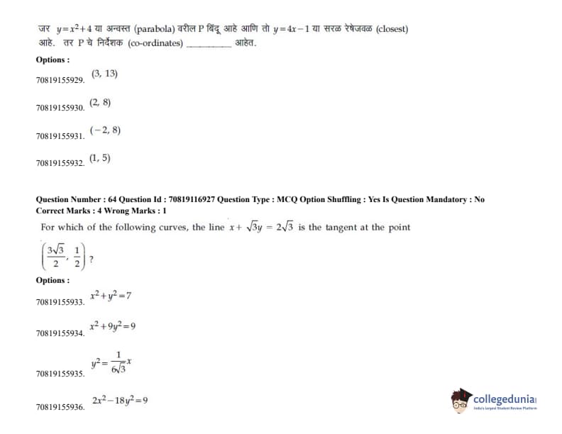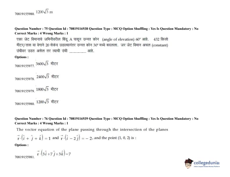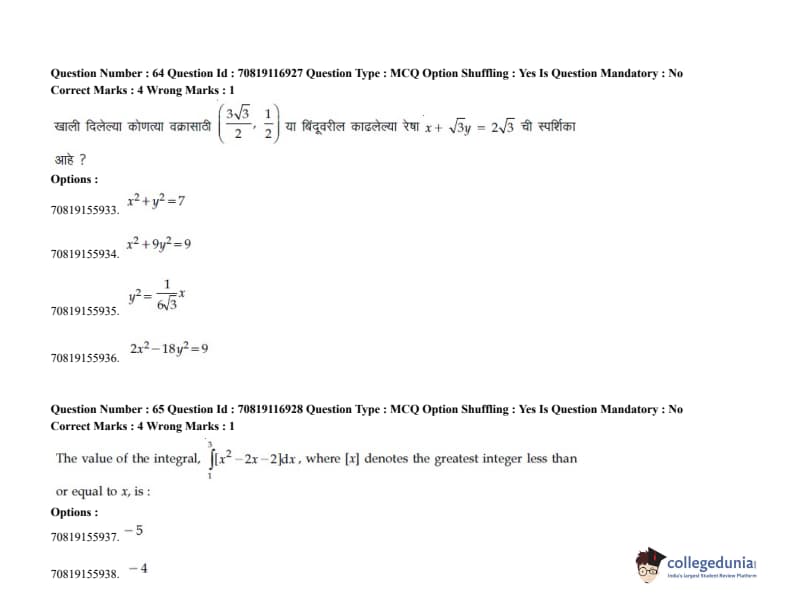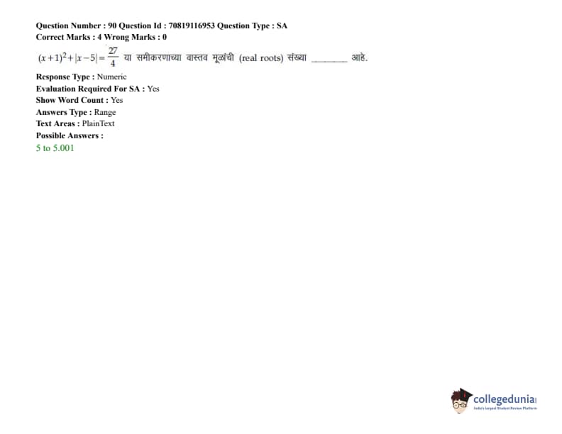 - गणितामध्ये इंटिग्रल कॅल्क्युलस, डिफरन्शियल कॅल्क्युलेशन, कॉर्डिनेशन आणि बीजगणित यावर जास्तीत जास्त प्रश्न होते. JEE Main गणिताचा अभ्यासक्रम तपासा